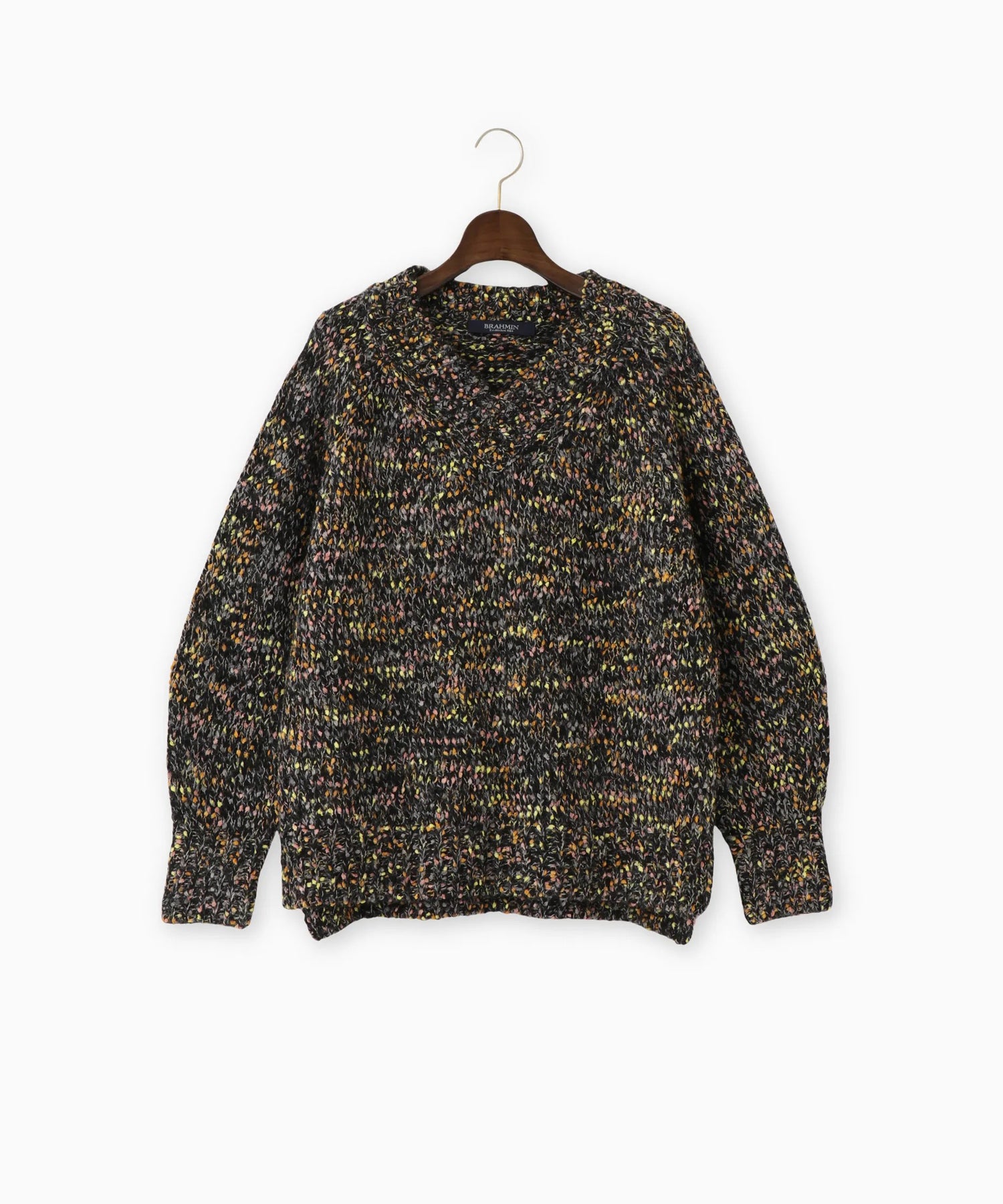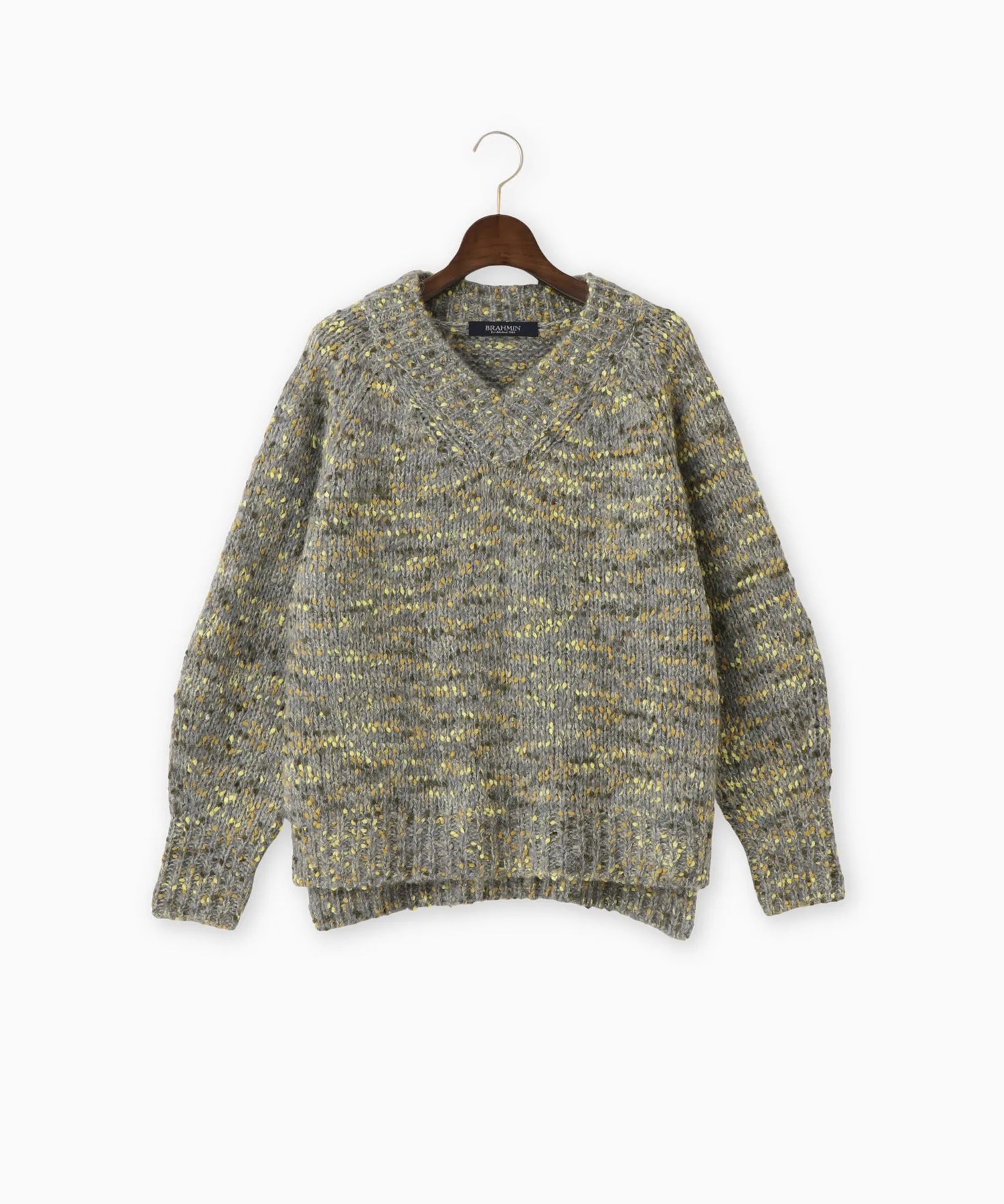 シンプルなデニムやチノパンと合わせても、カラーネップがアクセントになり華やかな印象に。