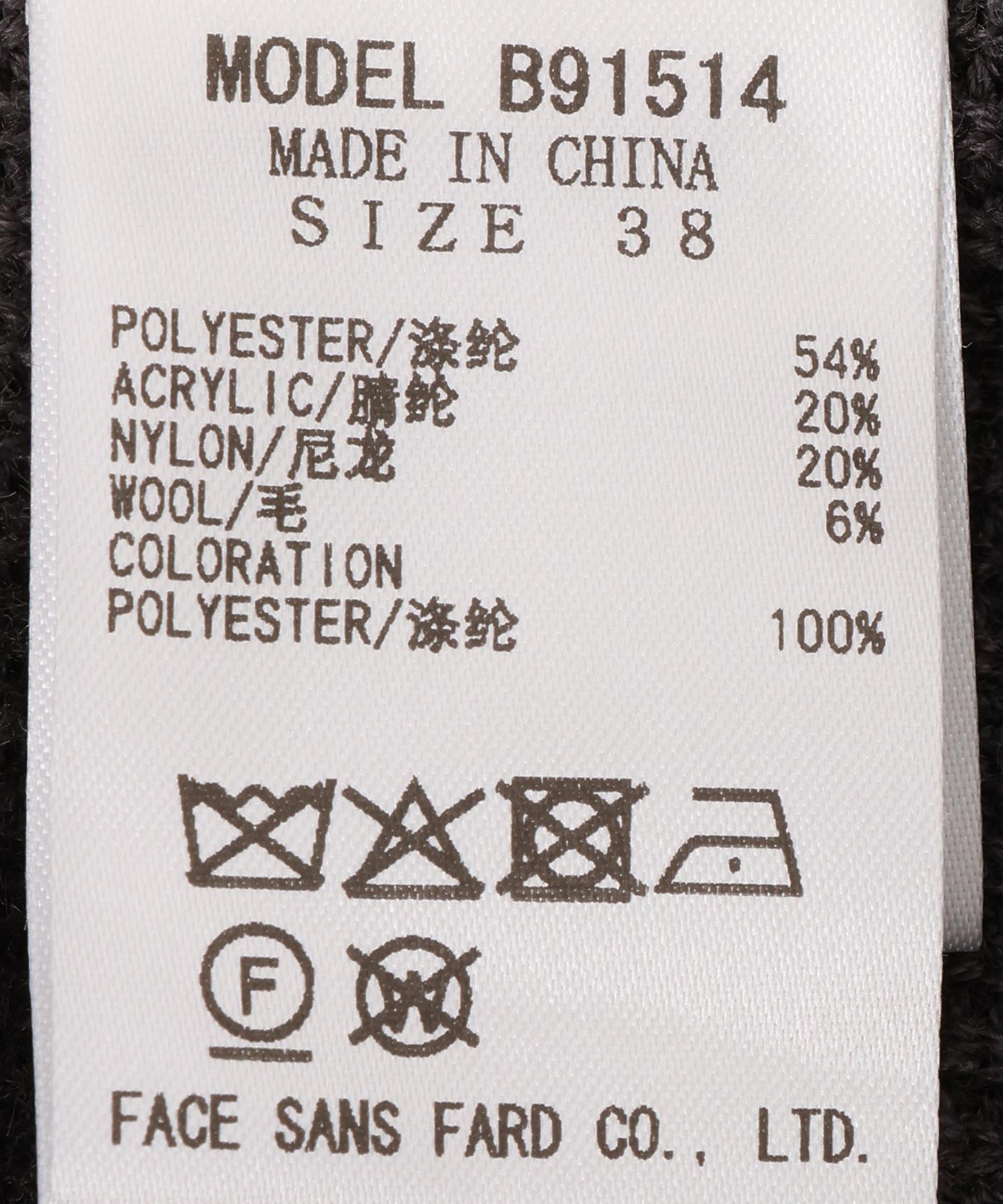 【素材】ポリエステル54% アクリル20% ナイロン20% 毛6%