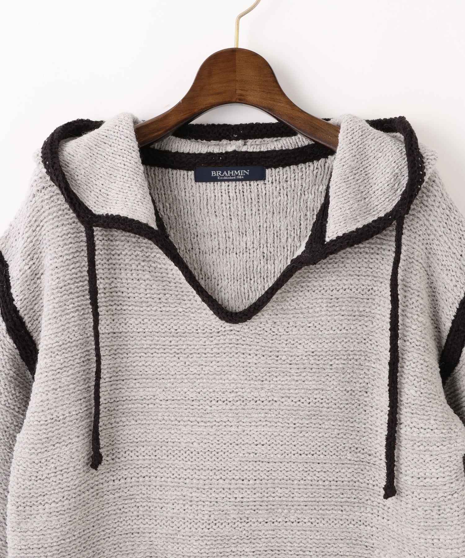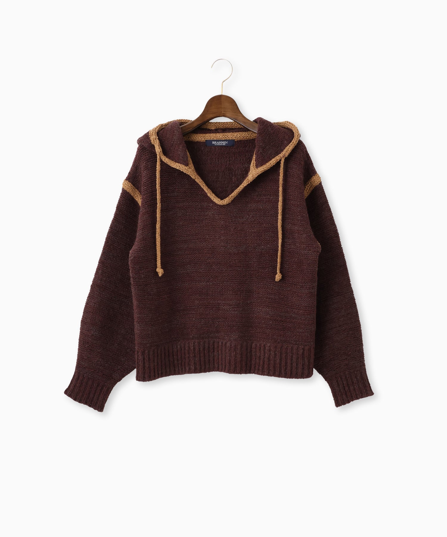 フード付きプルオーバーニット