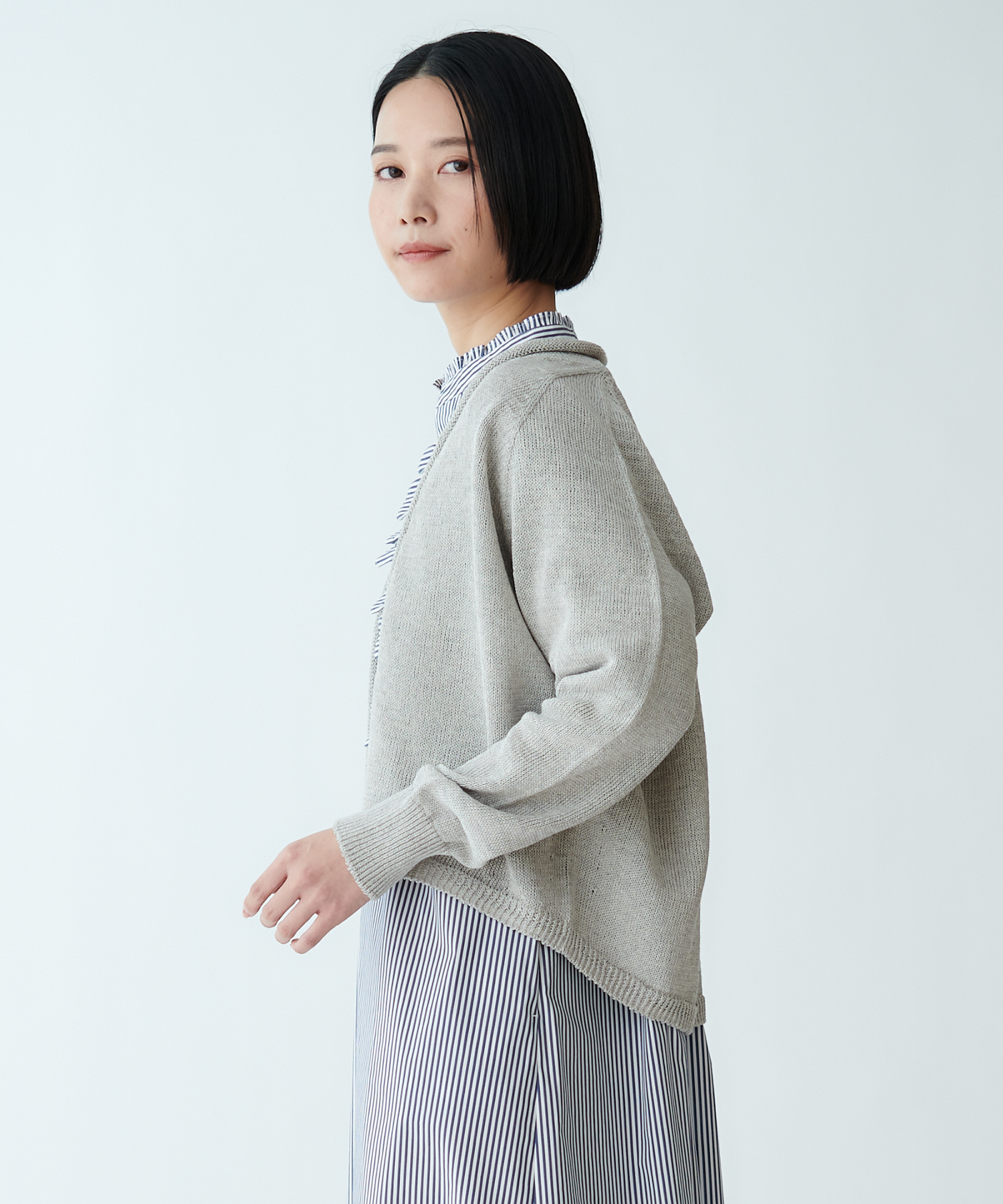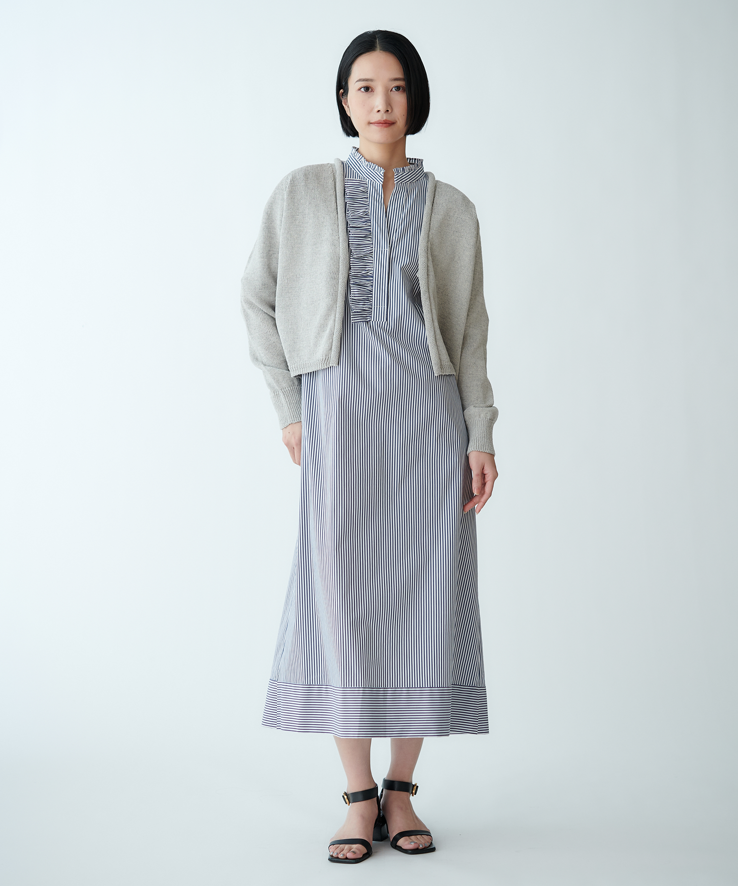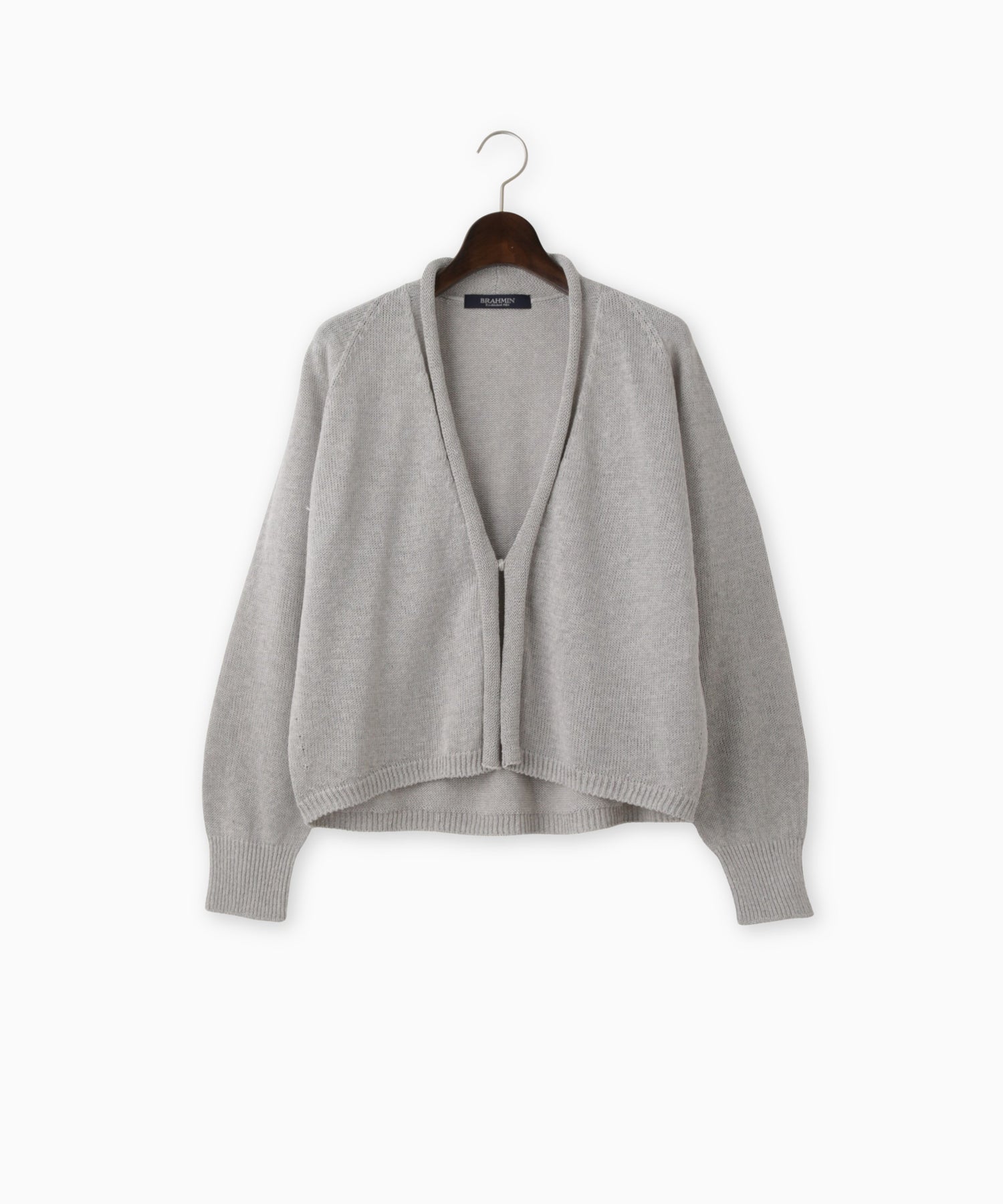 ボレロのようなコンパクトなカーディガンは、短め丈でさまざまなスタイリングに活躍。