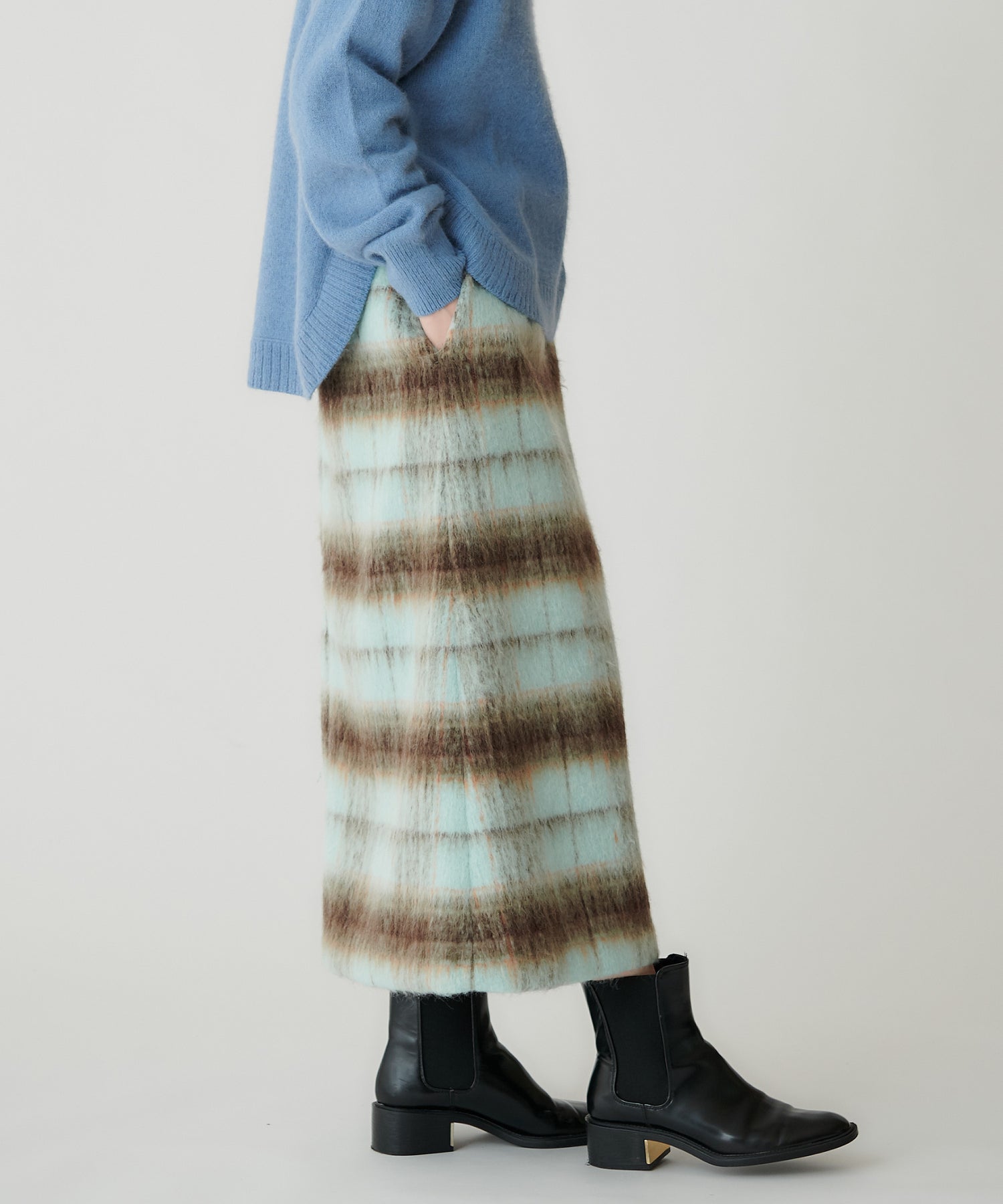 軽さが特徴のシャギーチェック生地を使用した、暖かみのあるAラインスカートです。