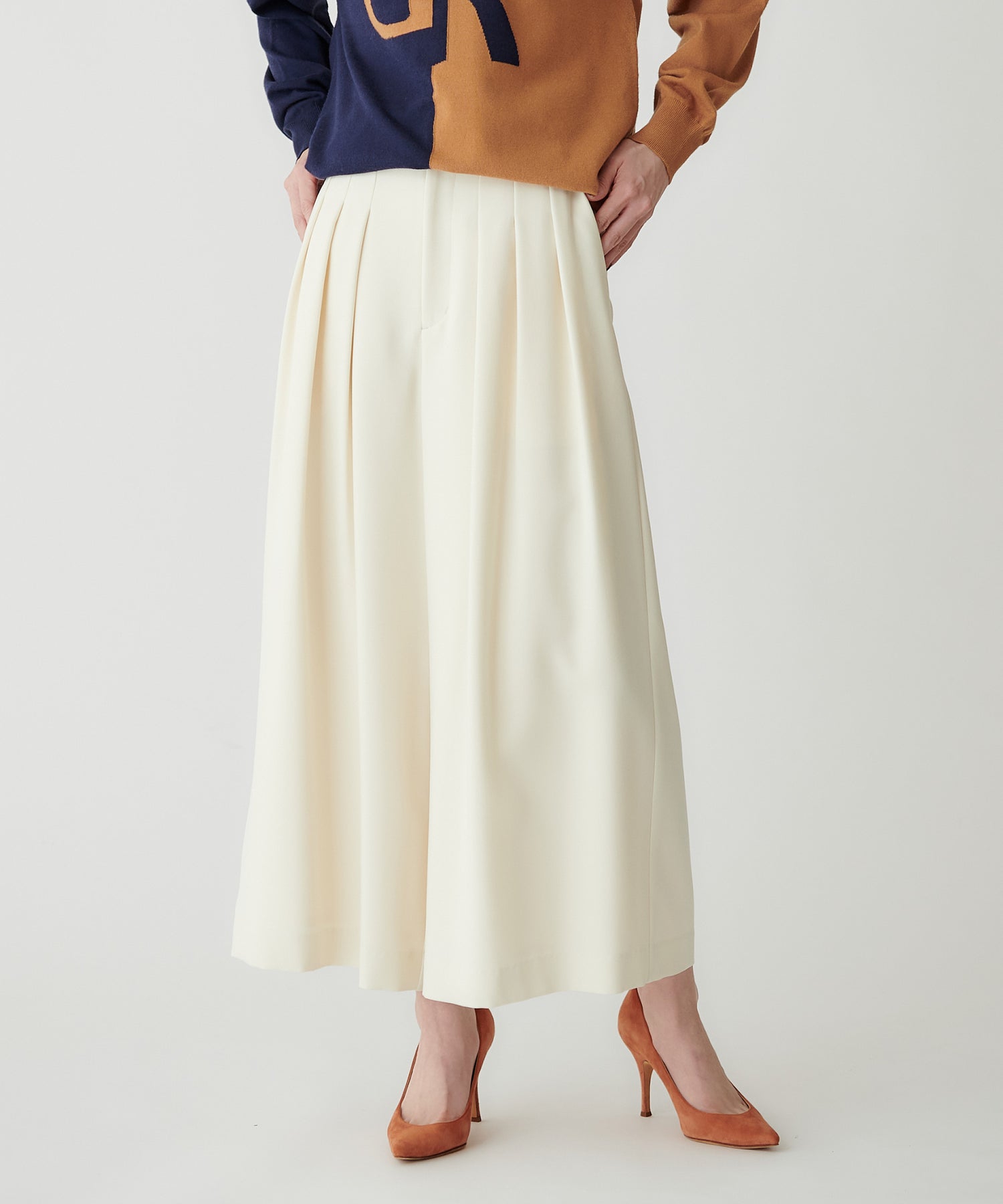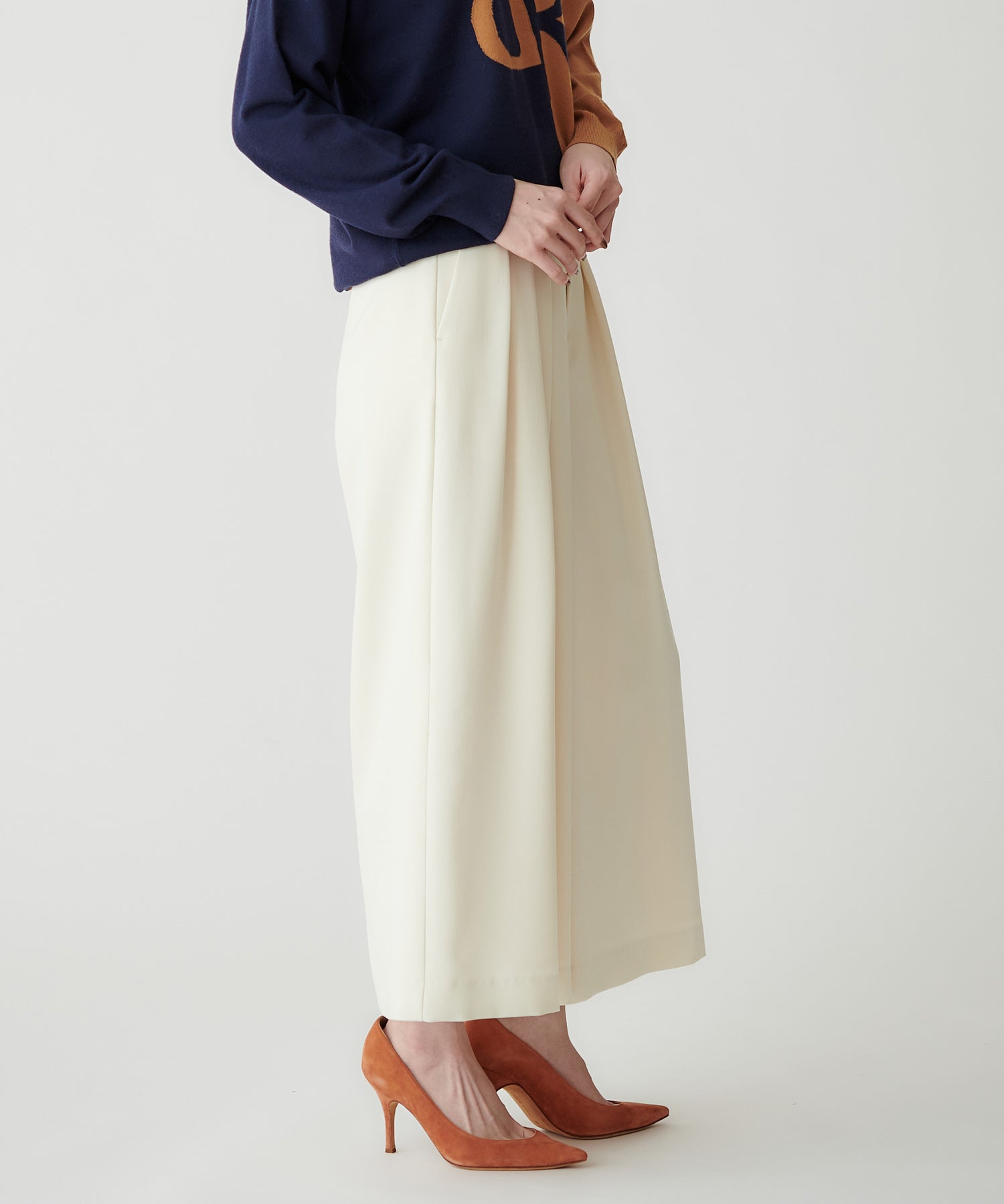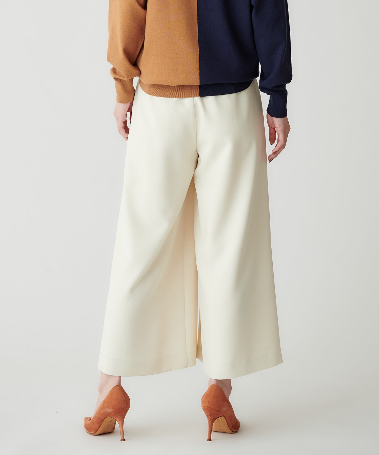 ウエストのカラーテープがさりげないアクセントになります。 フルレングスではない丈感で、ショートブーツなどと軽快なスタイリングに。