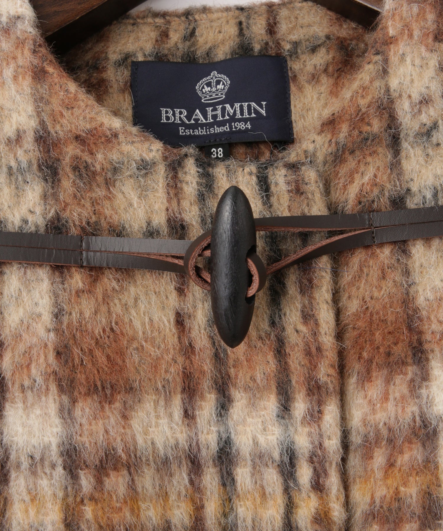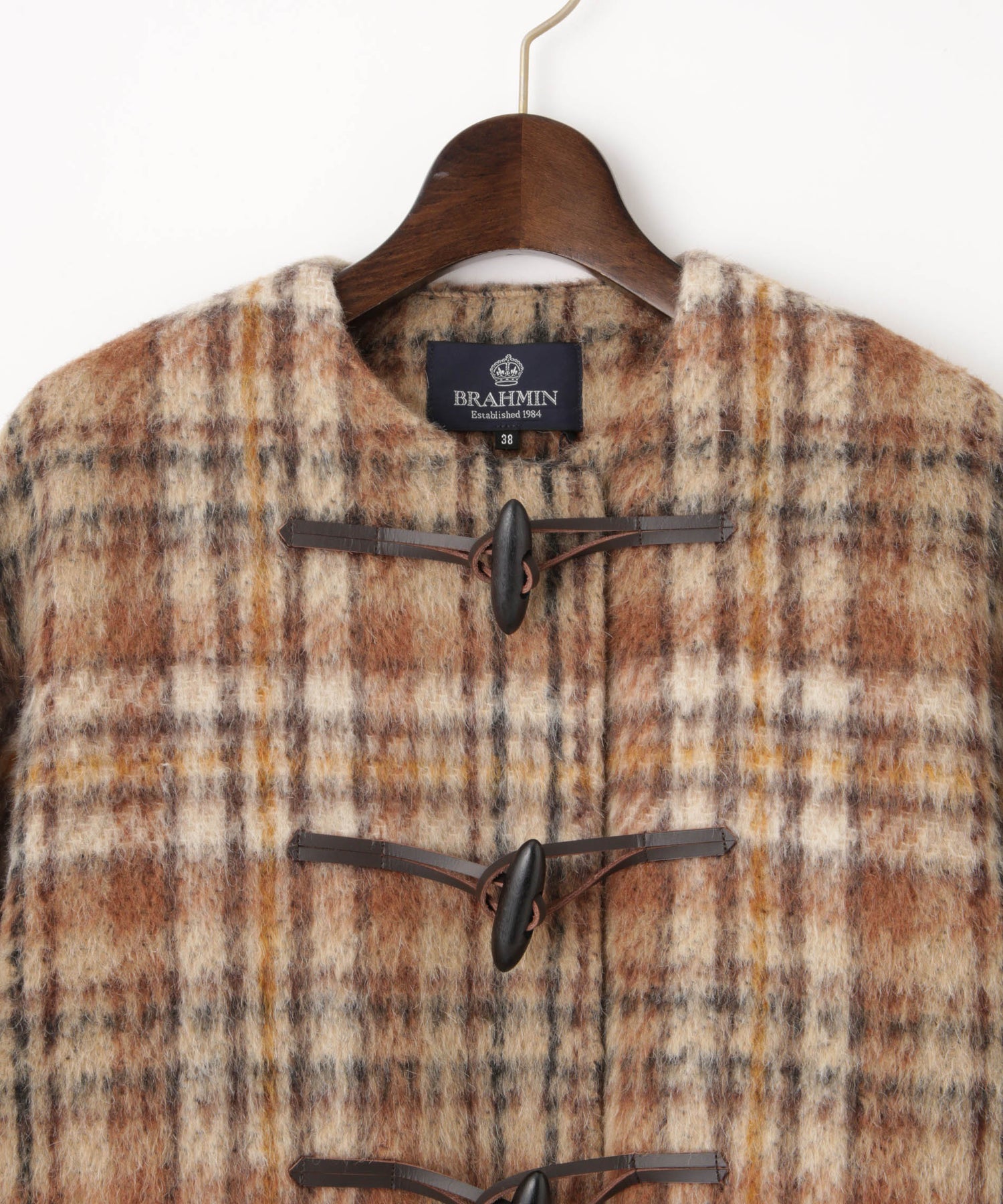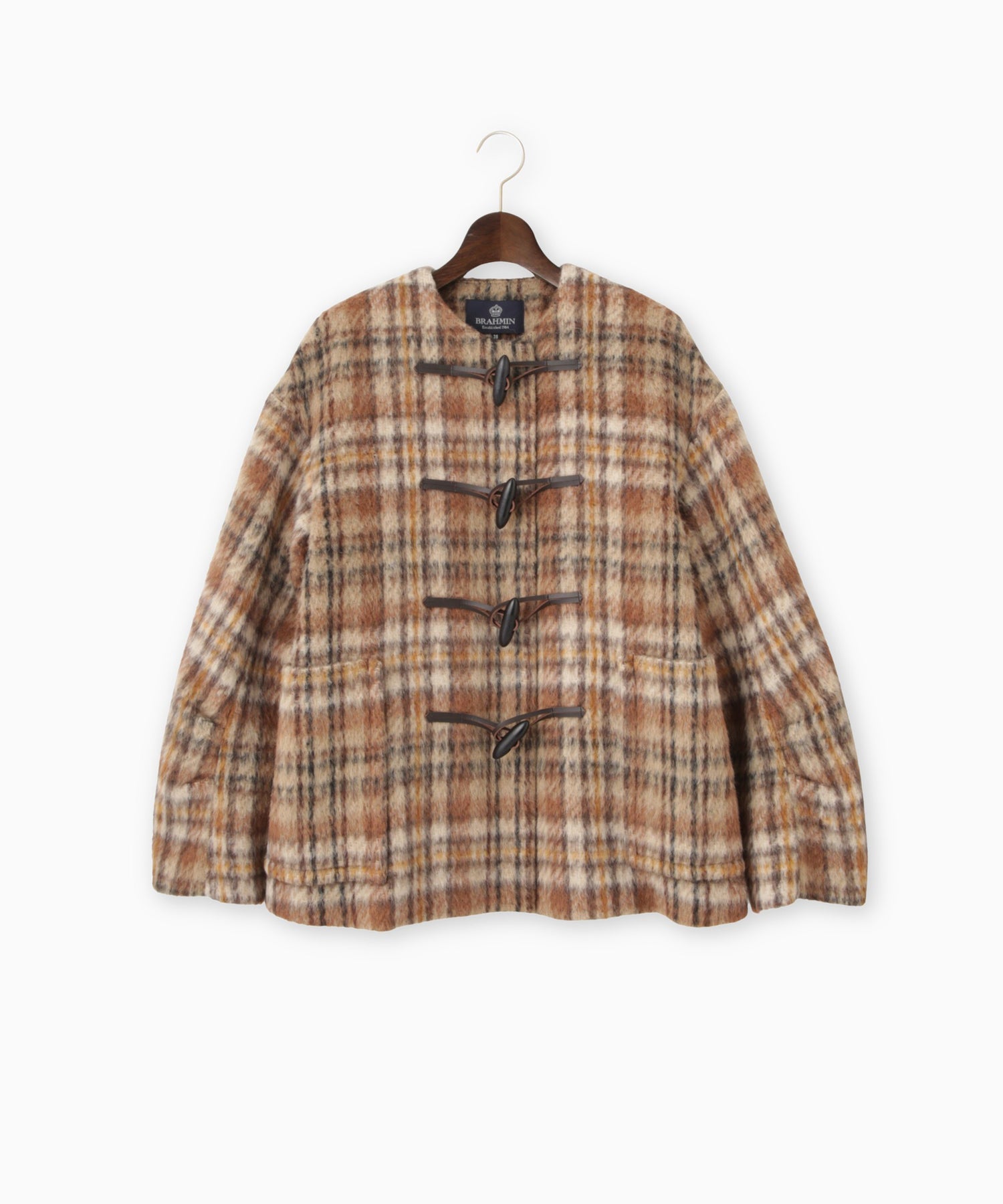 トラッドな雰囲気漂うチェック柄が目を惹くダッフルコート。