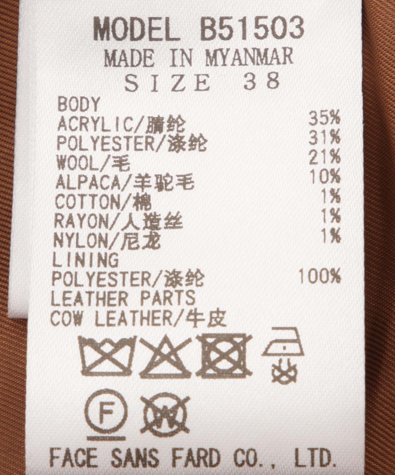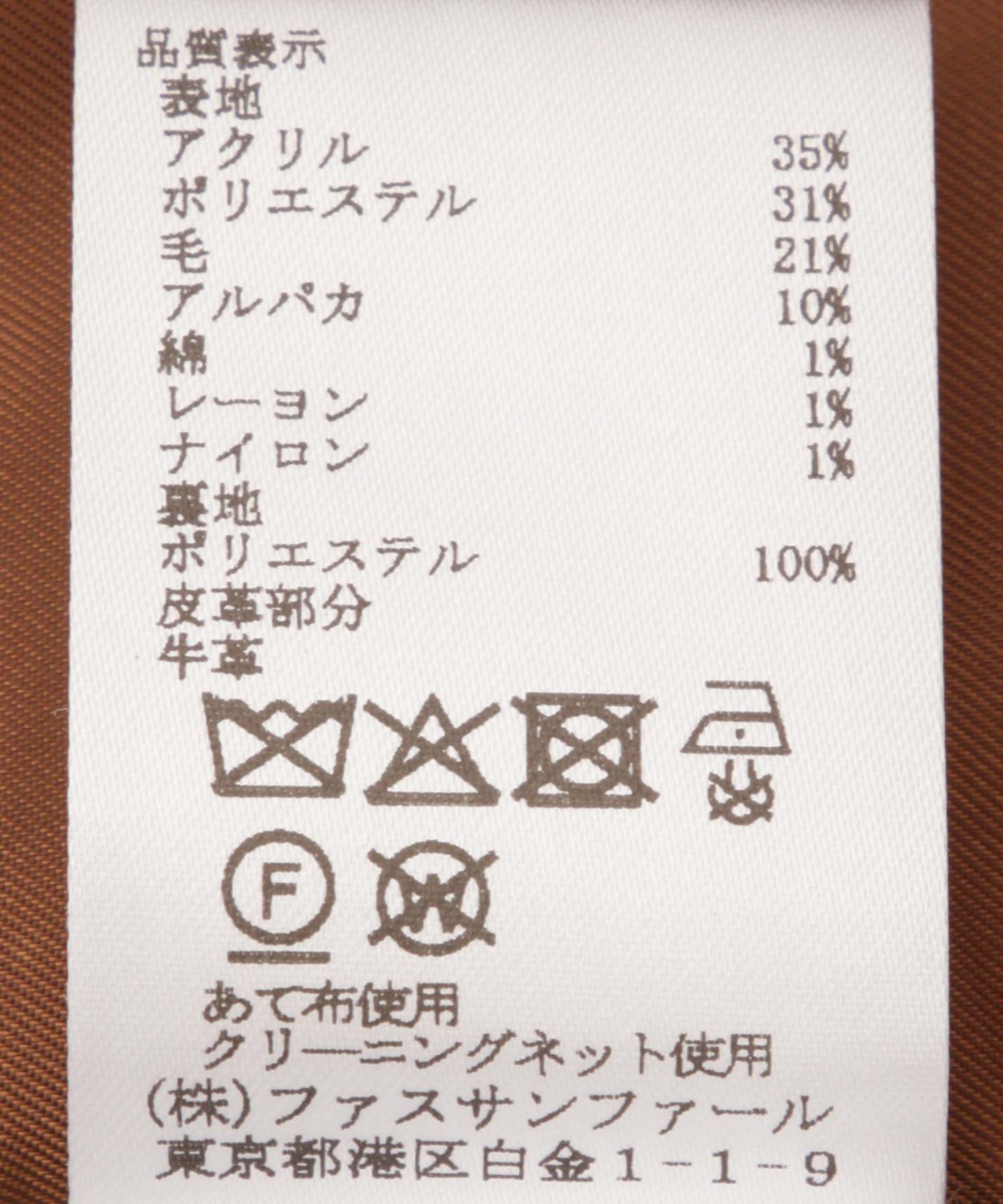 【素材】表地:アクリル35% ポリエステル31% 毛21% アルパカ10% ナイロン1% レーヨン1% 綿1%
