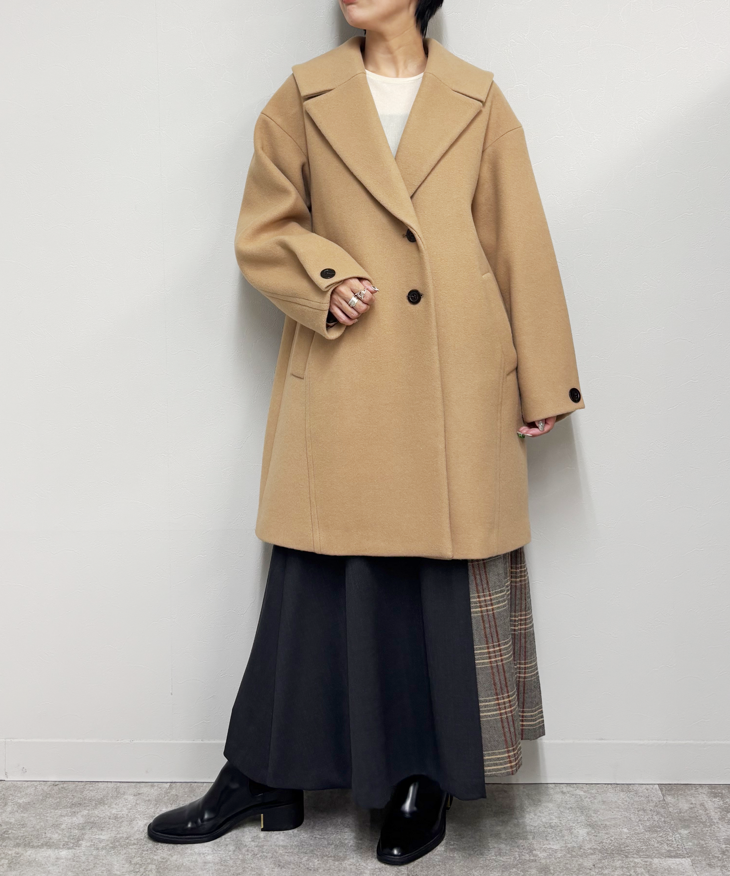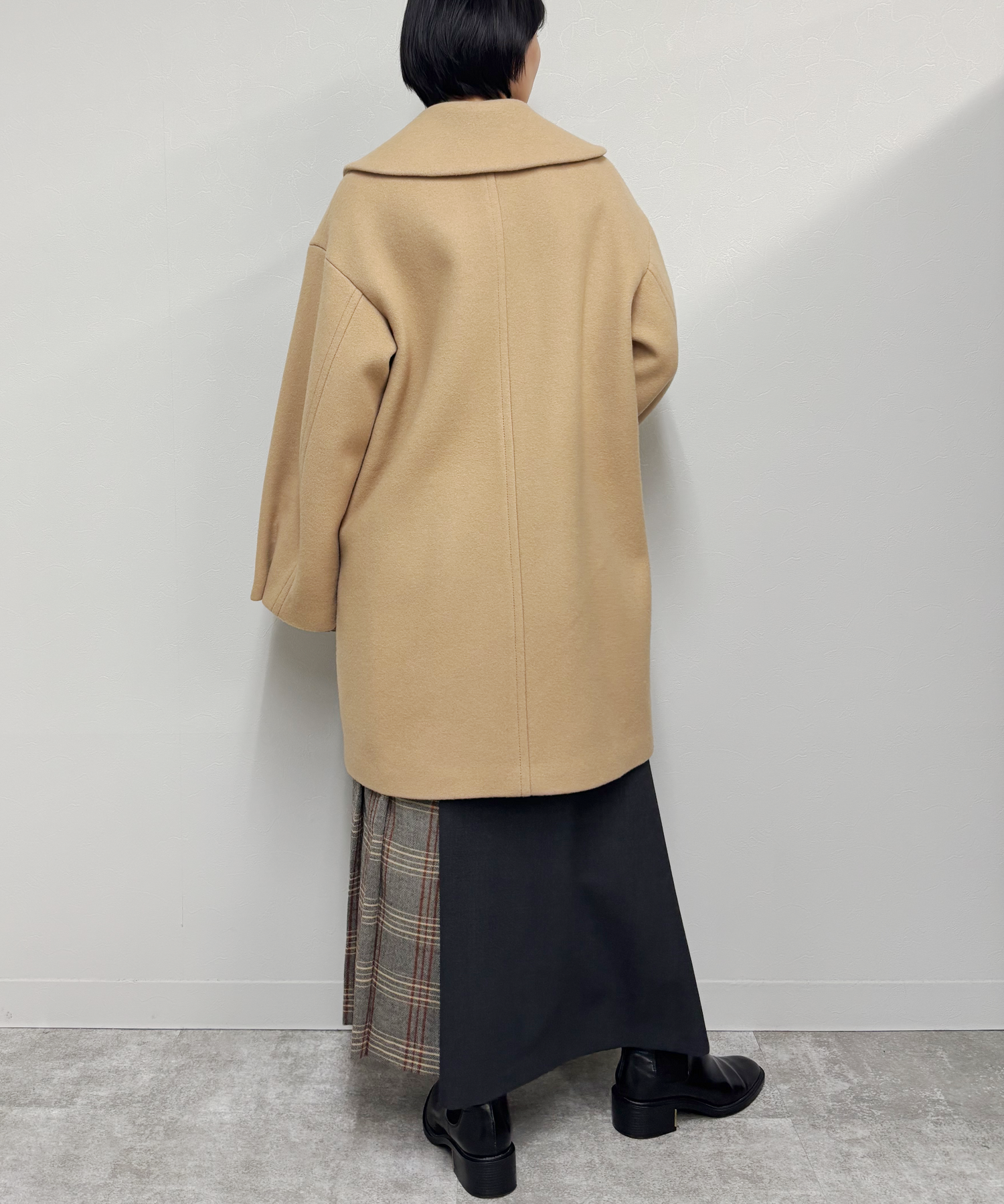 丸みのある衿と袖口のタックが印象的で、素材の良さに合ったエレガントな逸品です。