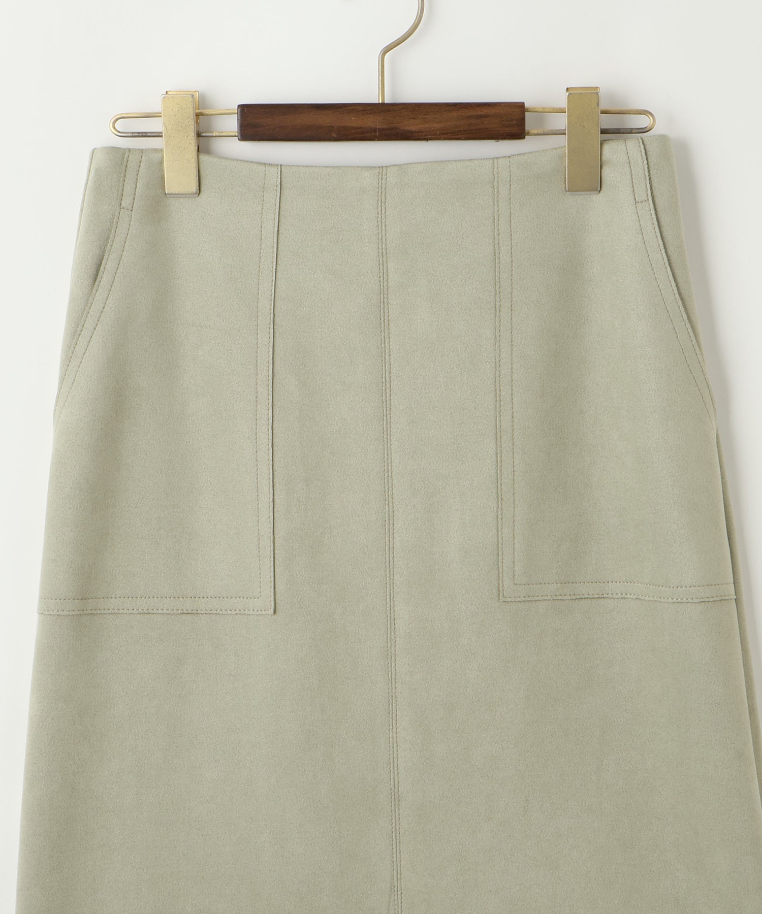 台形型でフロントスリットが女性らしさを演出するミディアム丈のスカート。