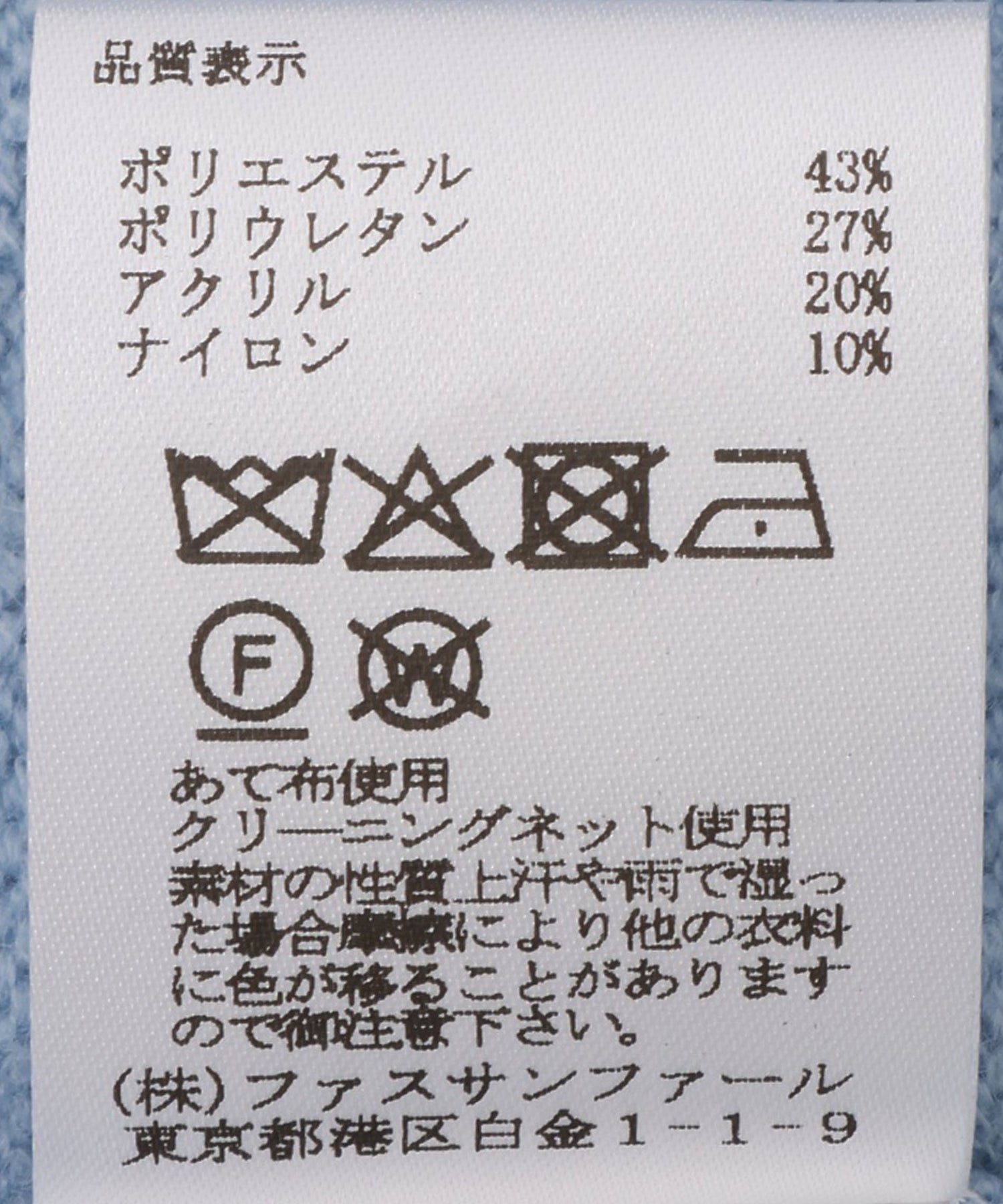 【素材】ポリエステル43% ポリウレタン27% アクリル20% ナイロン10%