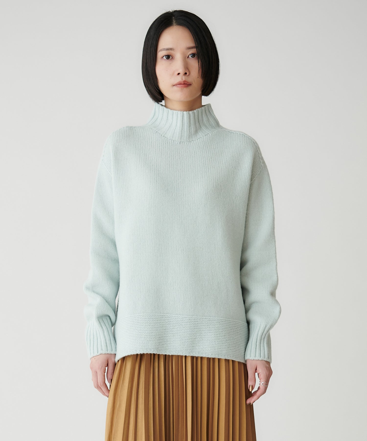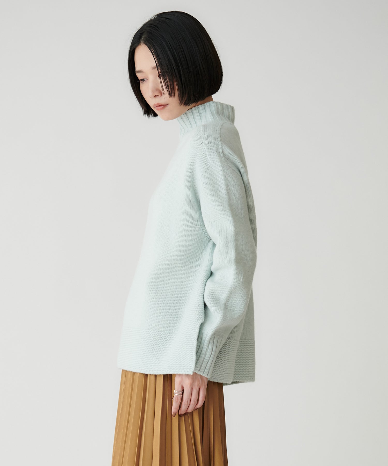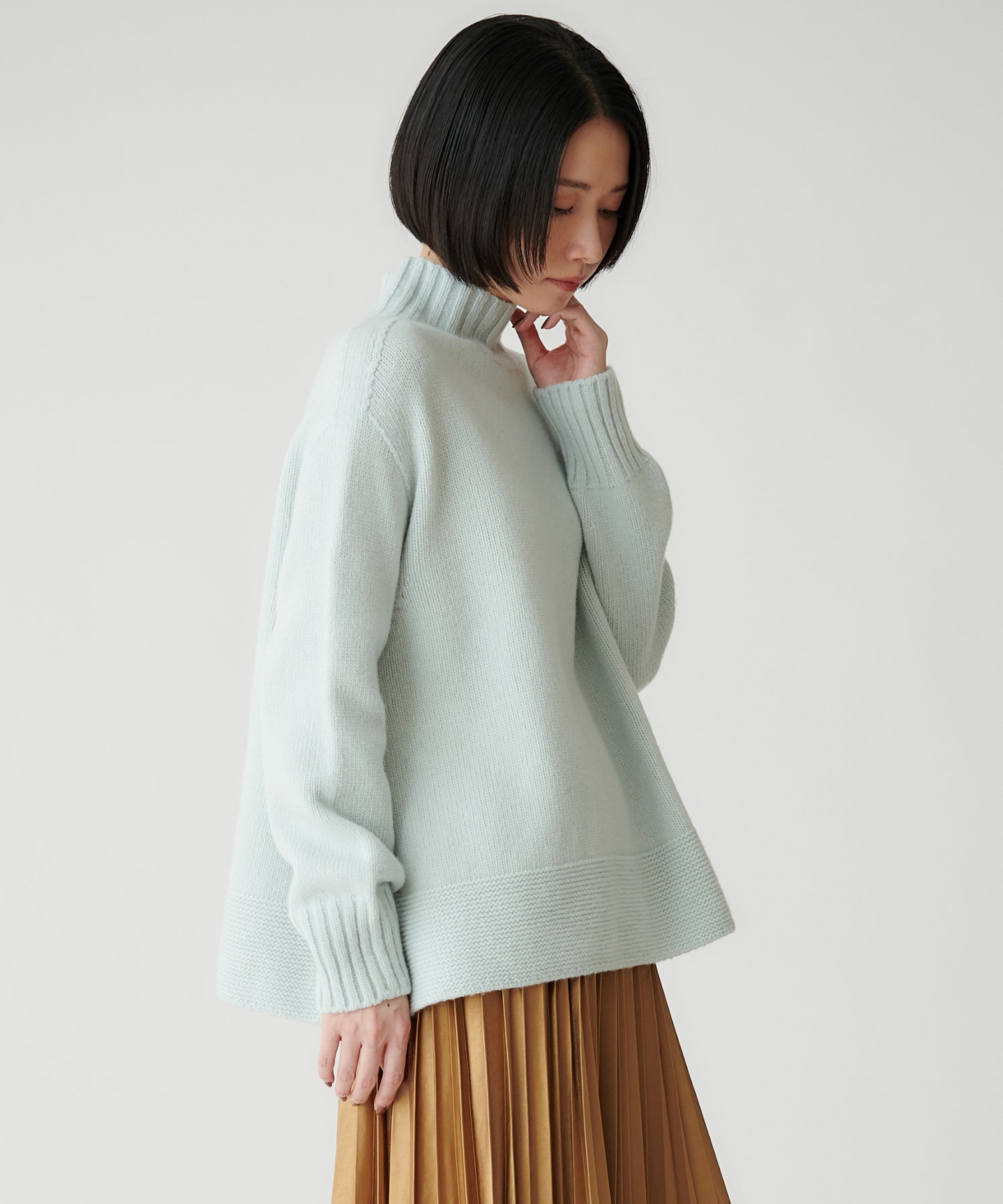 優しいペールトーンが、冬のスタイリングを明るい印象に高めます。
