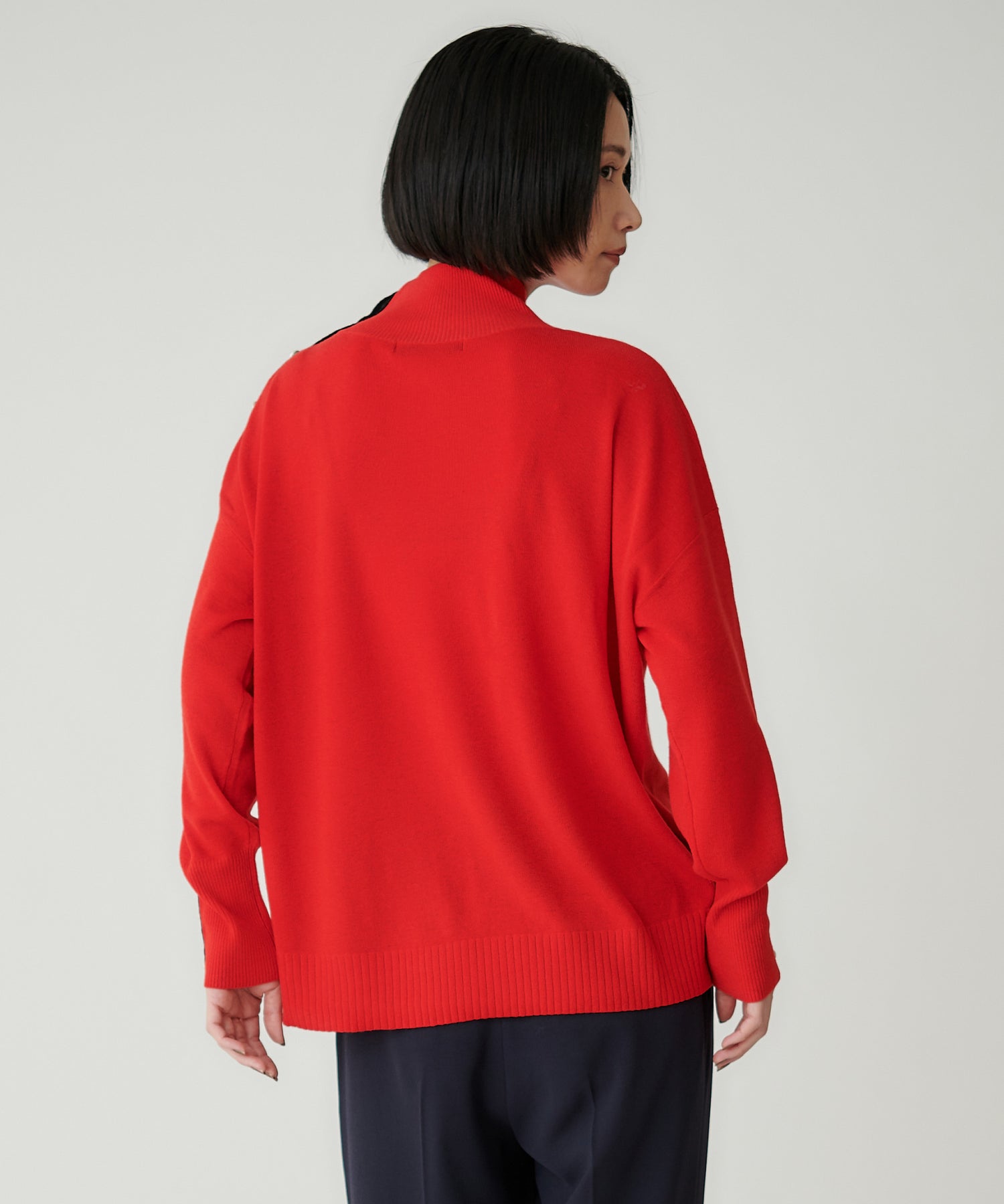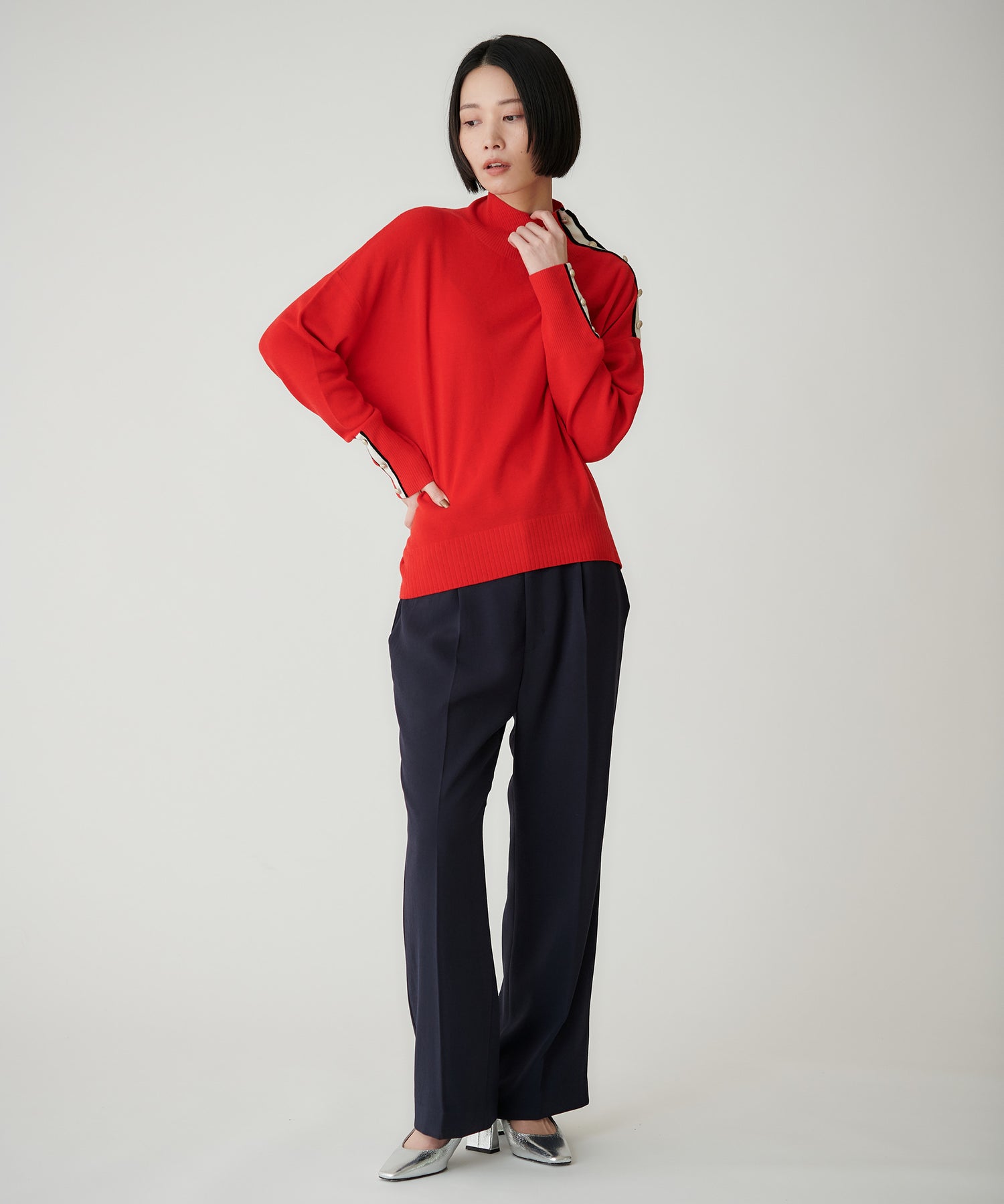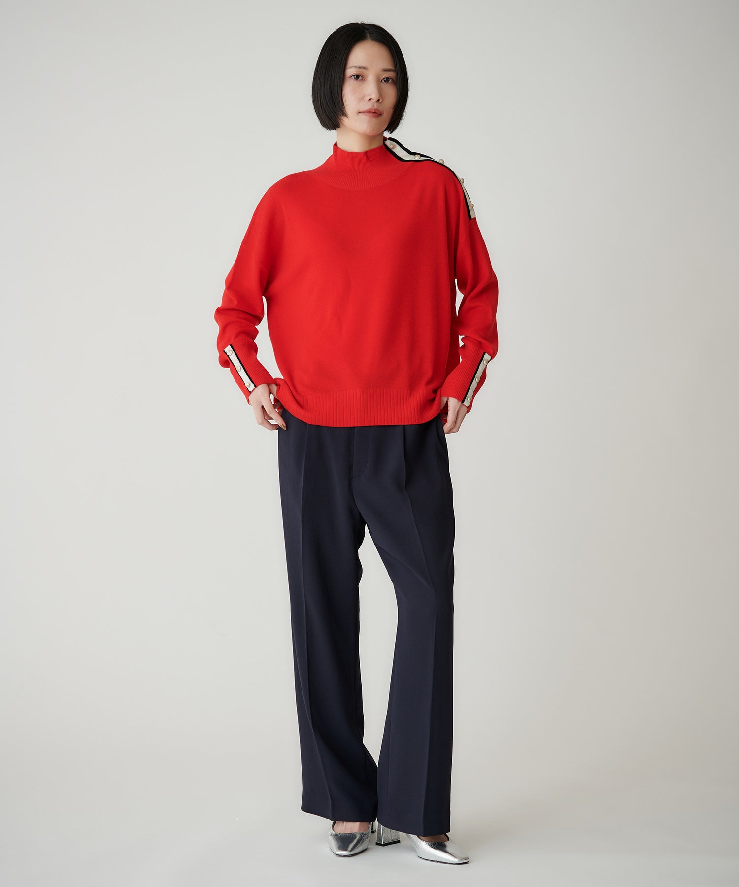 スタンドネックとラインテープを活かし、アウターの襟元から覗かせると素敵。