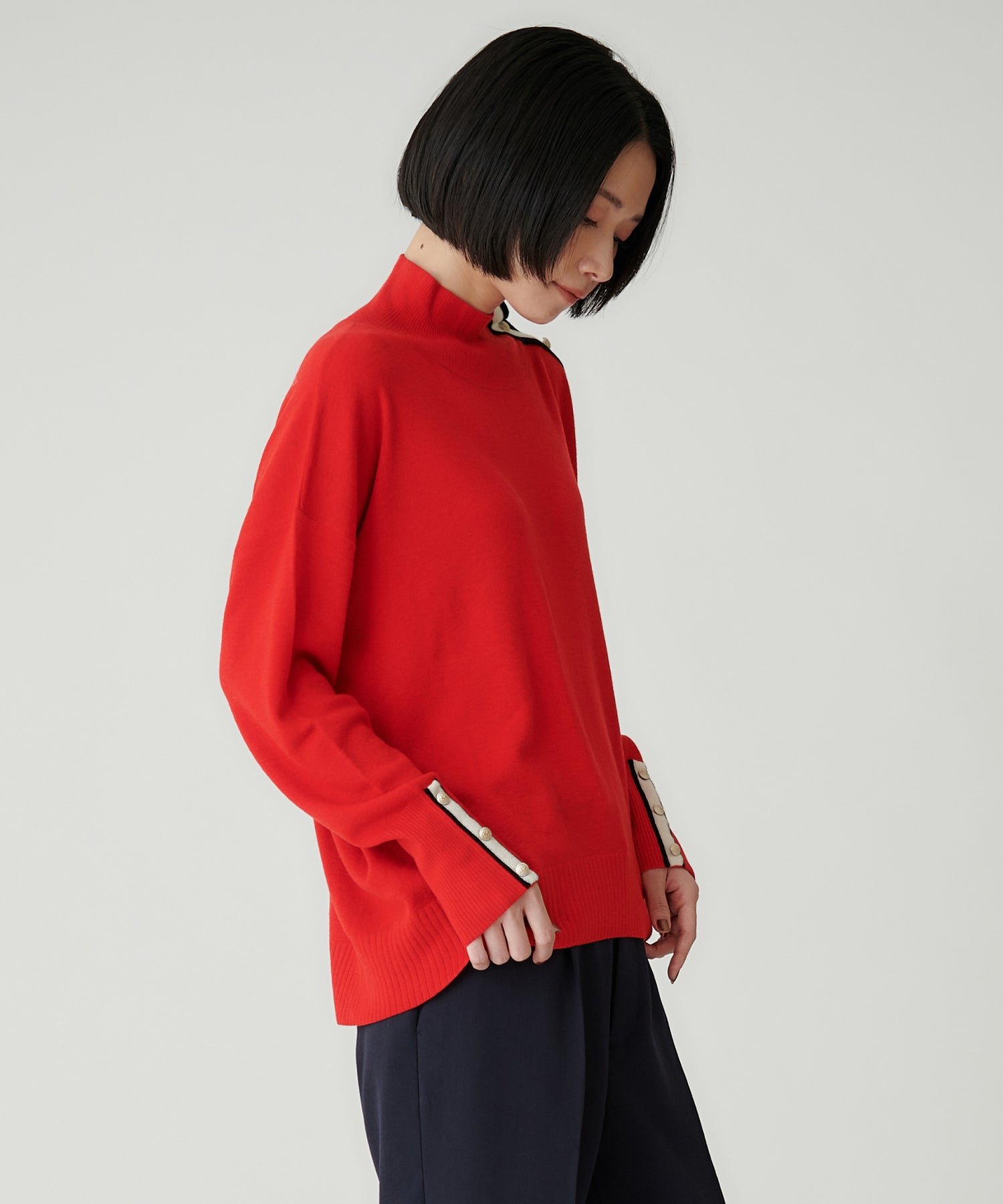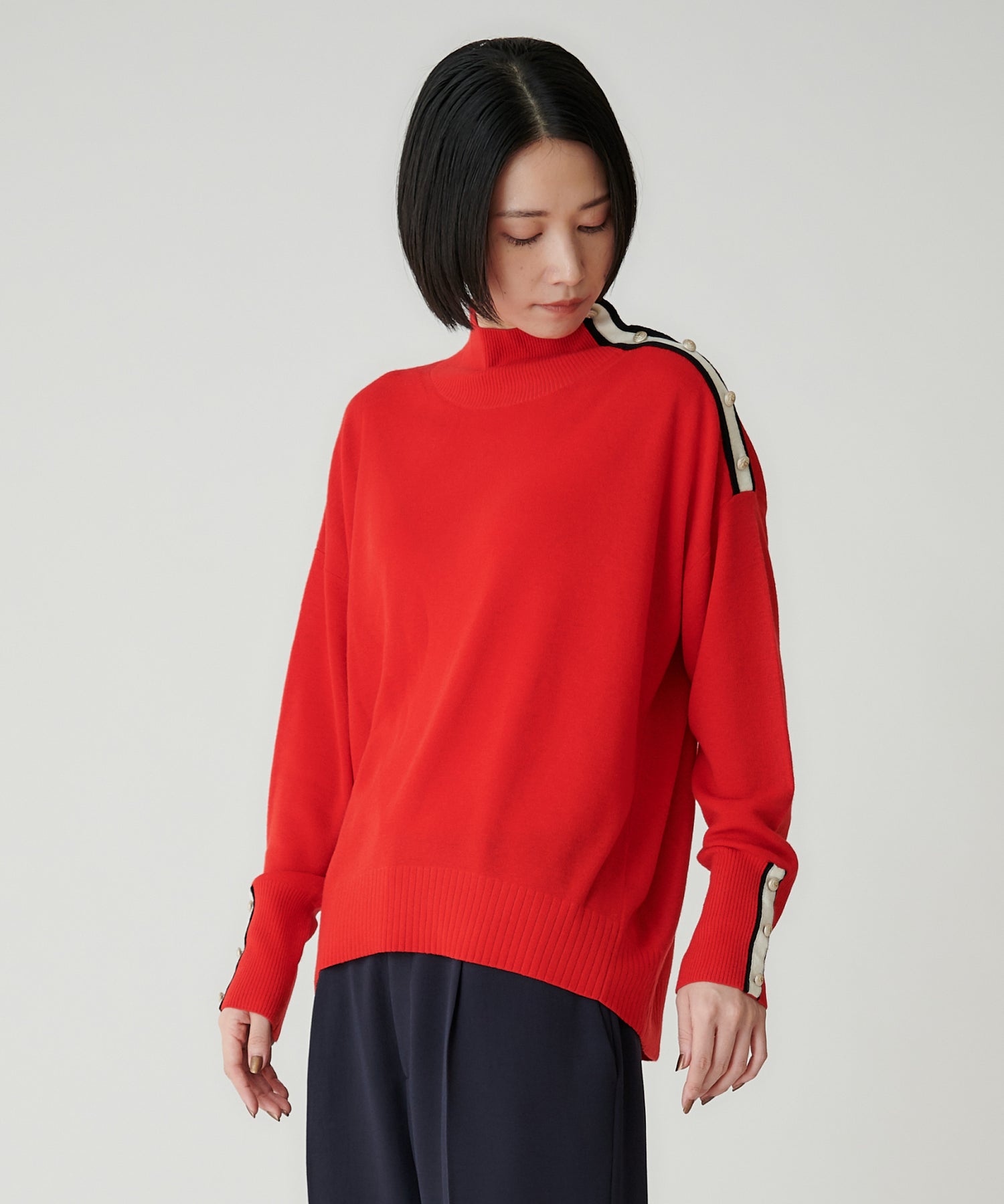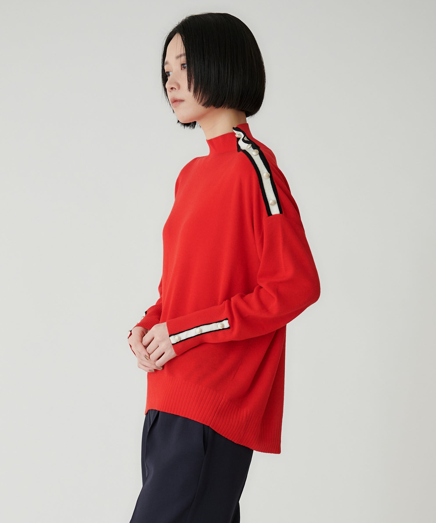 スタンドネックとラインテープを活かし、アウターの襟元から覗かせると素敵。