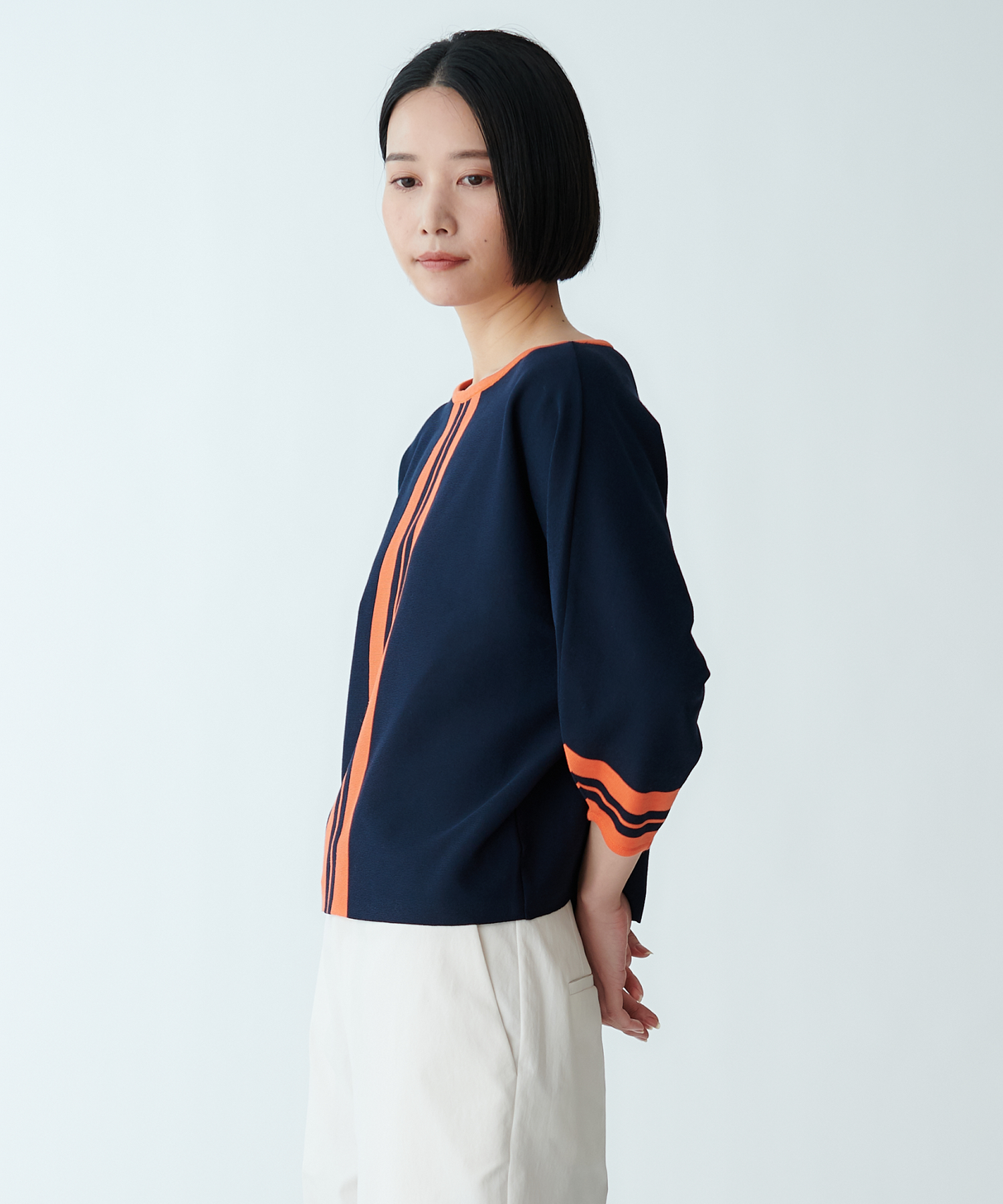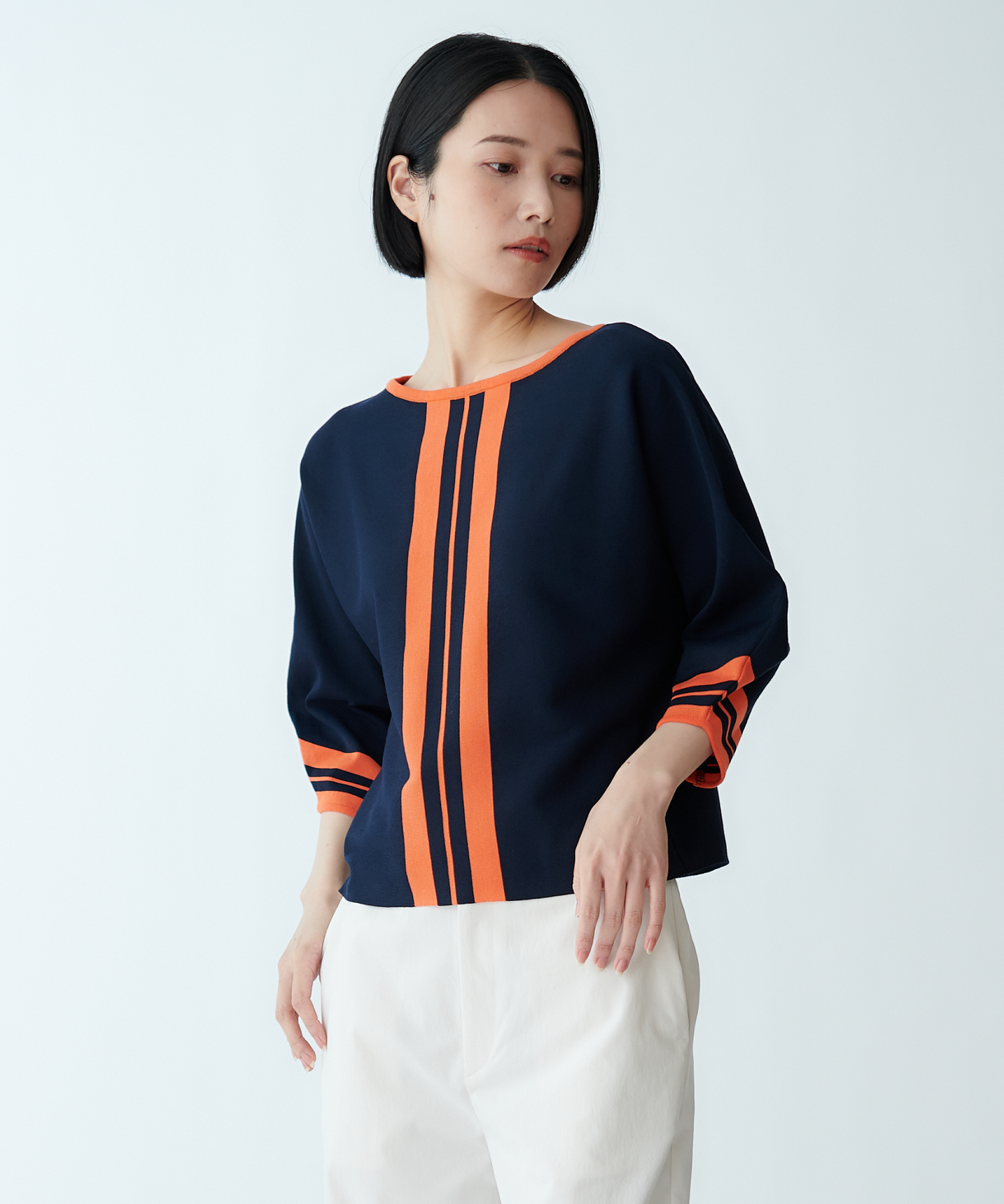 モデル H:165cm / 38 / ネイビー×オレンジ