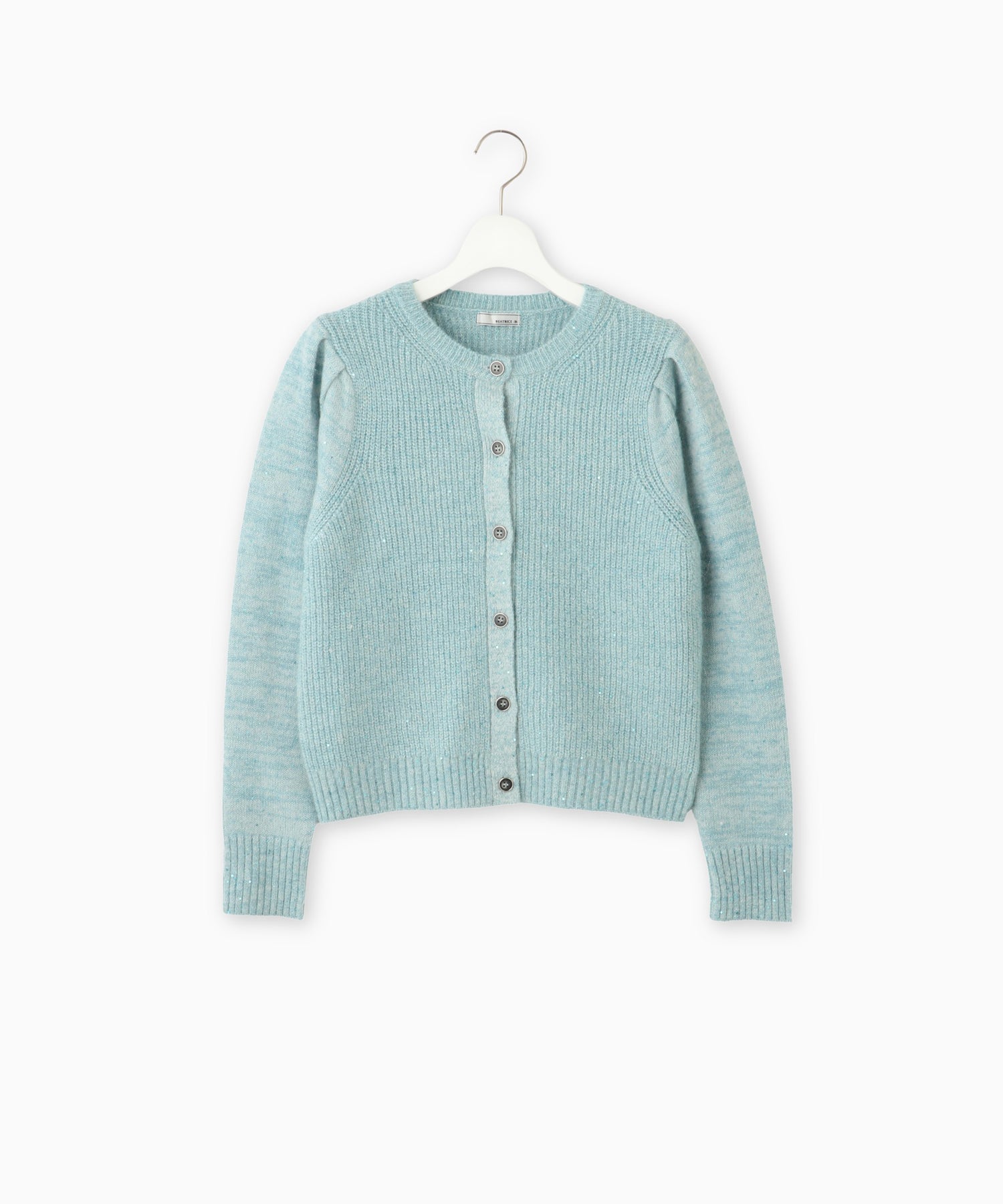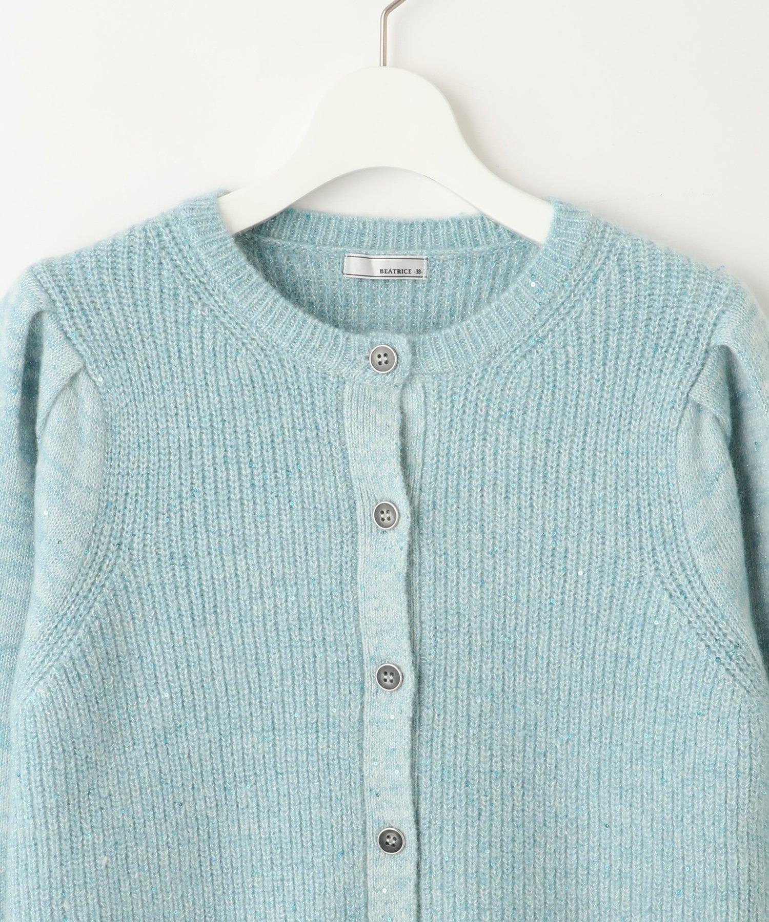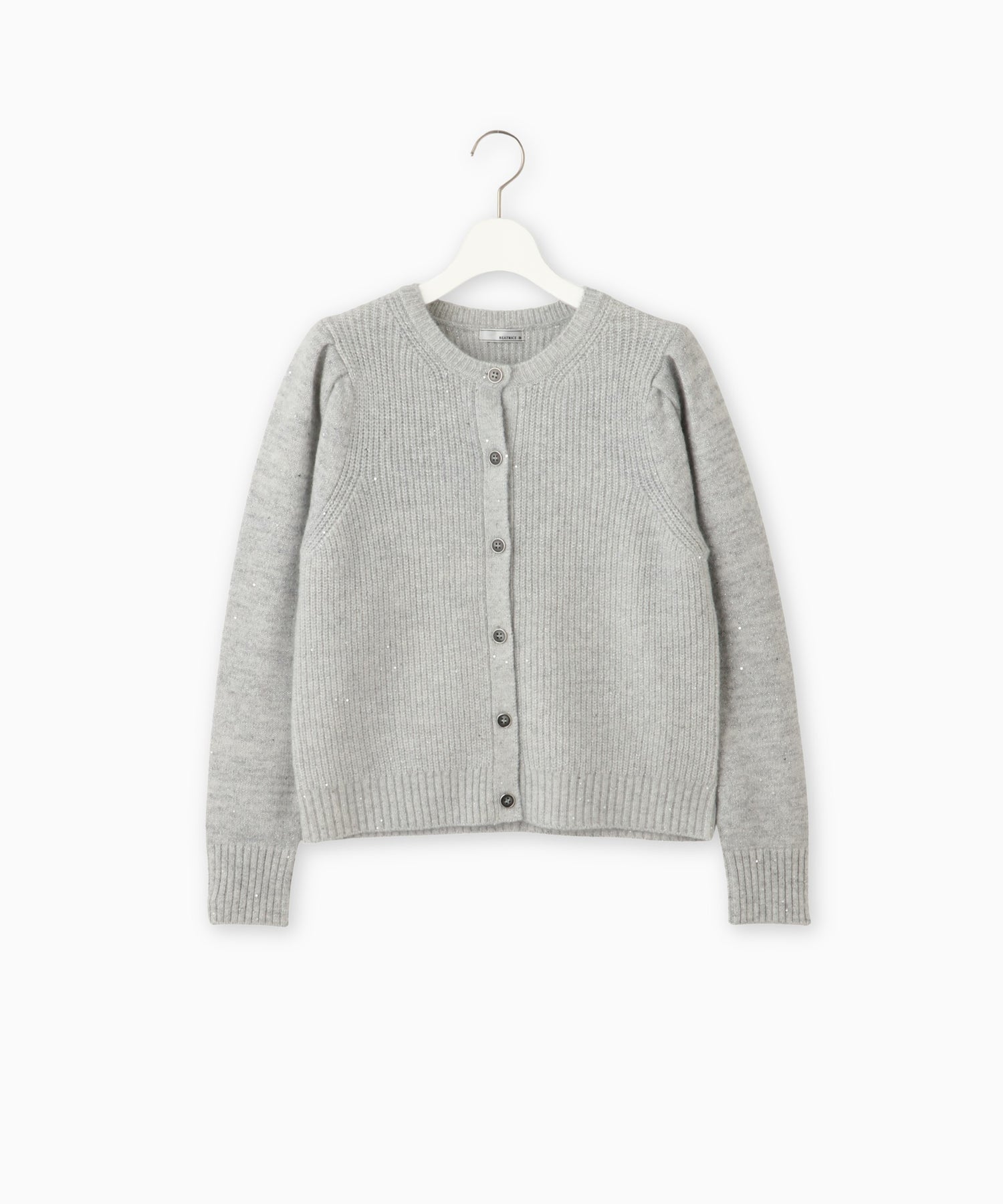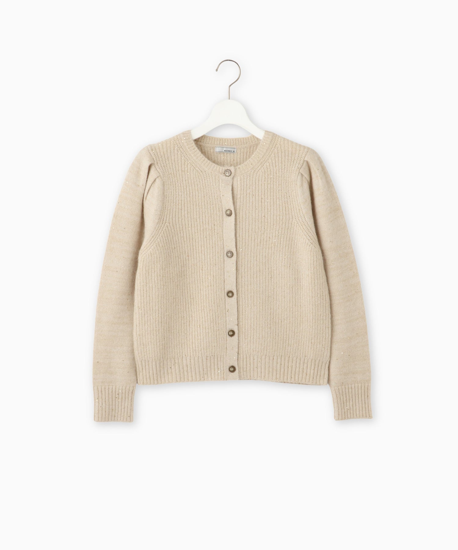 肩先に入ったタックがさりげないデザインポイントになったカーディガン。