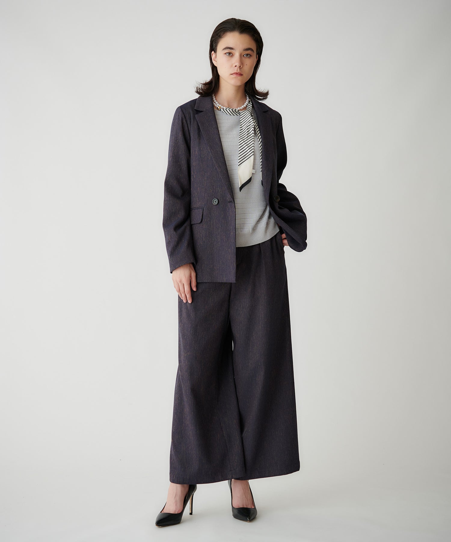 同素材のワイドパンツと合わせれば、洗練された雰囲気に。