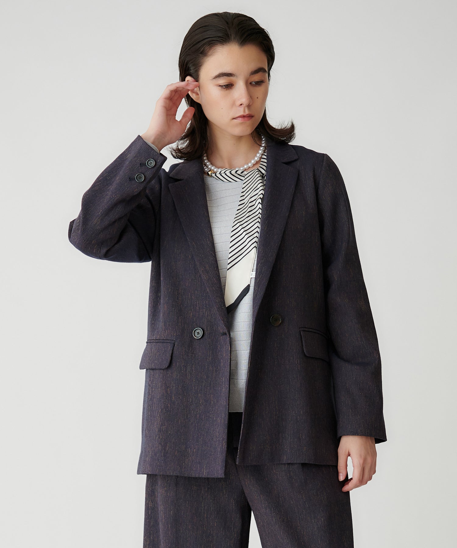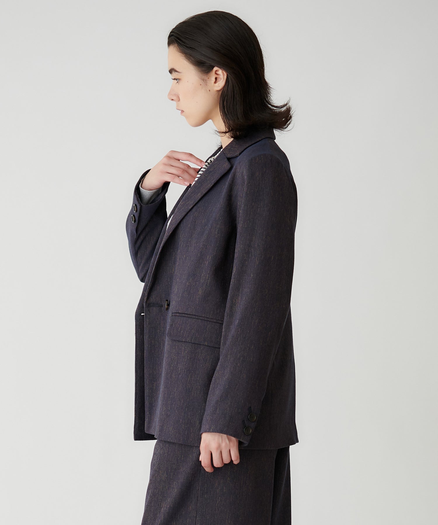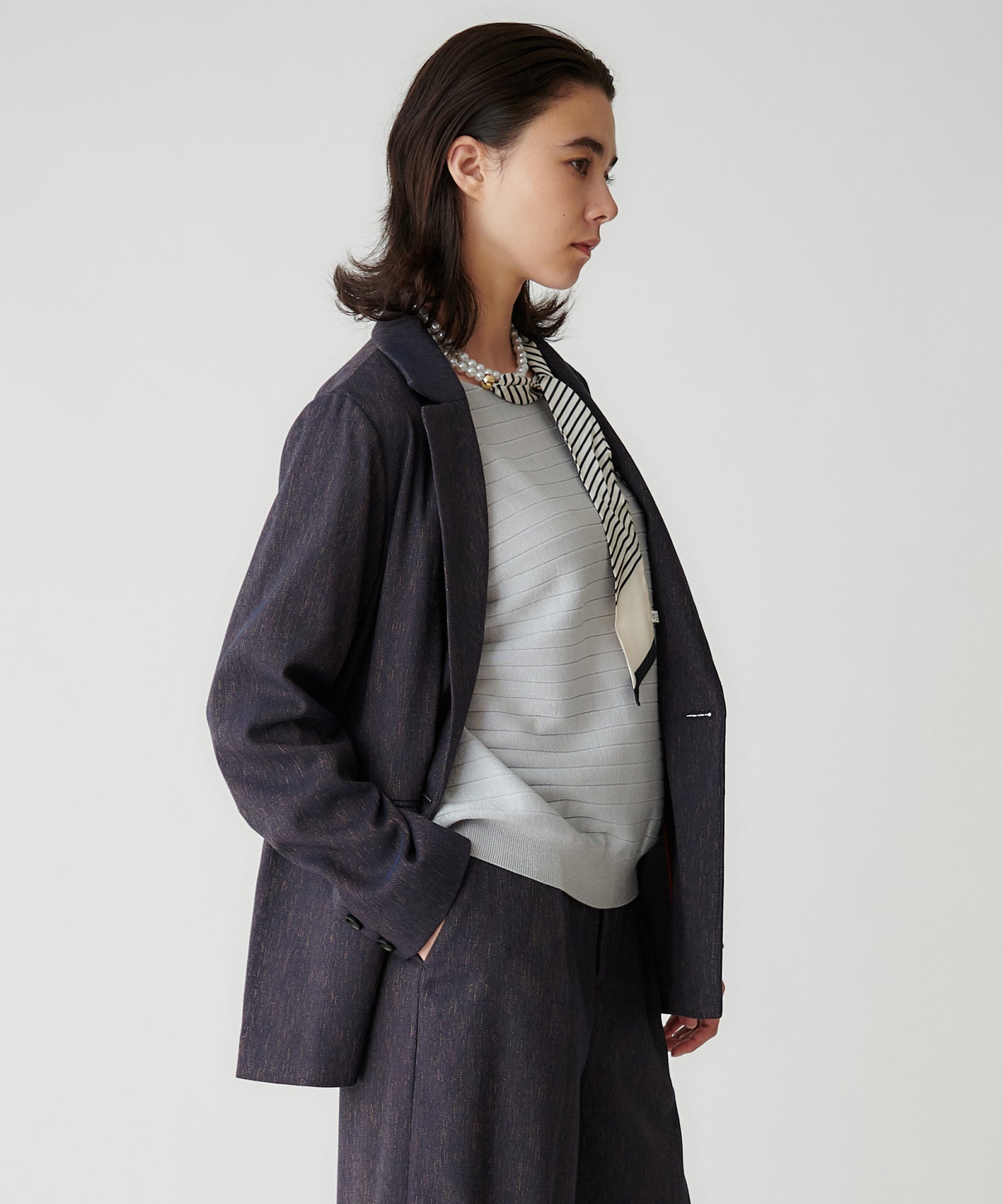 ウールのような柔らかさと膨らみを感じさせる、軽やかなミックス調の生地を使用。