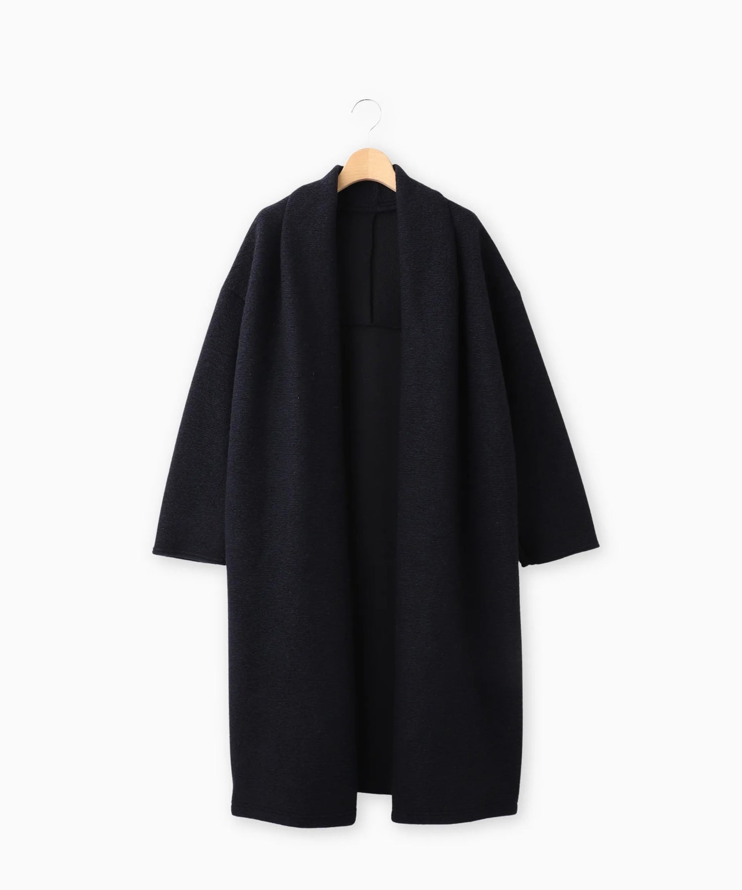 シンプルながらも上品なシルエットで、さっと羽織るだけで洗練された印象に仕上がります。季節の変わり目から真冬まで活躍する万能アイテムです。