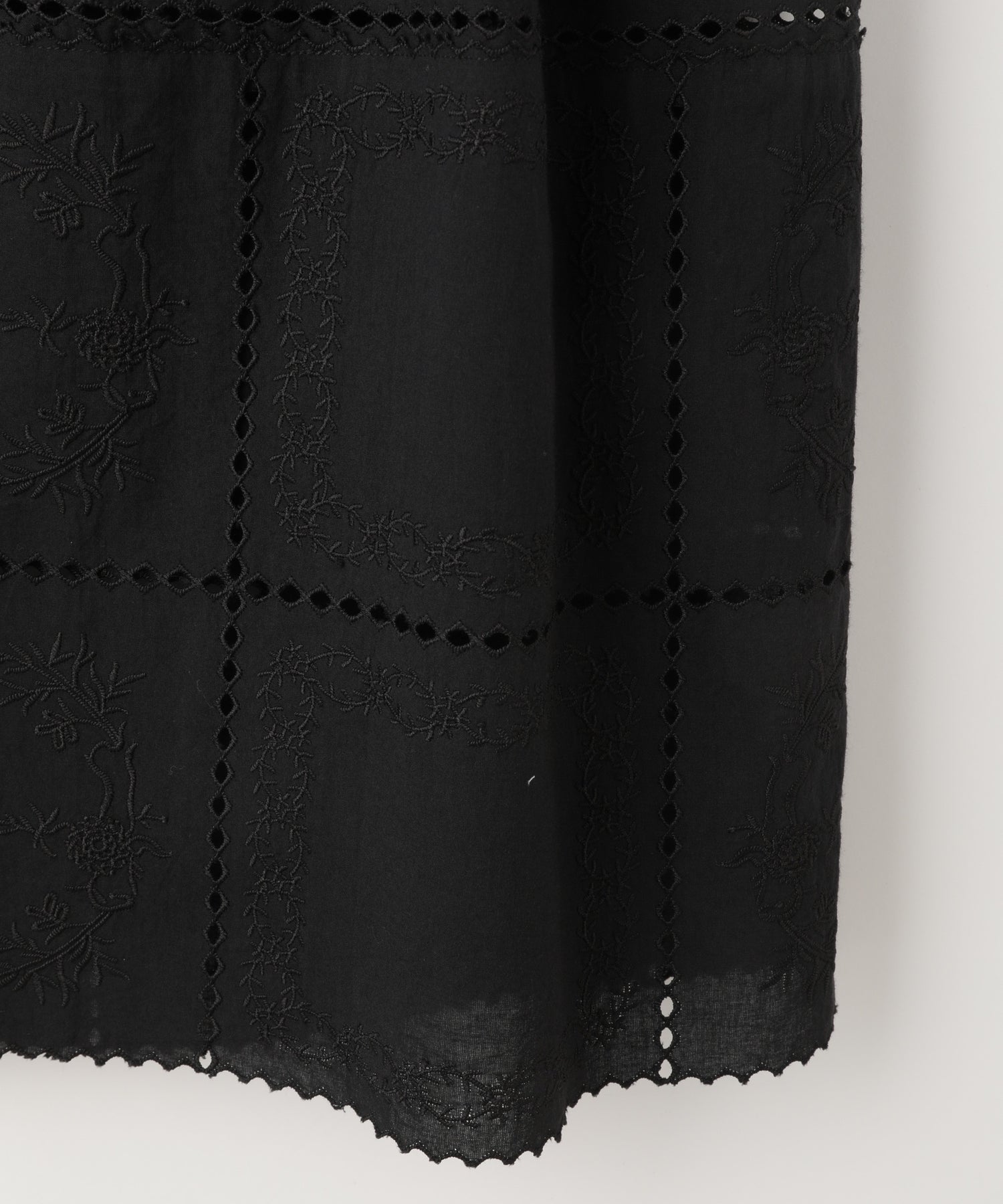 繊細な刺繍が魅力のエンブロイダリーレース素材が表情を添え、日常にも華やかさをプラスしてくれるロングスカート。