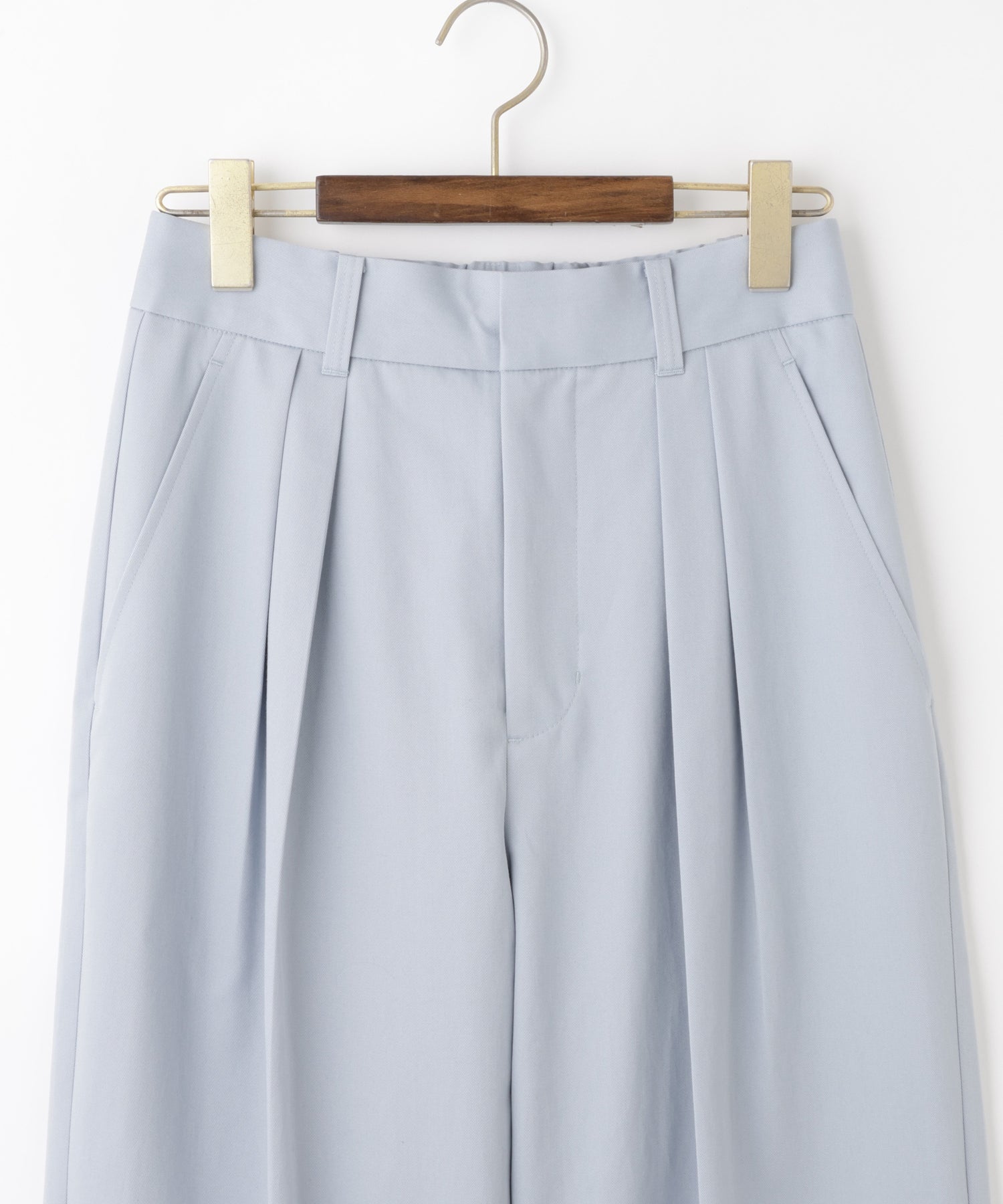 ソフトでほどよい膨らみのあるタッチも魅力のタックワイドパンツ。