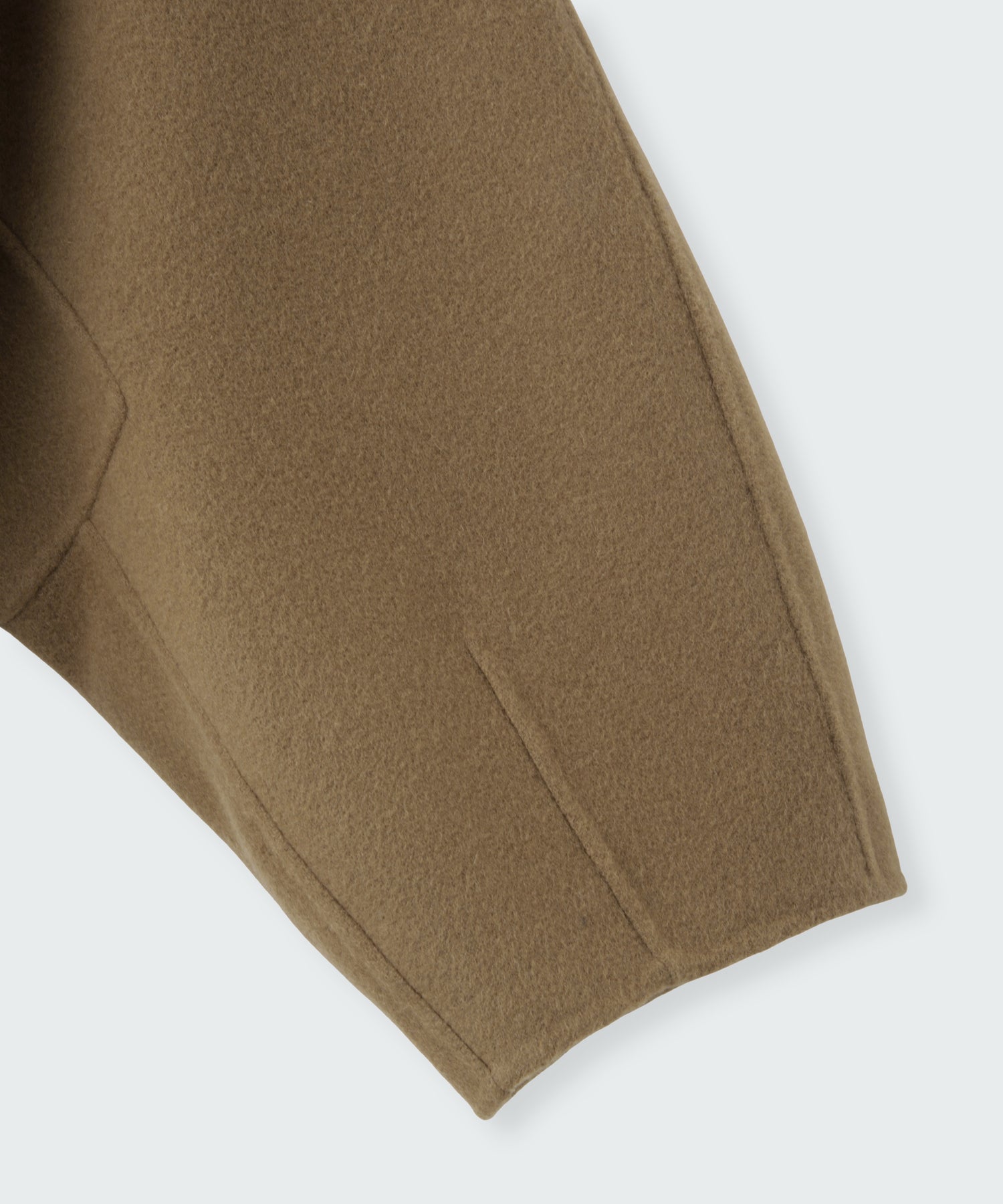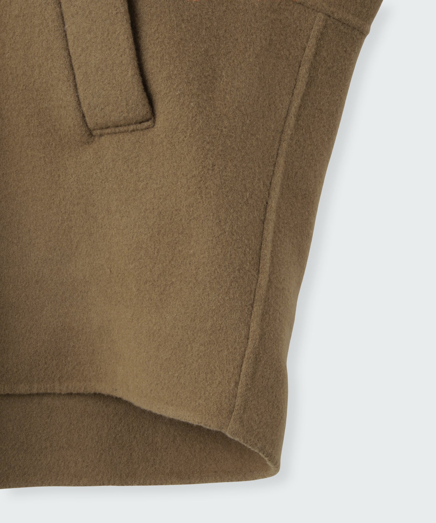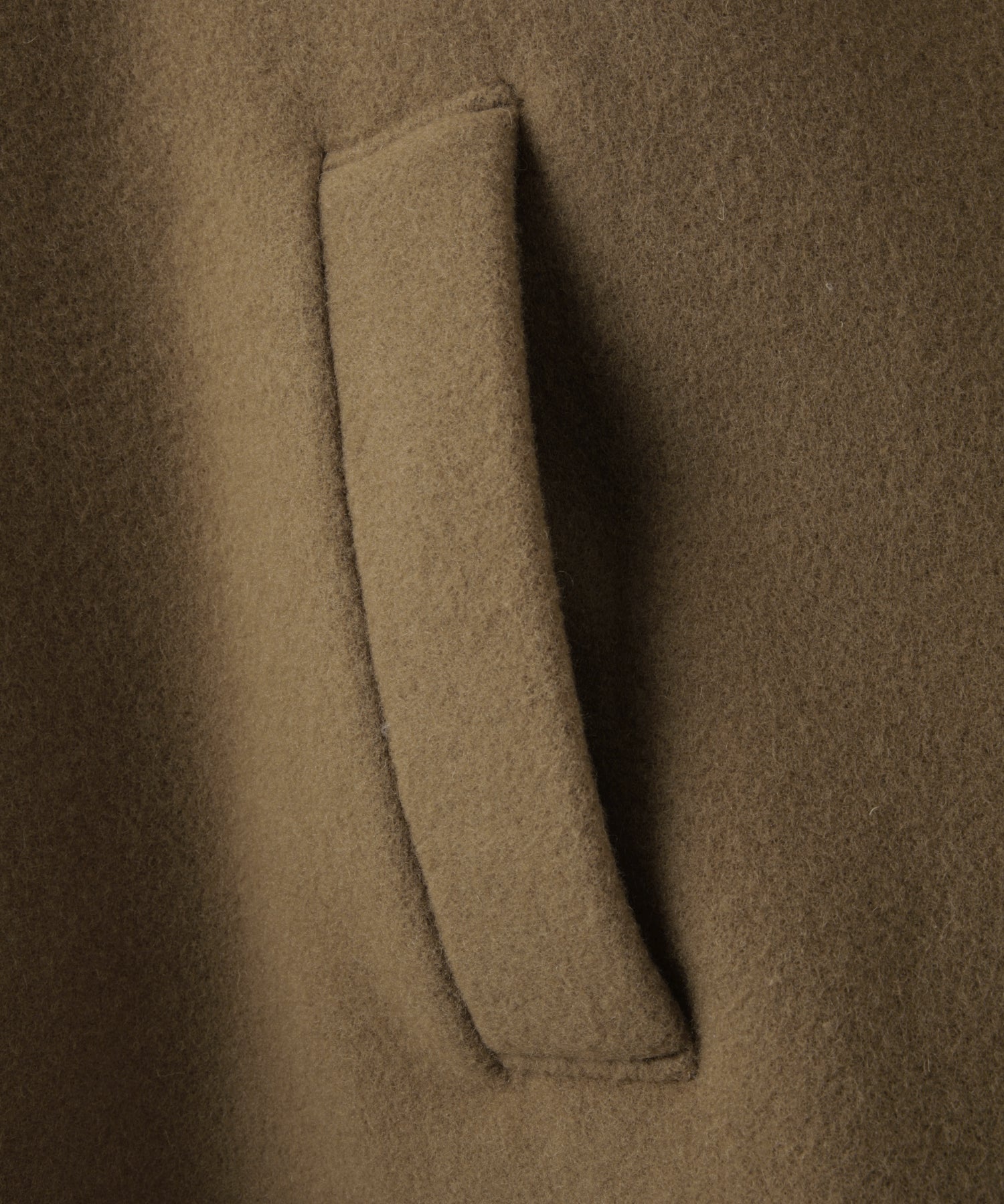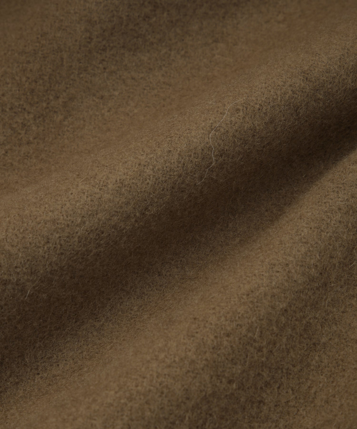 メリノウールを原料に、二重織り・両面起毛加工を施した高品質素材。柔らかくしなやかな風合いで、光沢感もある上品な仕上がり。