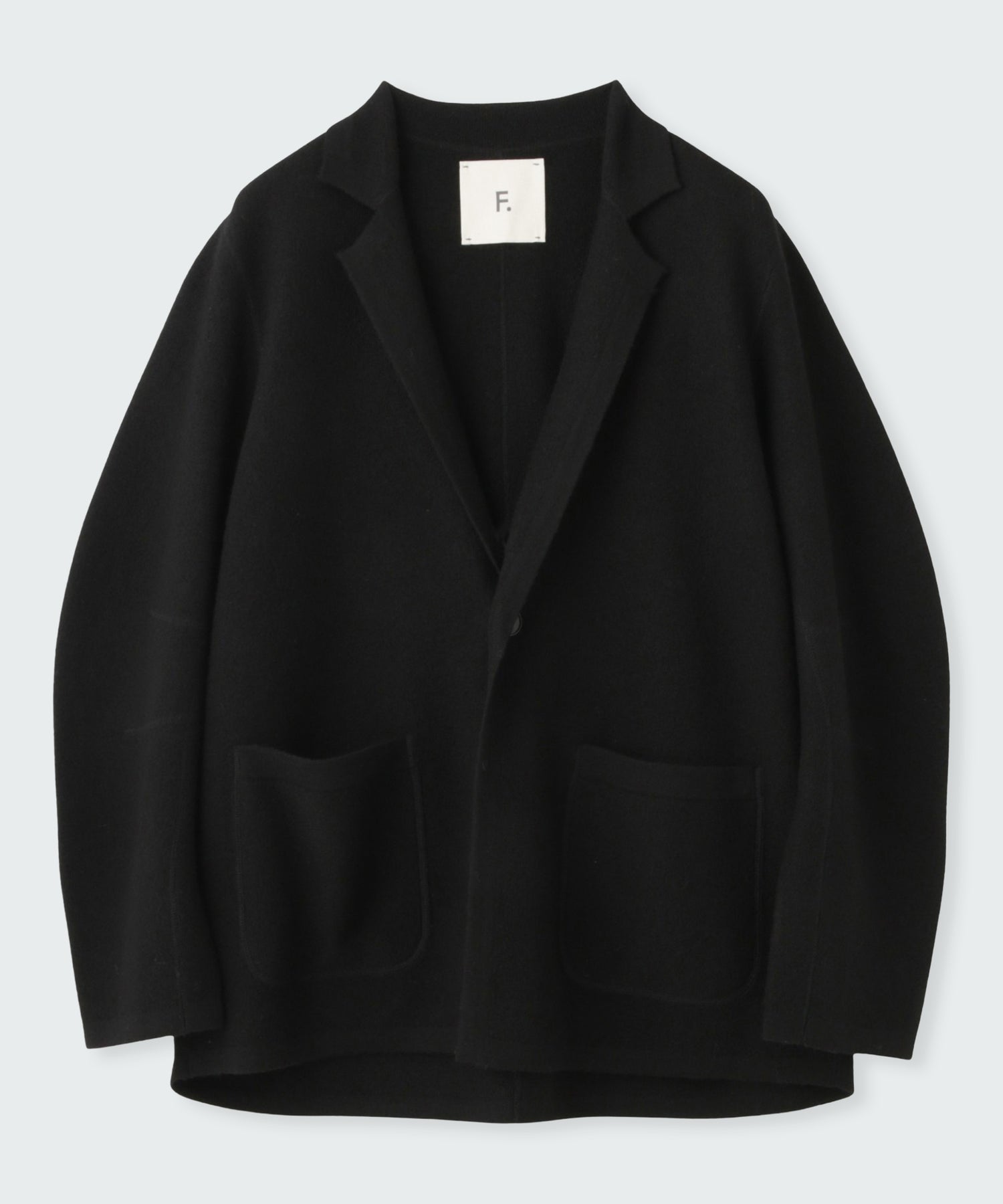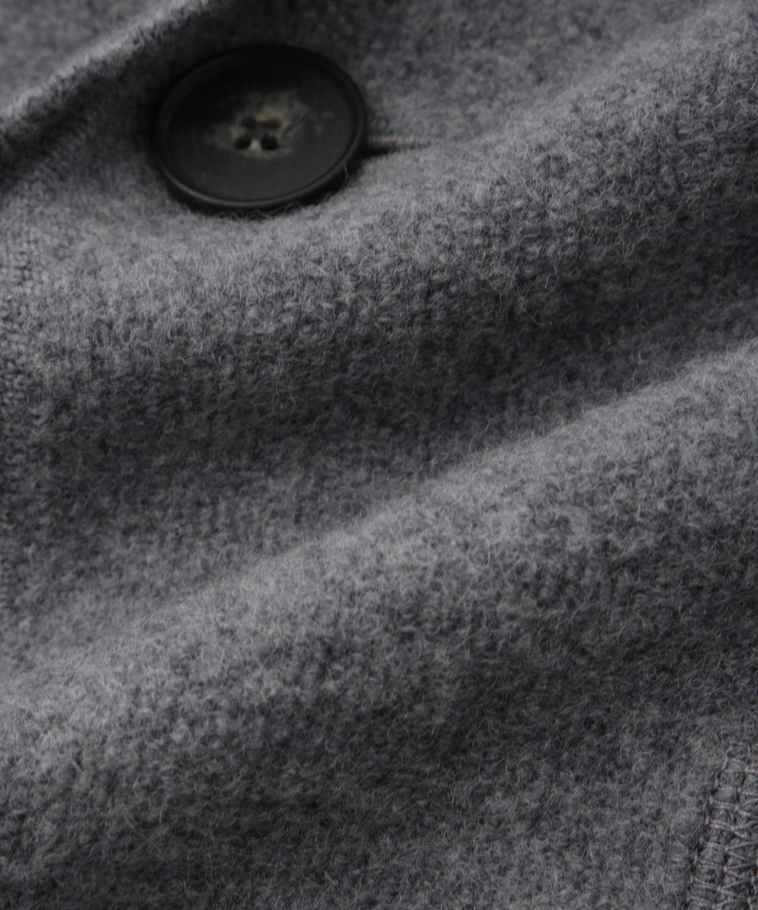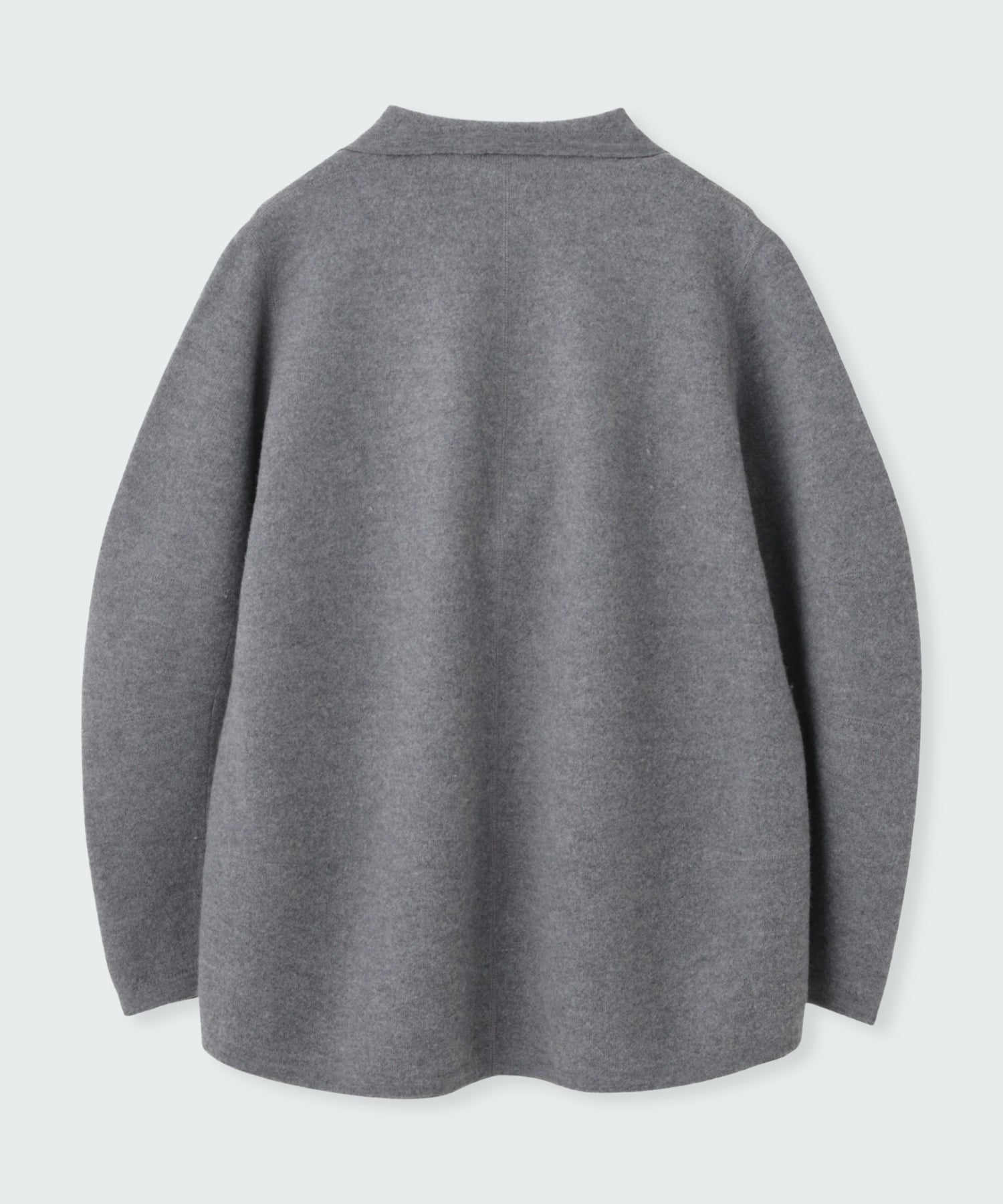 ピュアメリノの梳毛糸を12Gで編み立て、高温圧縮で縮絨させて仕上げたテーラードジャケット。