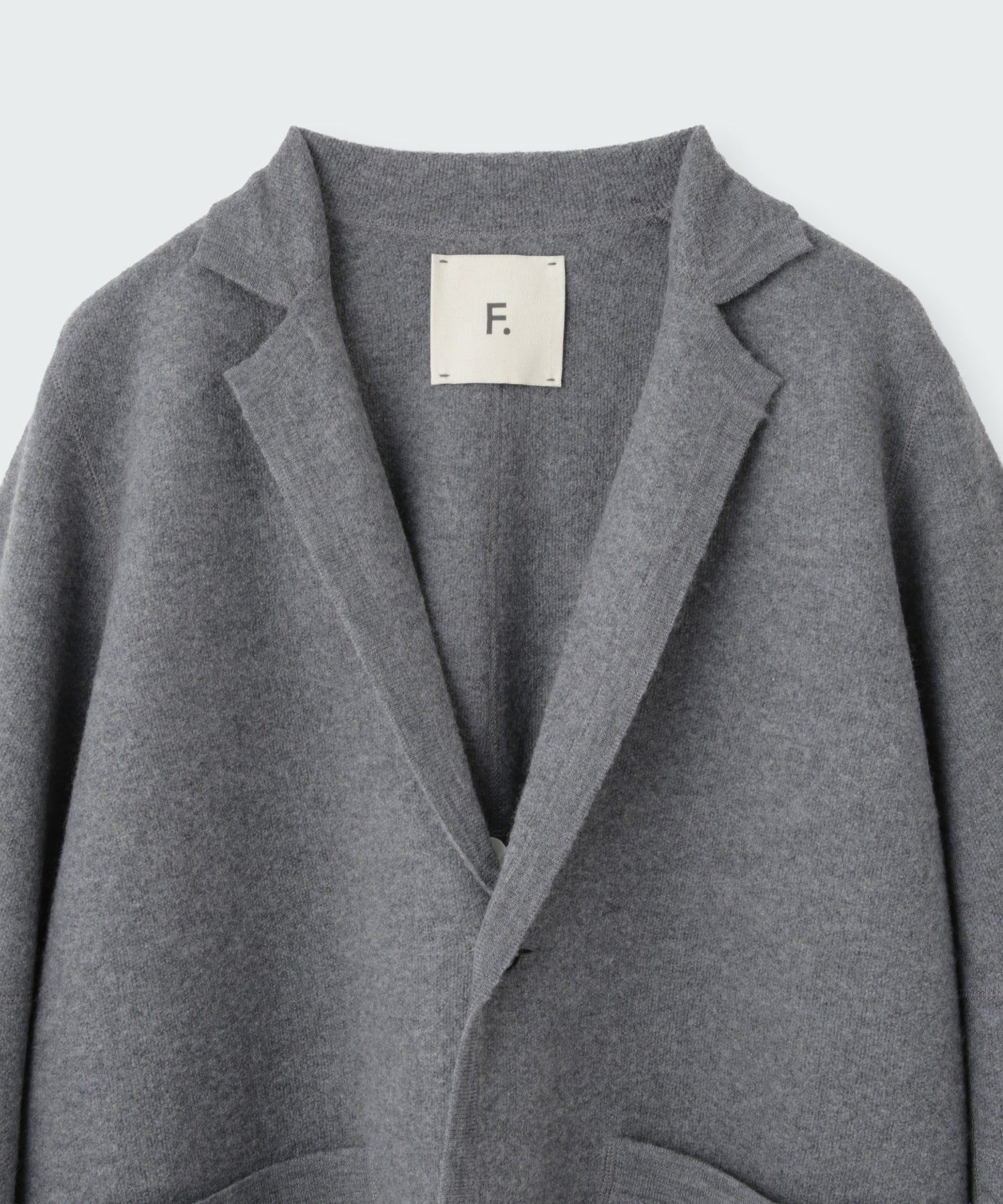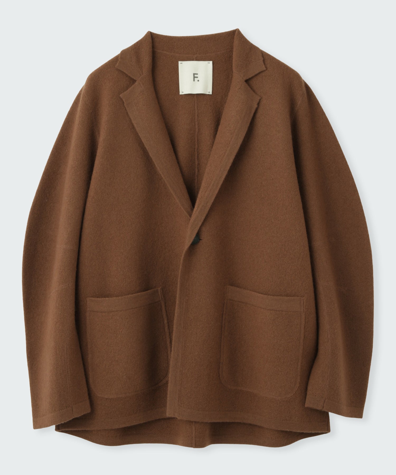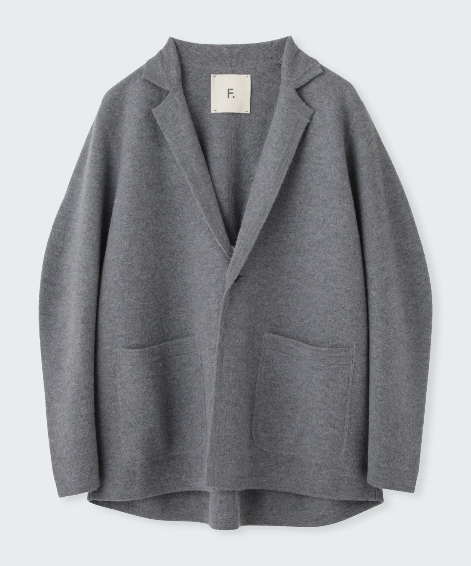 ピュアメリノの梳毛糸を12Gで編み立て、高温圧縮で縮絨させて仕上げたテーラードジャケット。