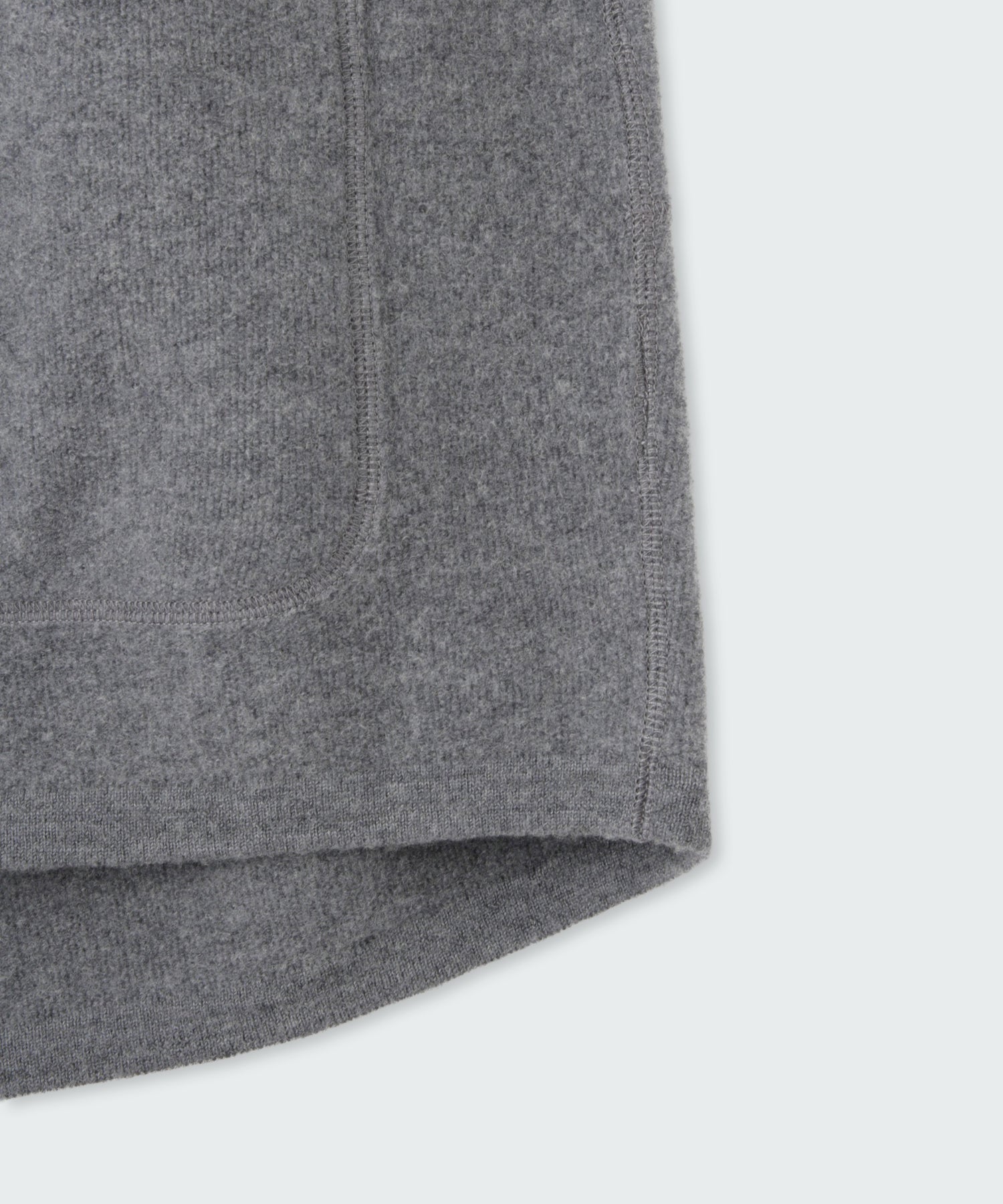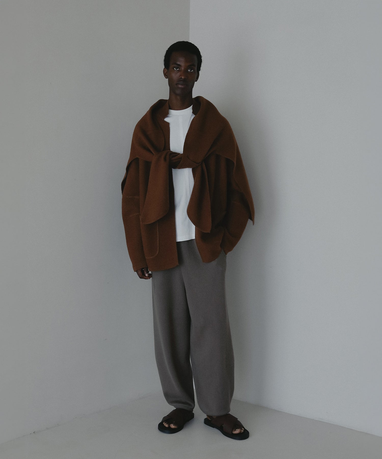 12Gで編み立てた後、高温圧縮で縮絨加工し、厚みと張り感をプラス。柔らかさと保温性を兼ね備えた高品質ウール素材です。