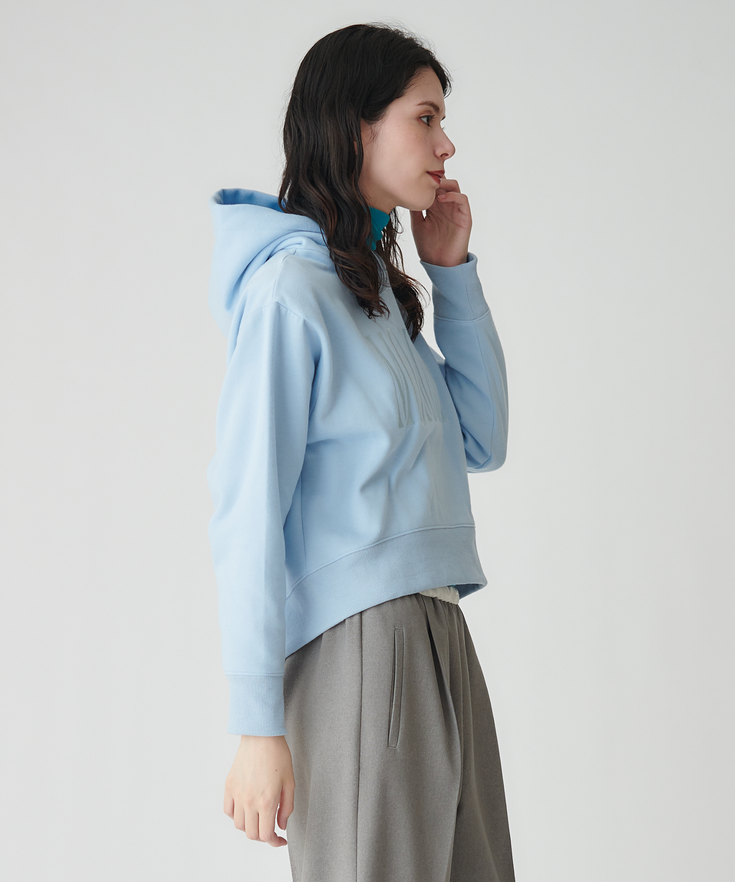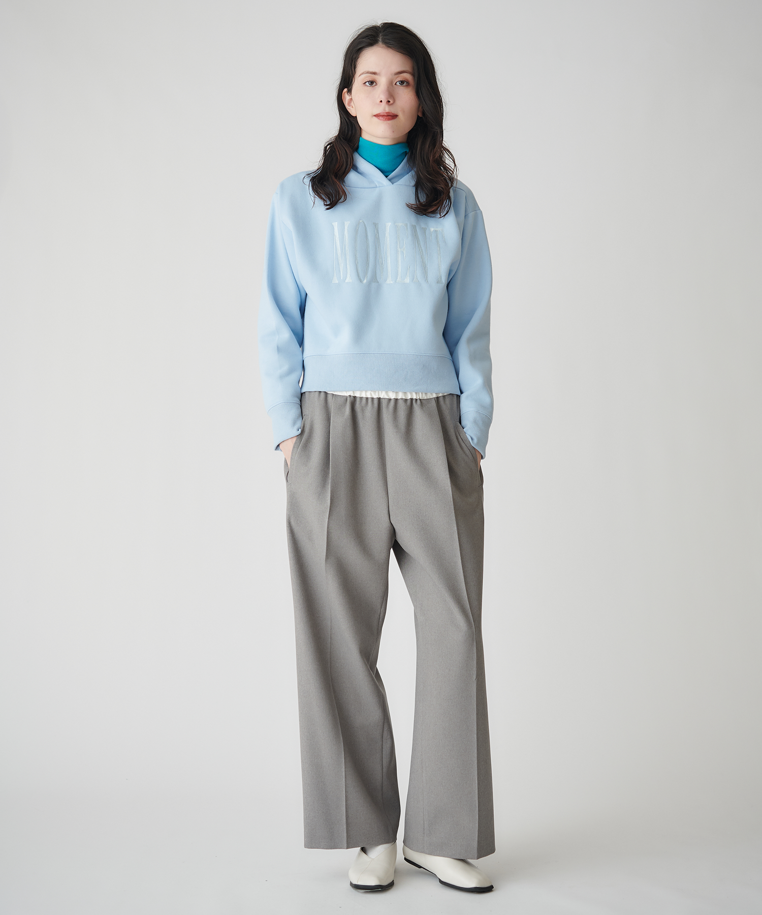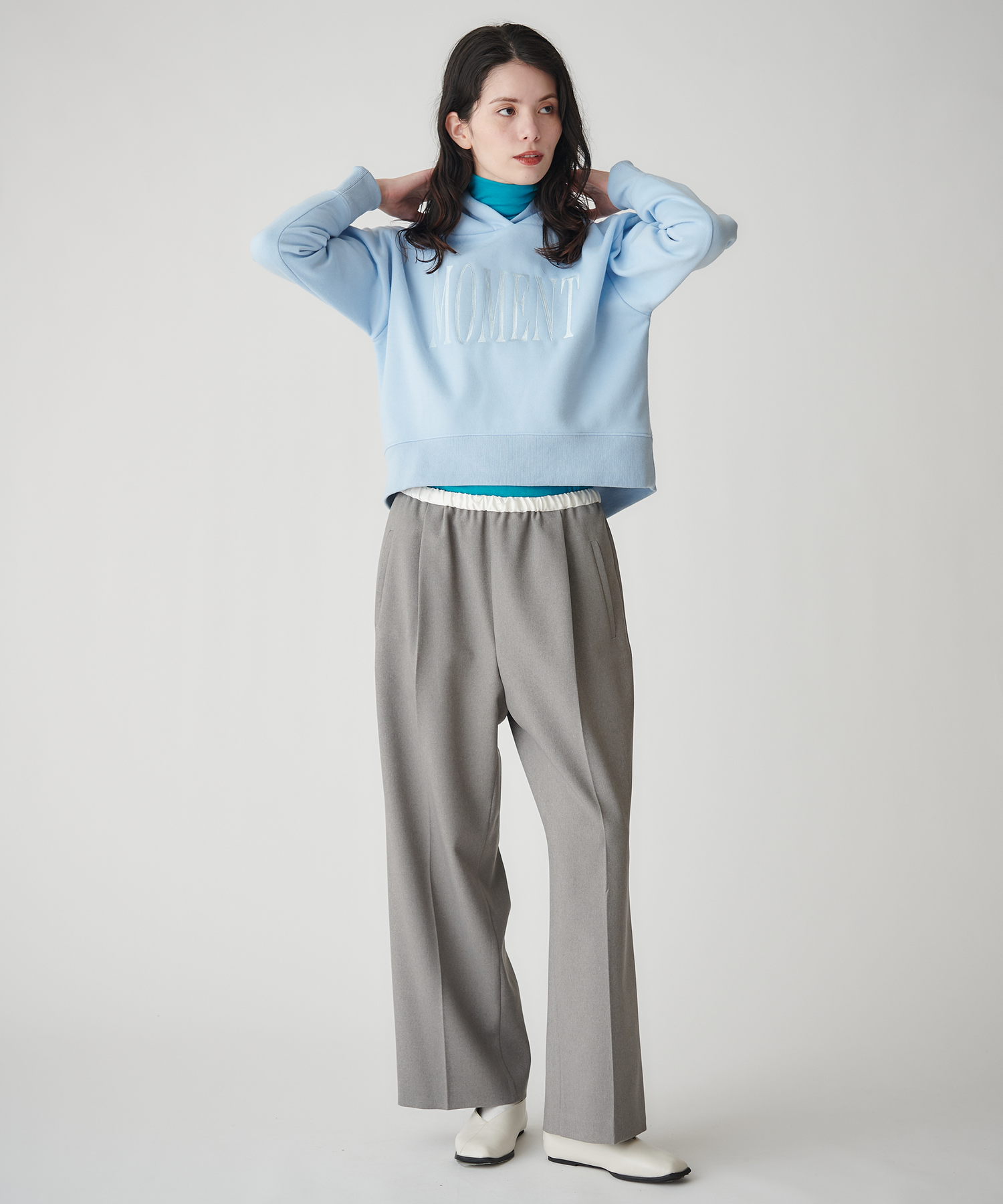 柔らかく肌触りが良いため、寒い季節でも快適な着心地を叶えます。刺繍ロゴは同色系で仕上げることで派手にならず、大人らしい落ち着いた印象に。