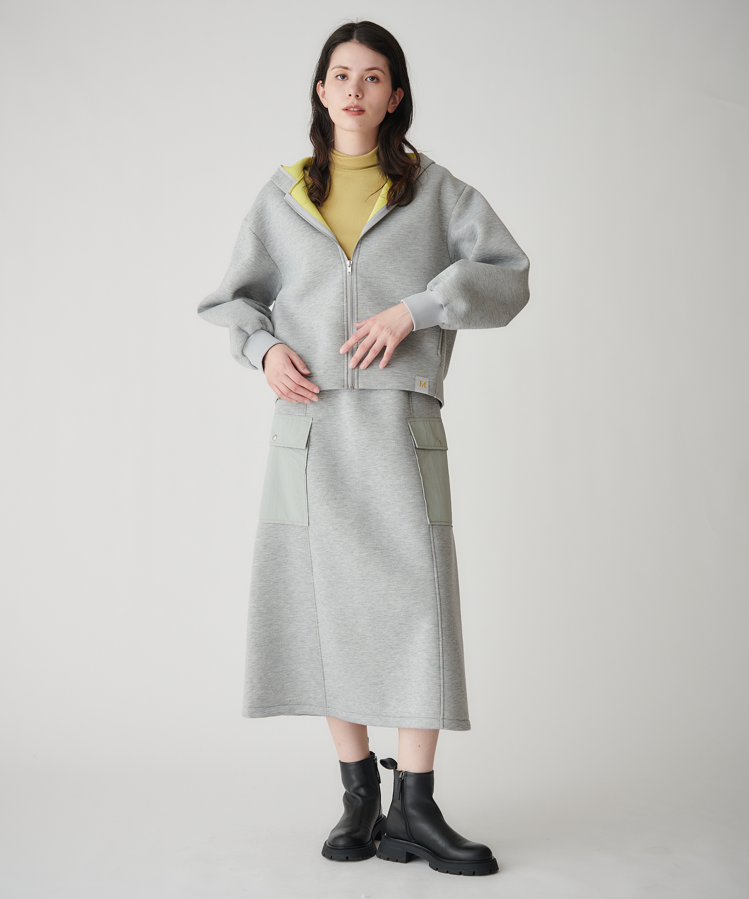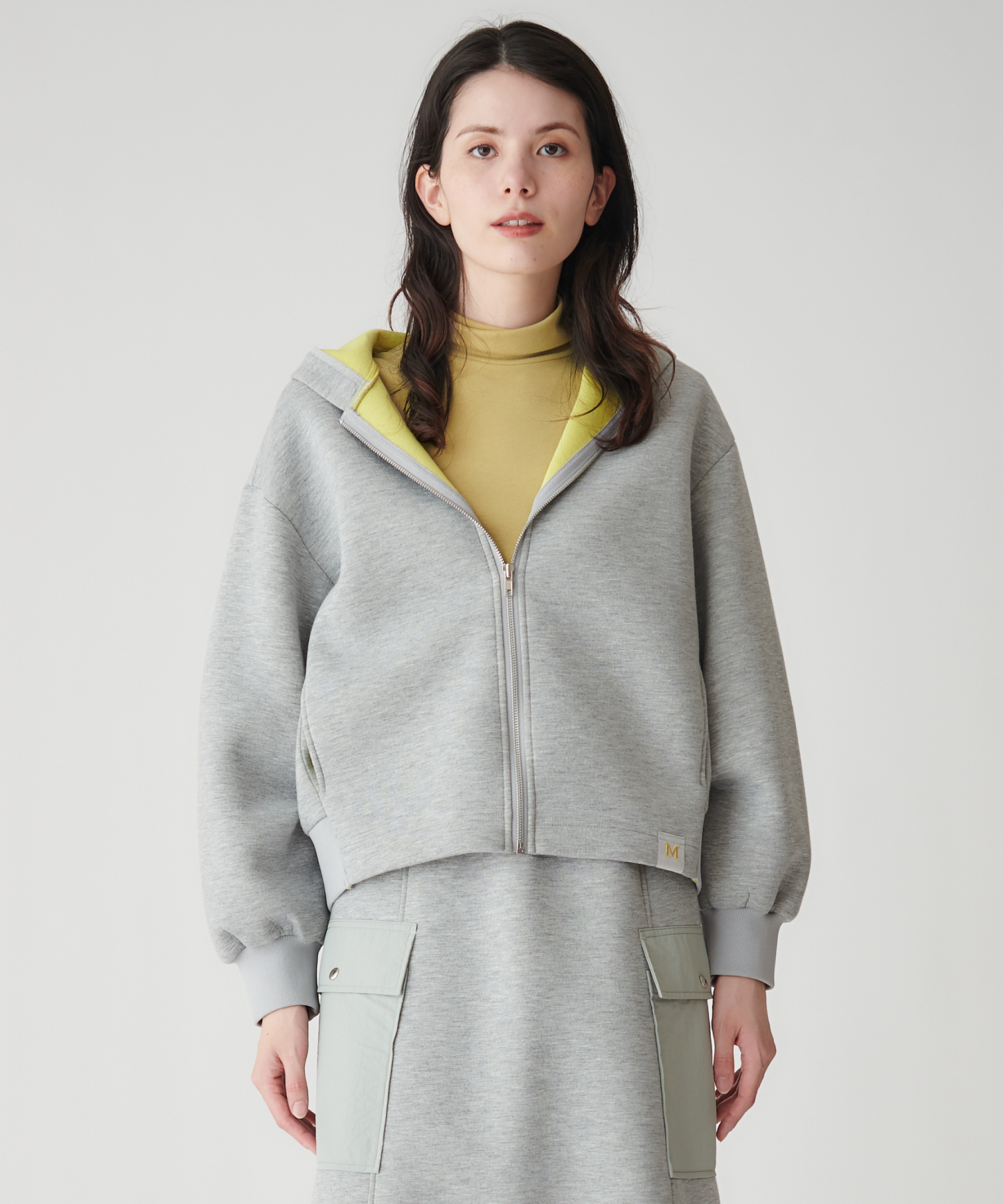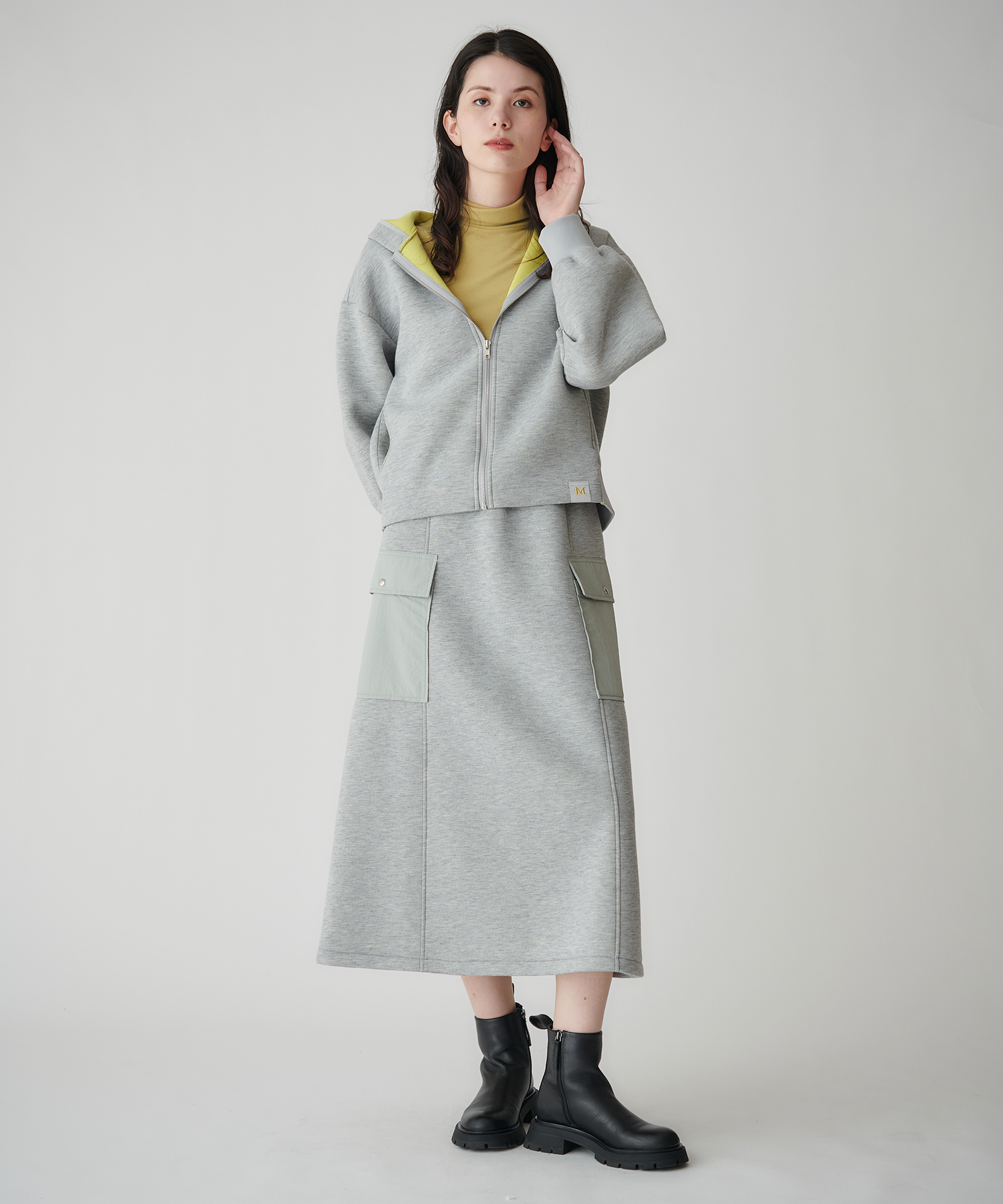 しっかりとした肉感でシルエットがきれいに出るのも魅力。裏配色がちらりと見えたときにコーディネイトをさりげなく格上げしてくれます。裾に施したM刺繍テープがブランドらしいアクセントに。