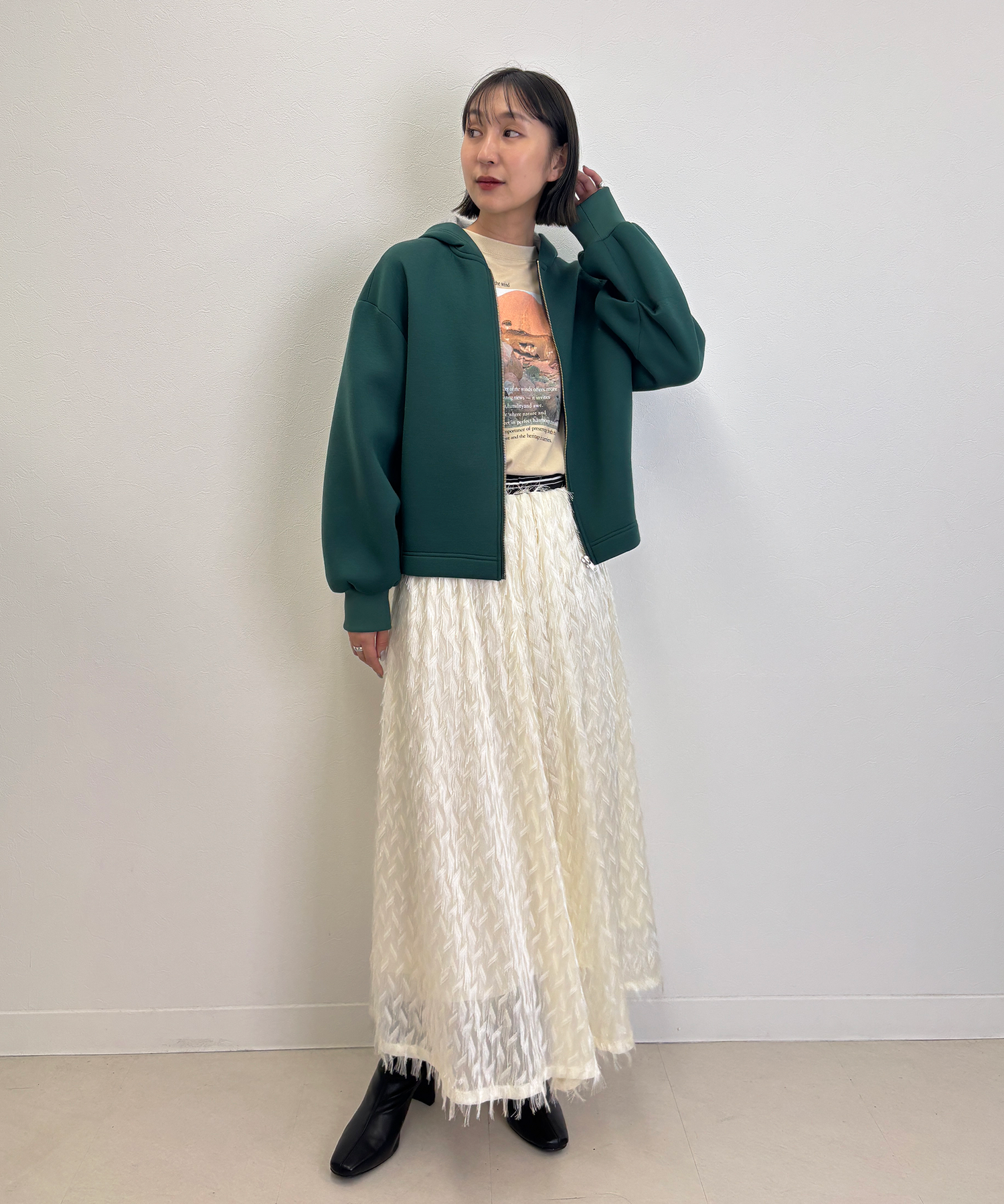 しっかりとした肉厚感がありながらも軽やかで柔らかい着心地が特徴です。表裏で配色を効かせたデザインは、着用時だけでなくハンガーにかけても映える仕様に。