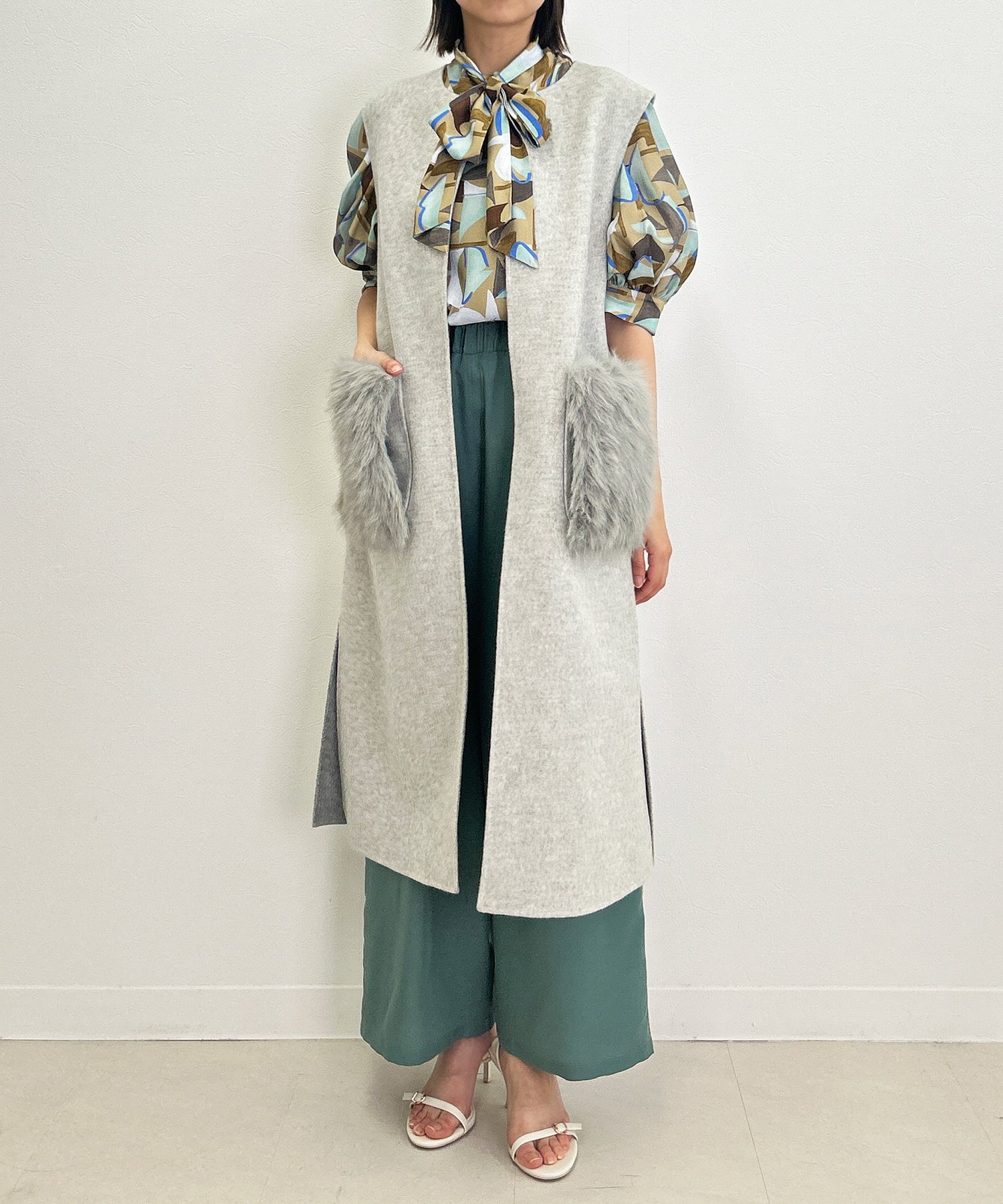 ファーポケットロングジレ