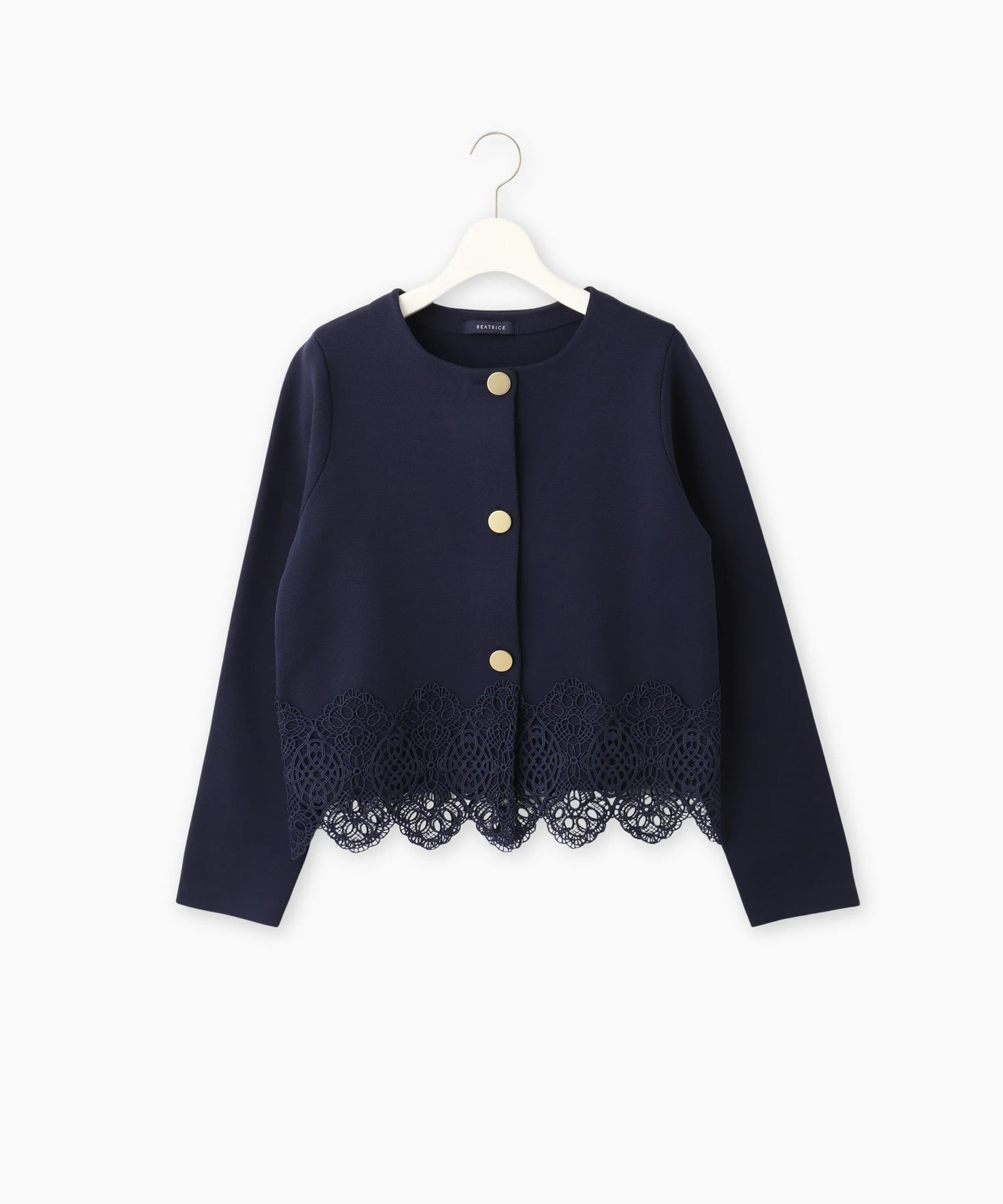 軽さとお手入れのしやすさを兼ね備えたポリエステル糸とオリジナルケミカルレースを施したニットシリーズ