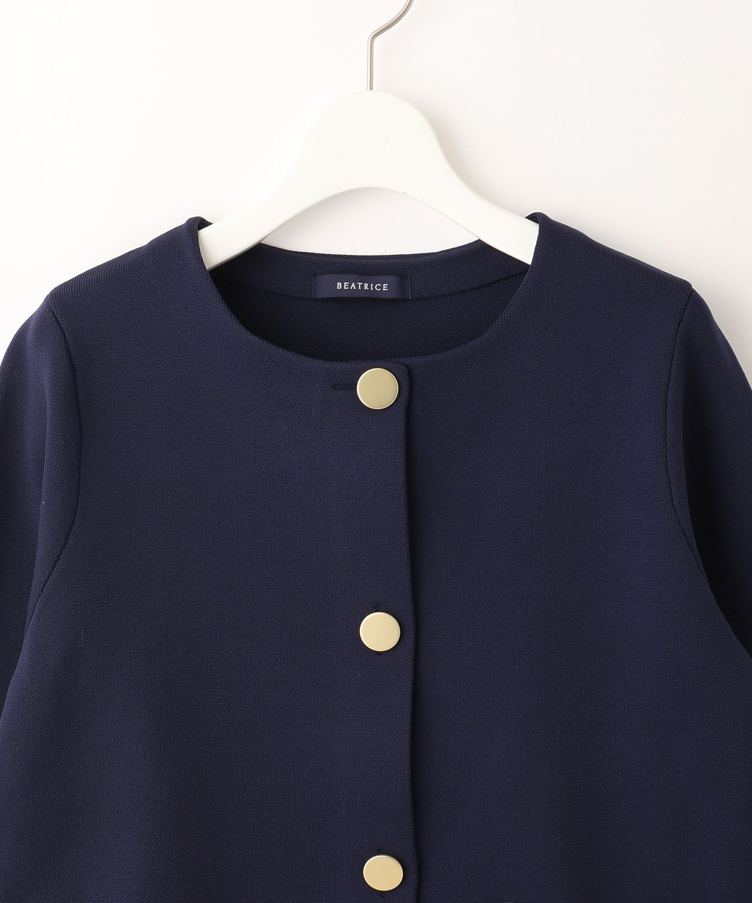 無地ながらジャガード編みで表情を持たせた、程よくきれいめな仕上がりの一枚。シンプルながらも上品な印象を与えます。