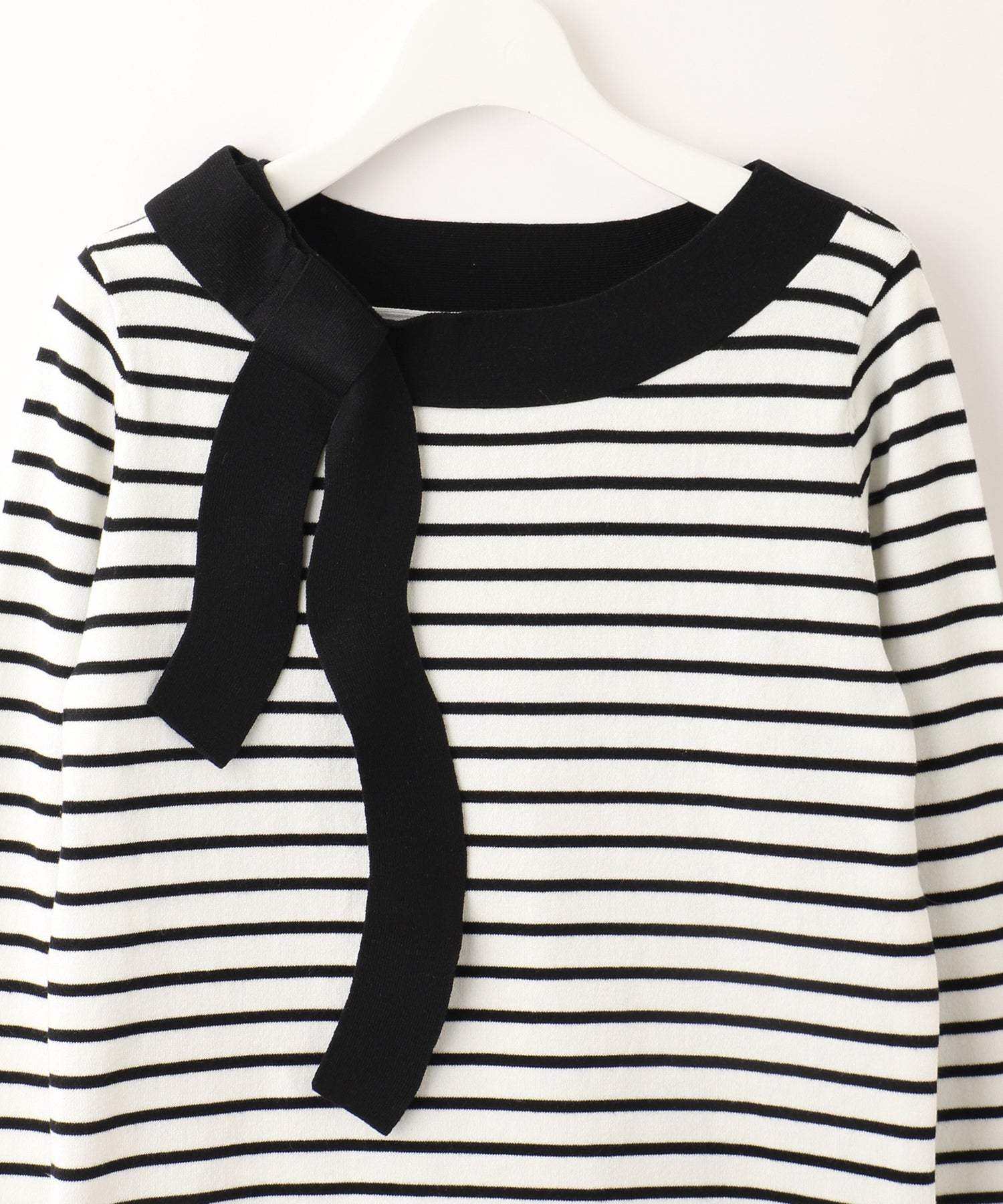 トレンド感のあるリボンディテールをあしらったハイゲージニット。