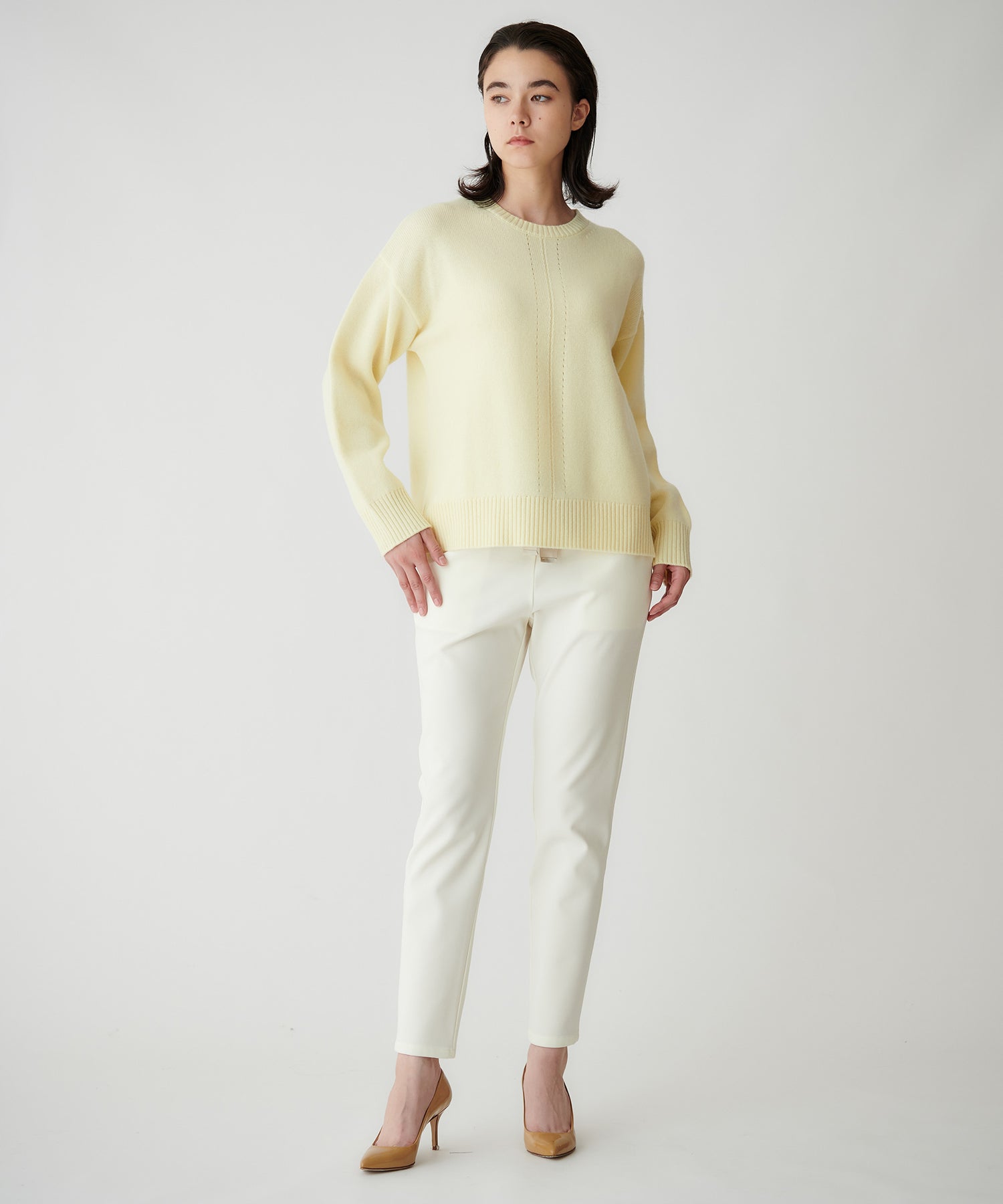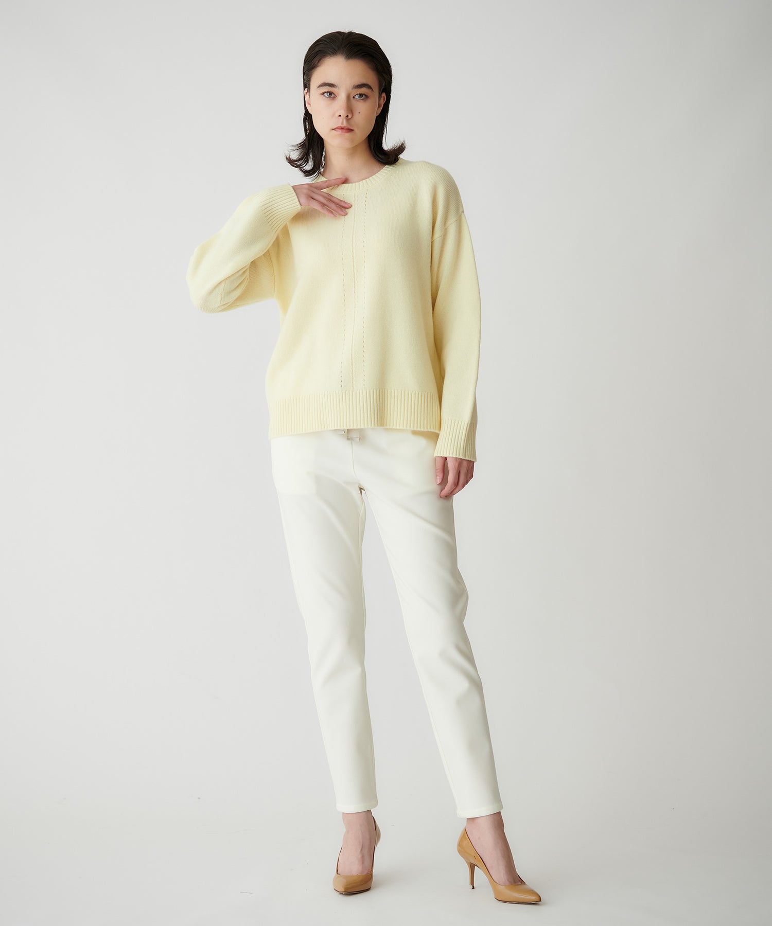 センターの飾り編みが引き立つよう、シンプルなボトムスと合わせるのがおすすめ。