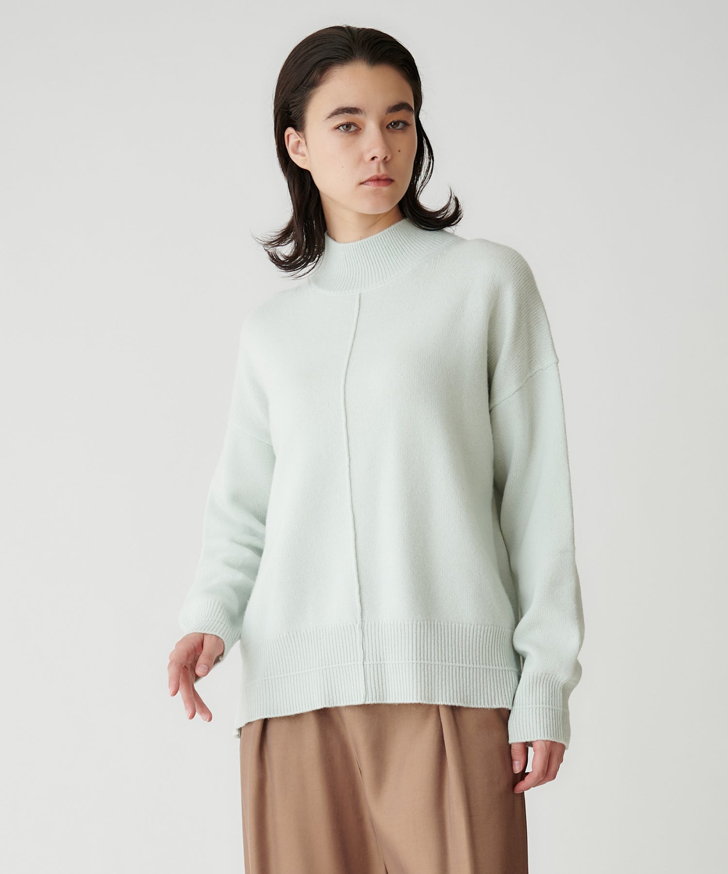 ゆるっとしたシルエットなので、細身のパンツやタイトスカートと合わせると好バランス。ハイネックを活かして、シンプルでリラックス感のある大人カジュアルに。