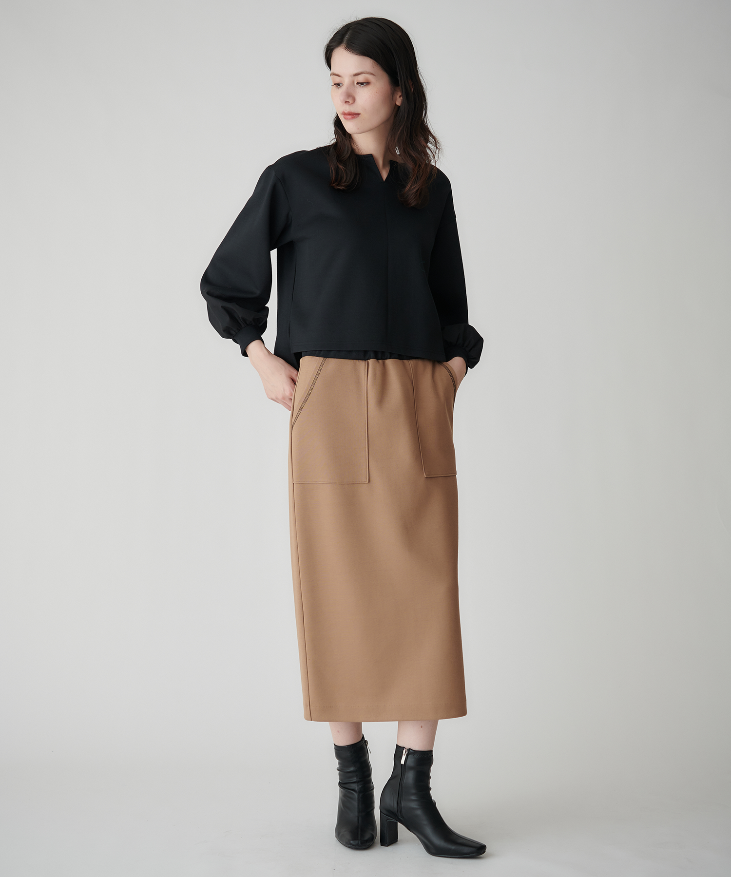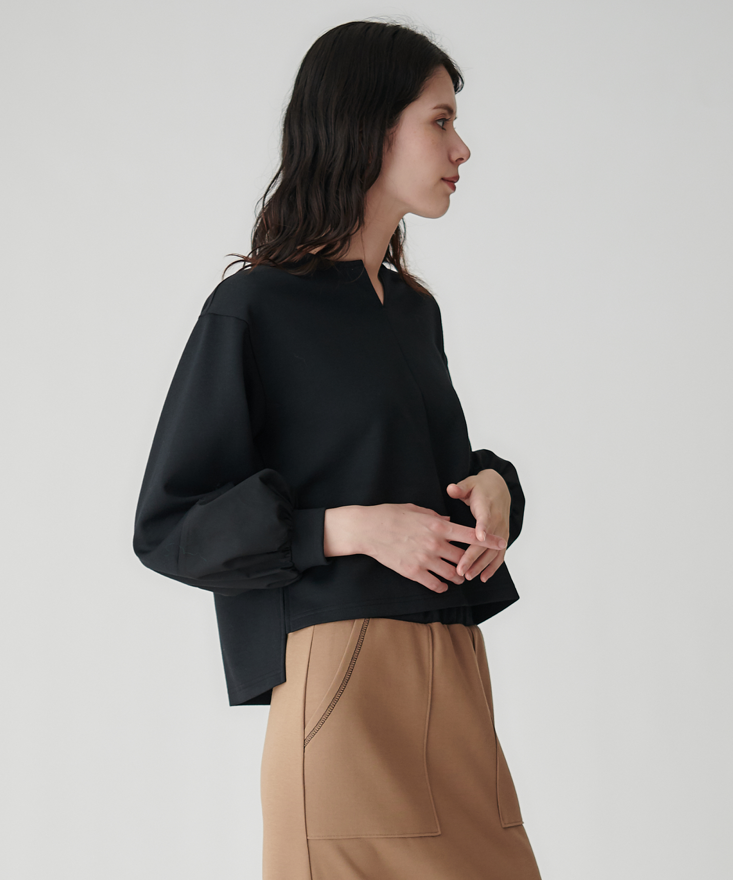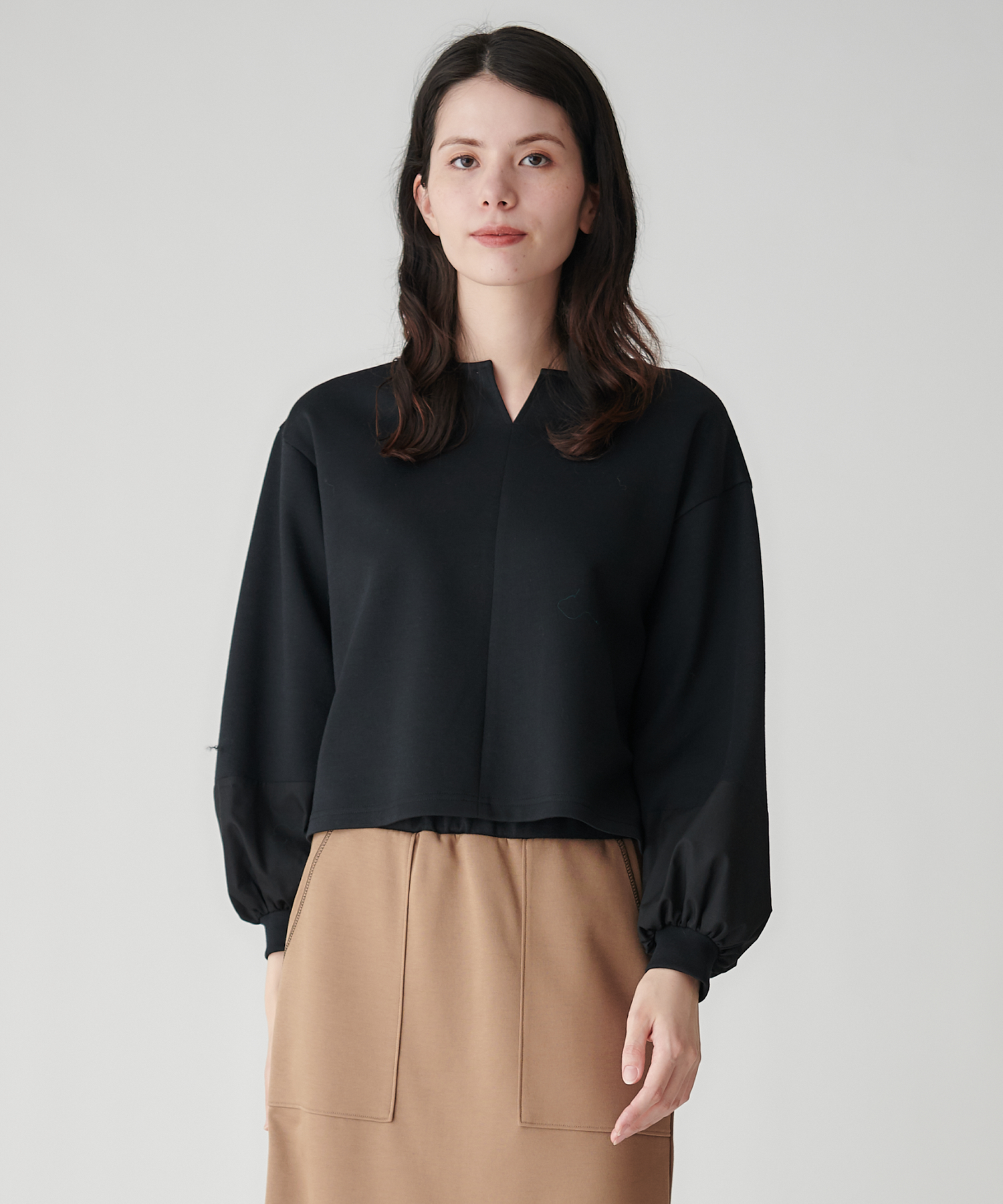 程よく抜け感のあるスキッパー衿が女性らしい抜け感を演出するトップス。