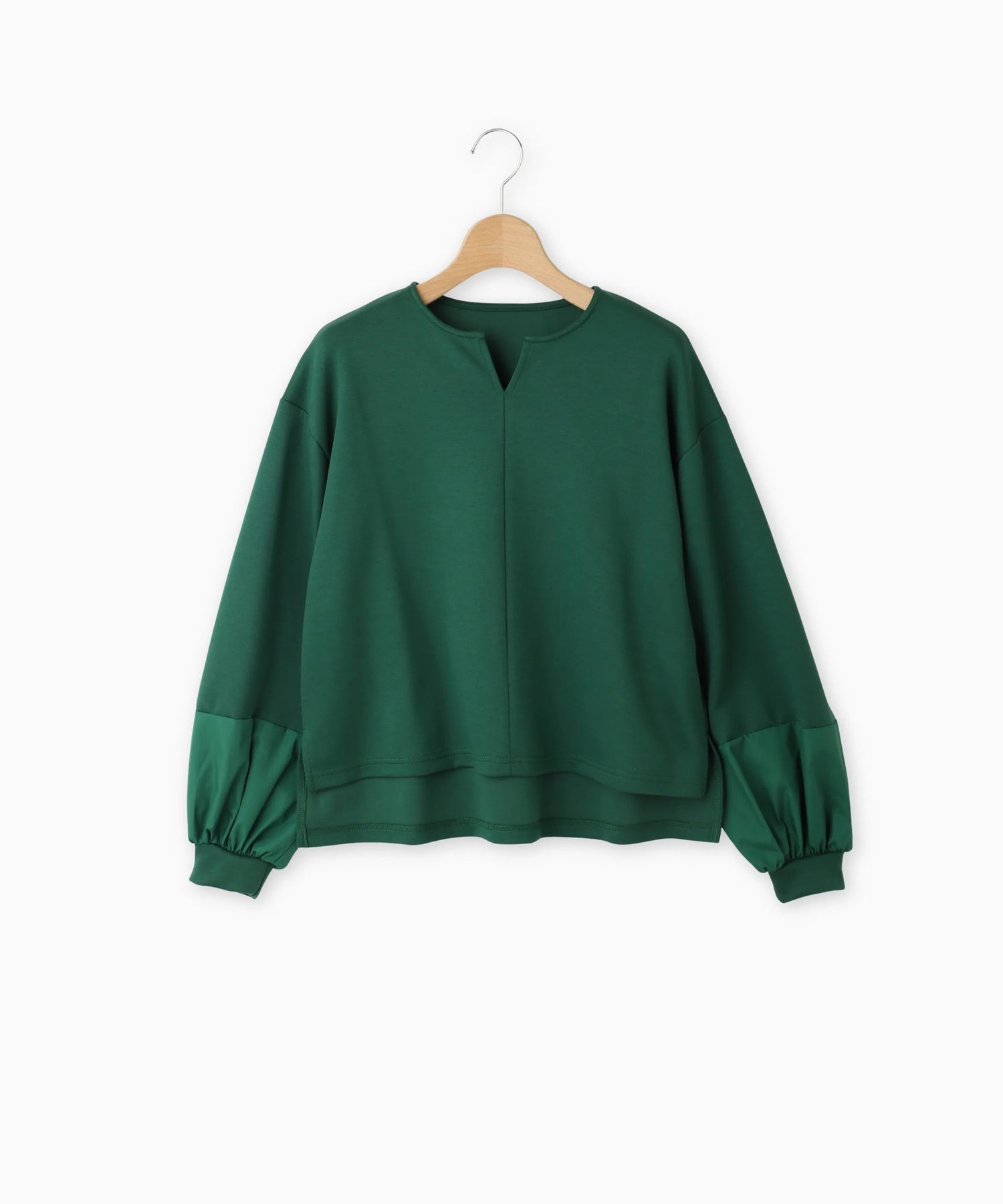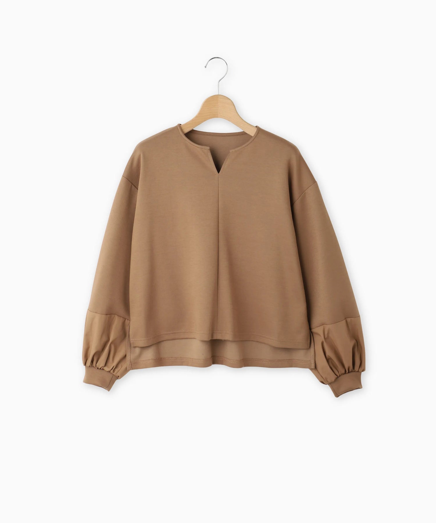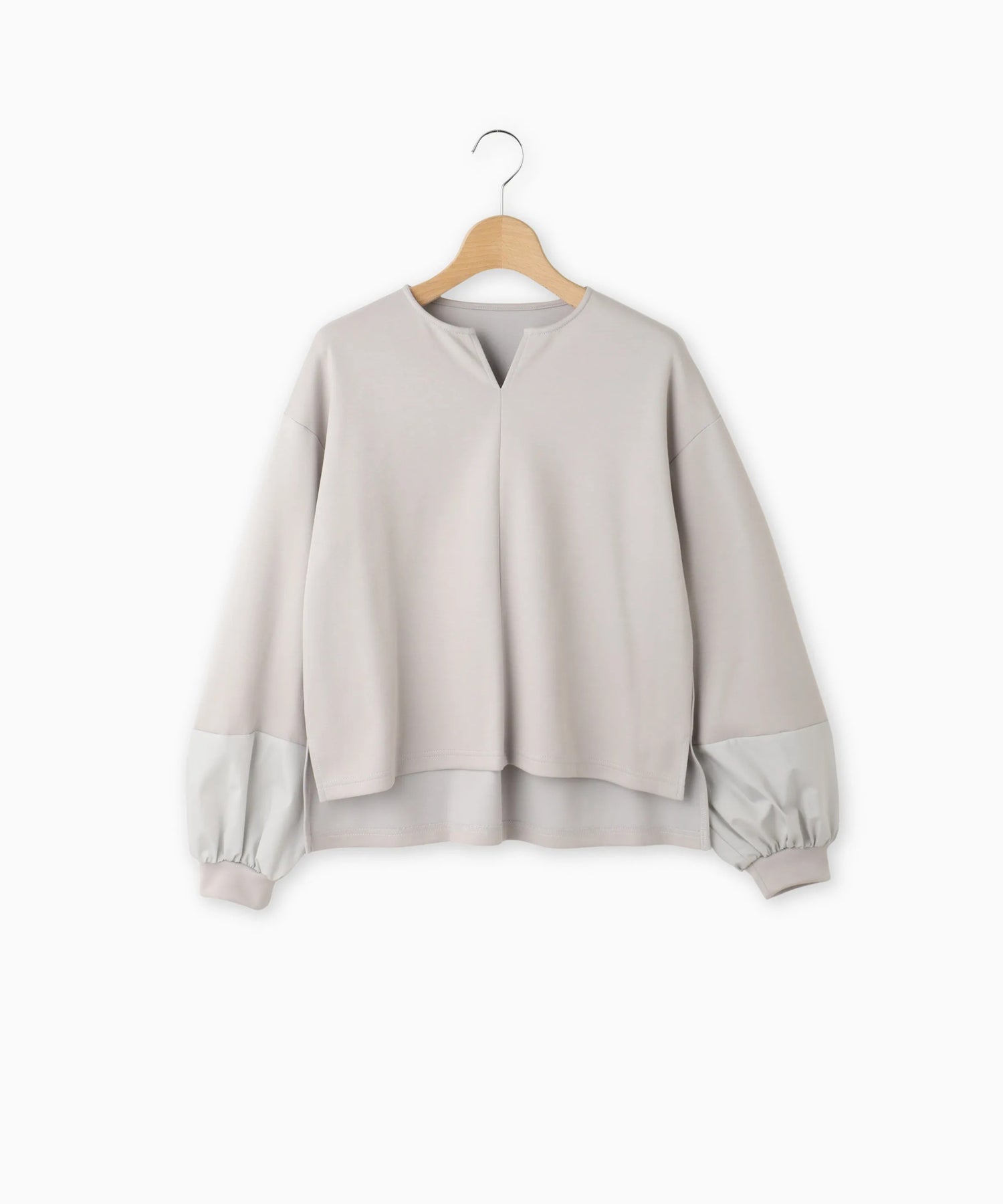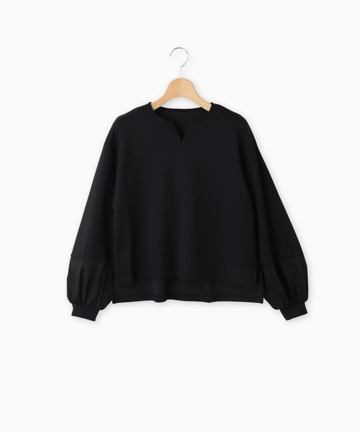 袖口には別布を使用し、さりげないアクセントをプラス。同素材のボトムと合わせてセットアップでも楽しめる、汎用性の高い一枚です。