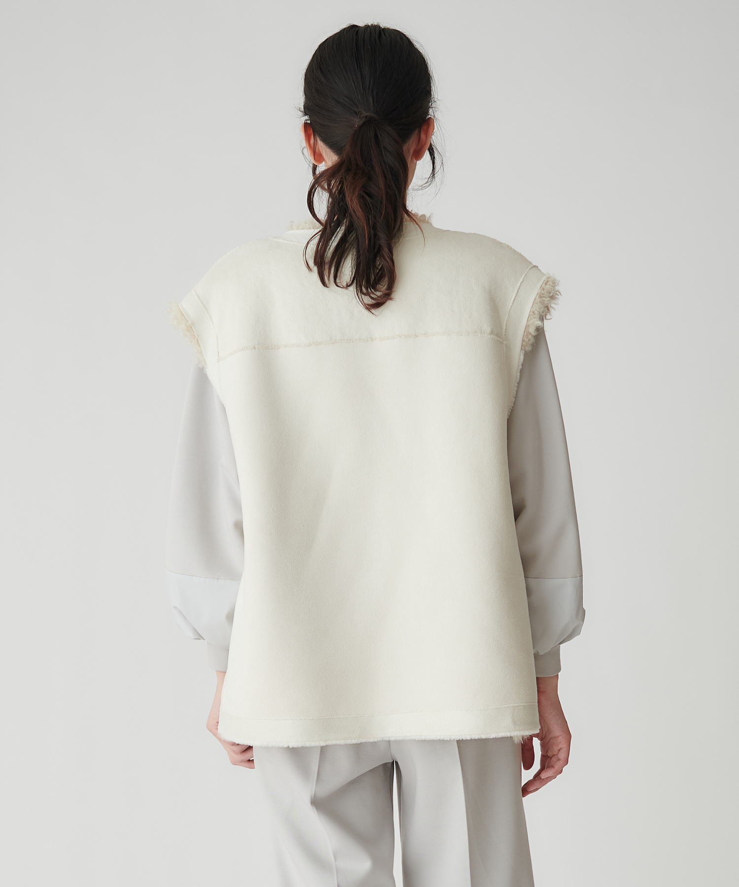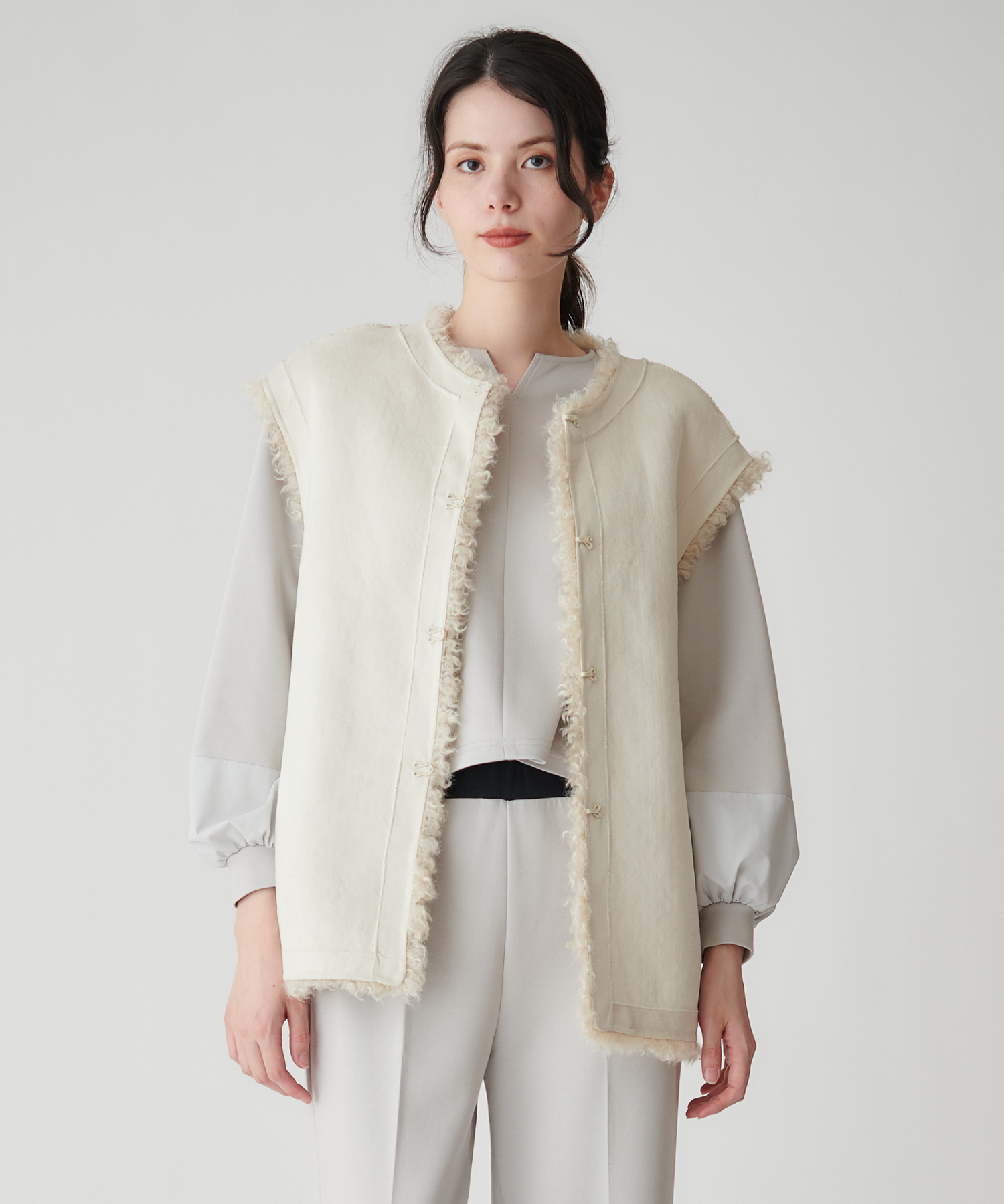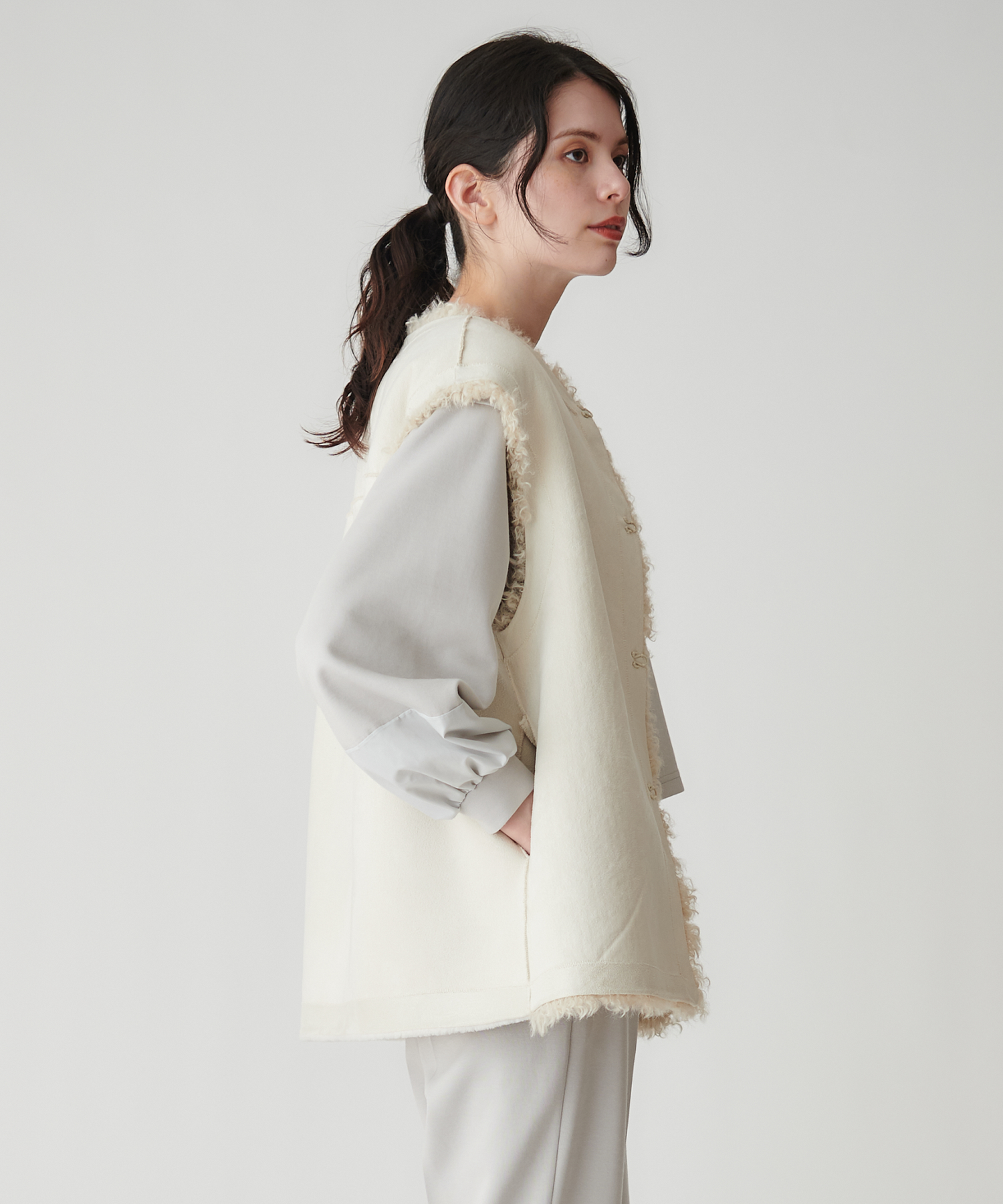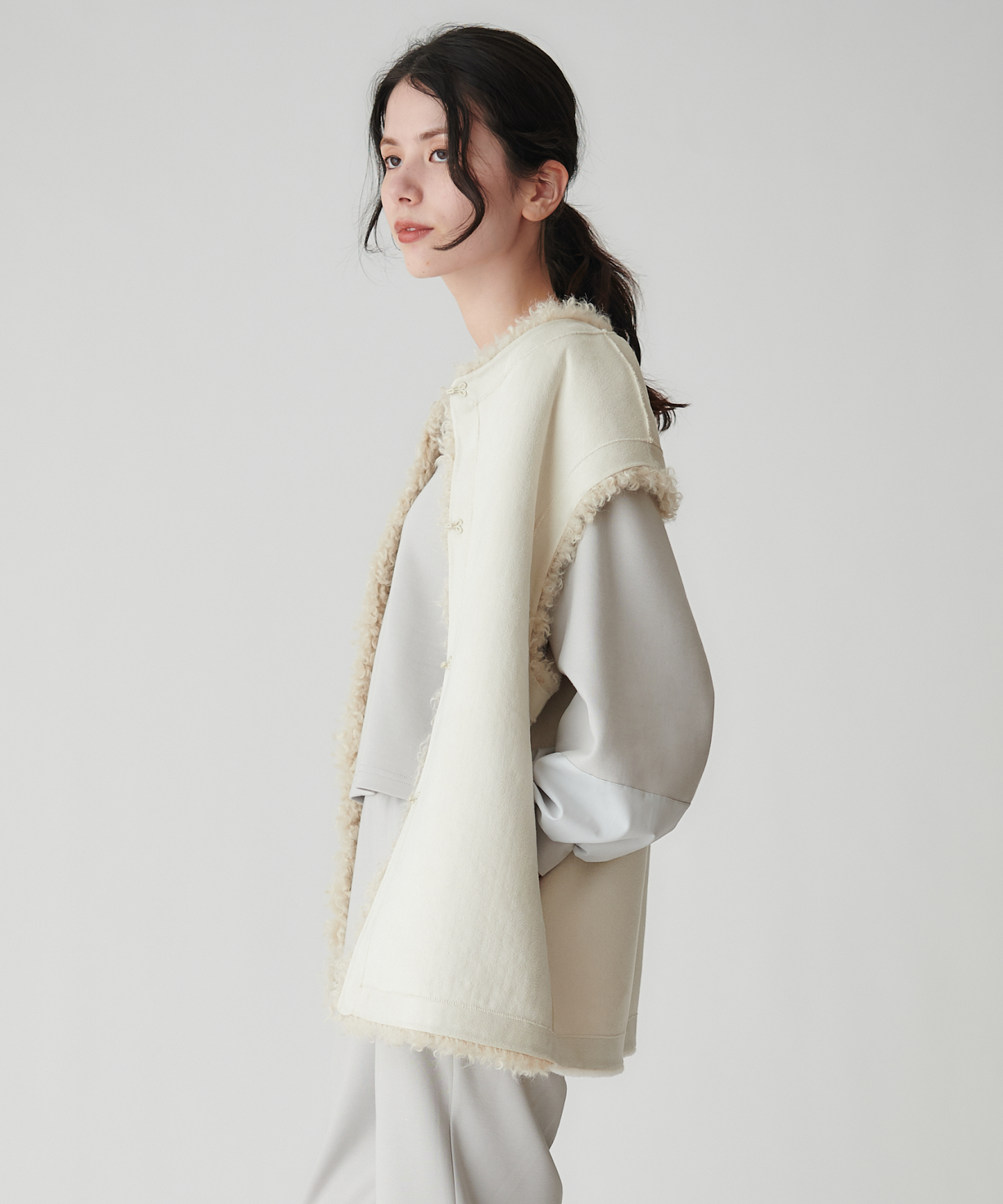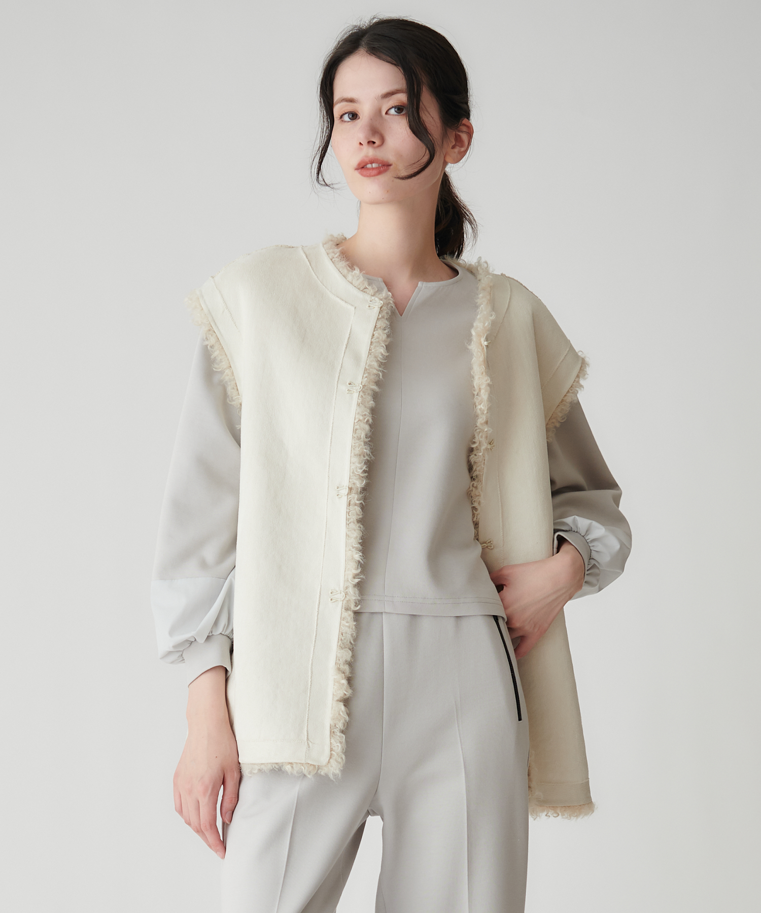 袖口には別布を使用し、さりげないアクセントをプラス。同素材のボトムと合わせてセットアップでも楽しめる、汎用性の高い一枚です。