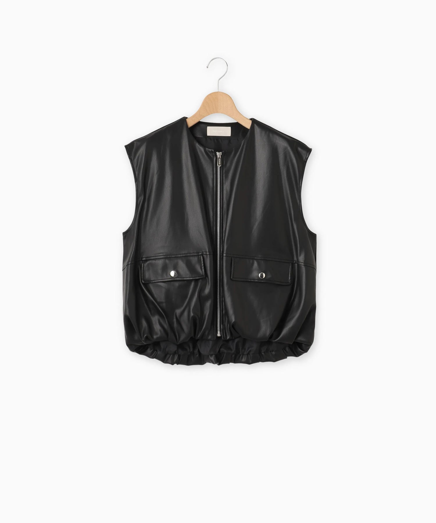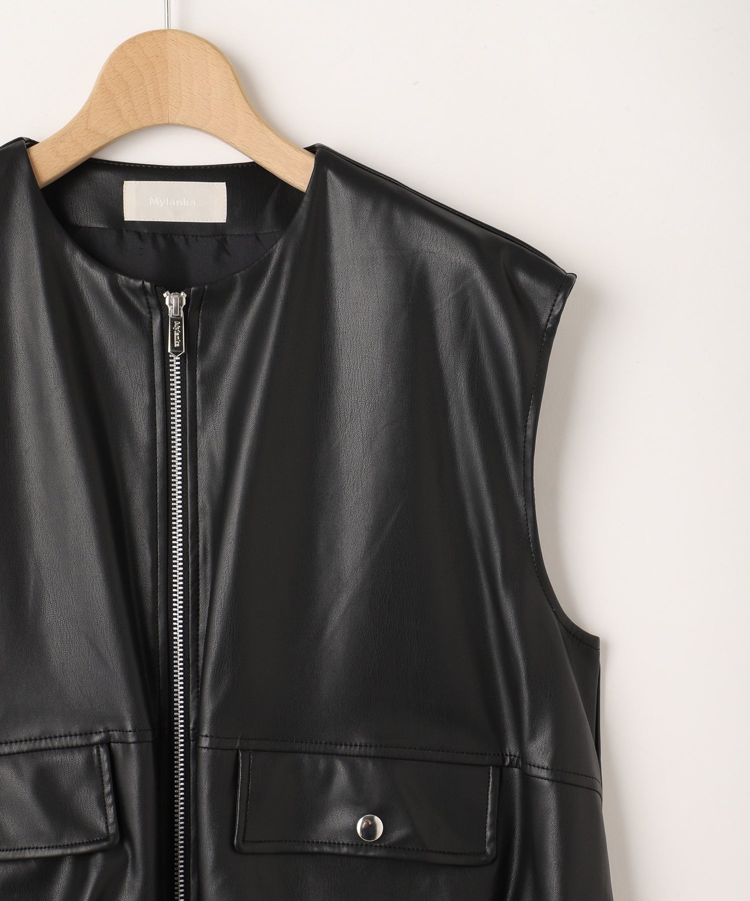 切り替えデザインを効かせたフラップポケットが、スタイリングのアクセントになるデザインベスト。
