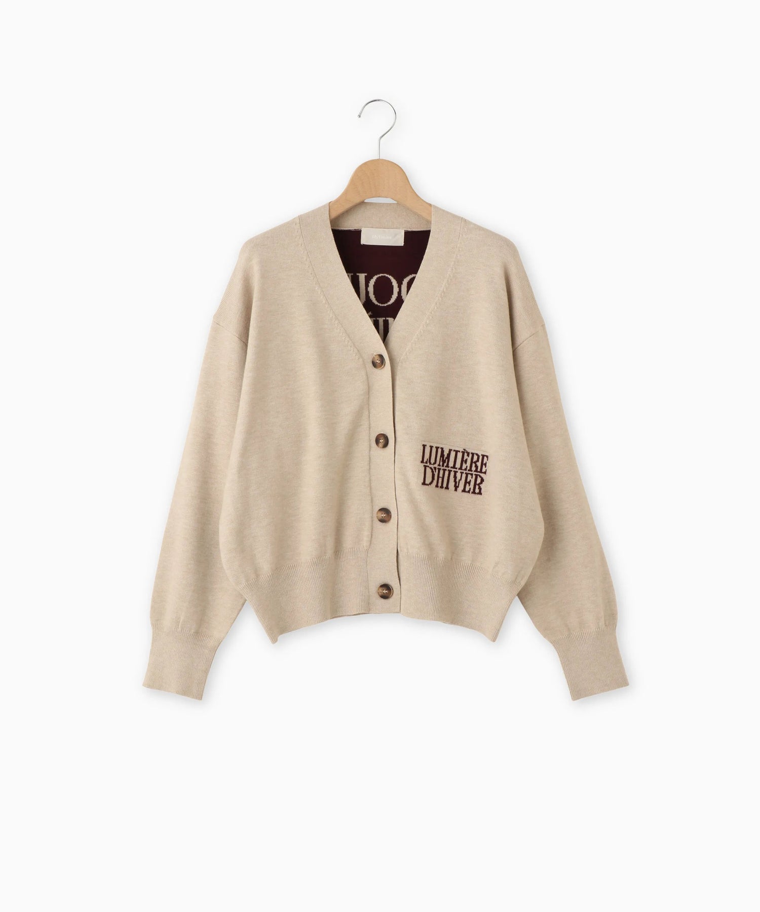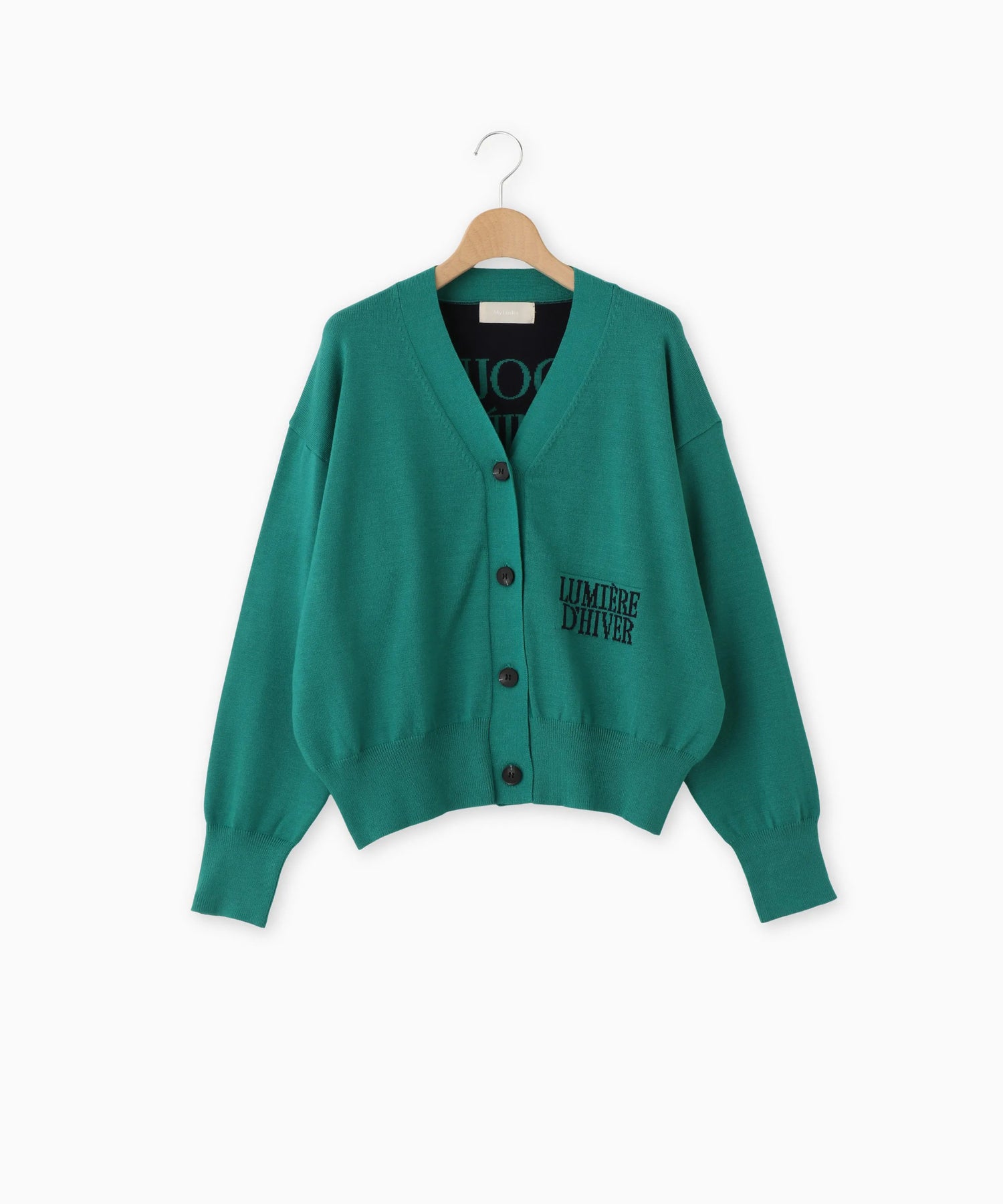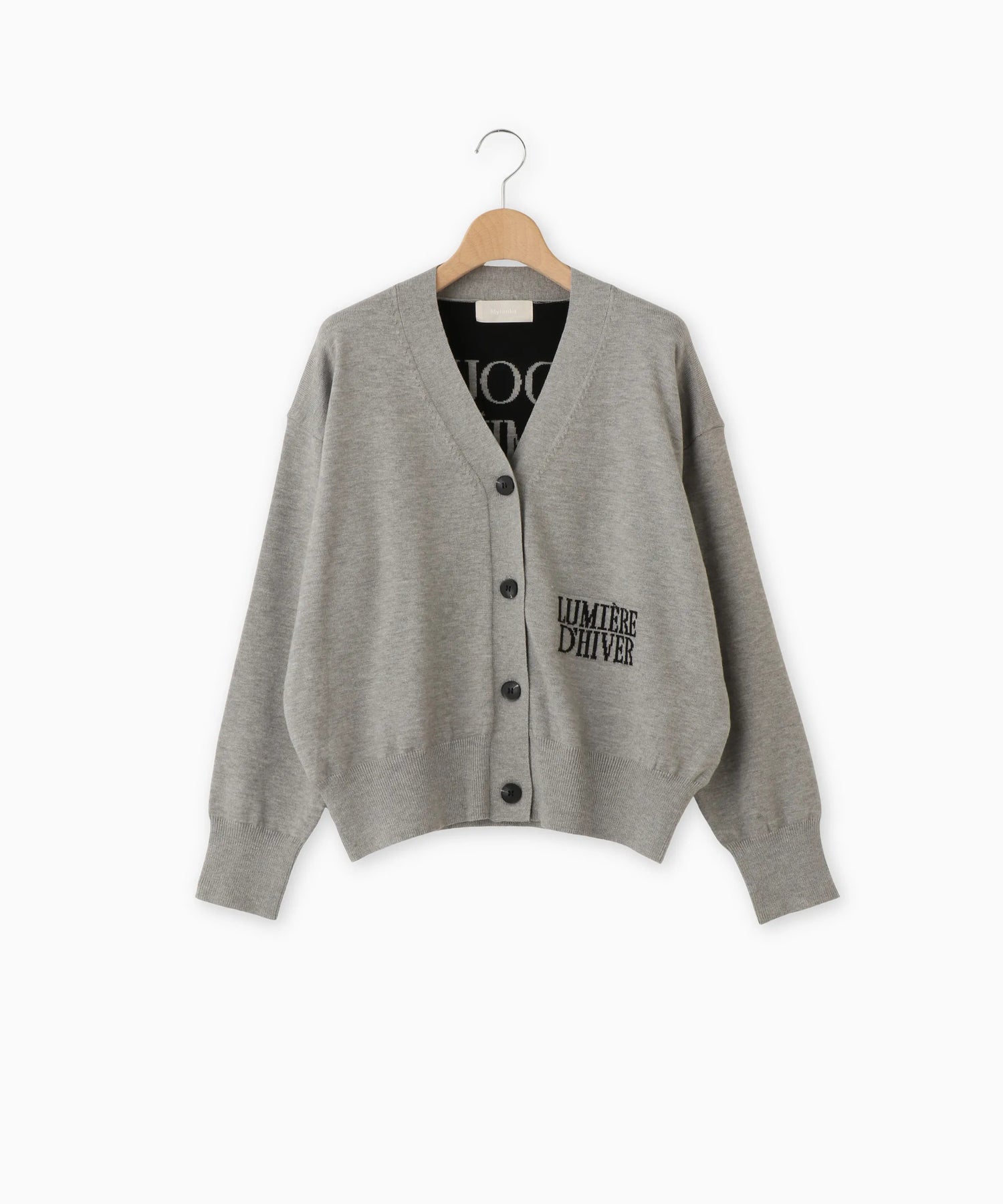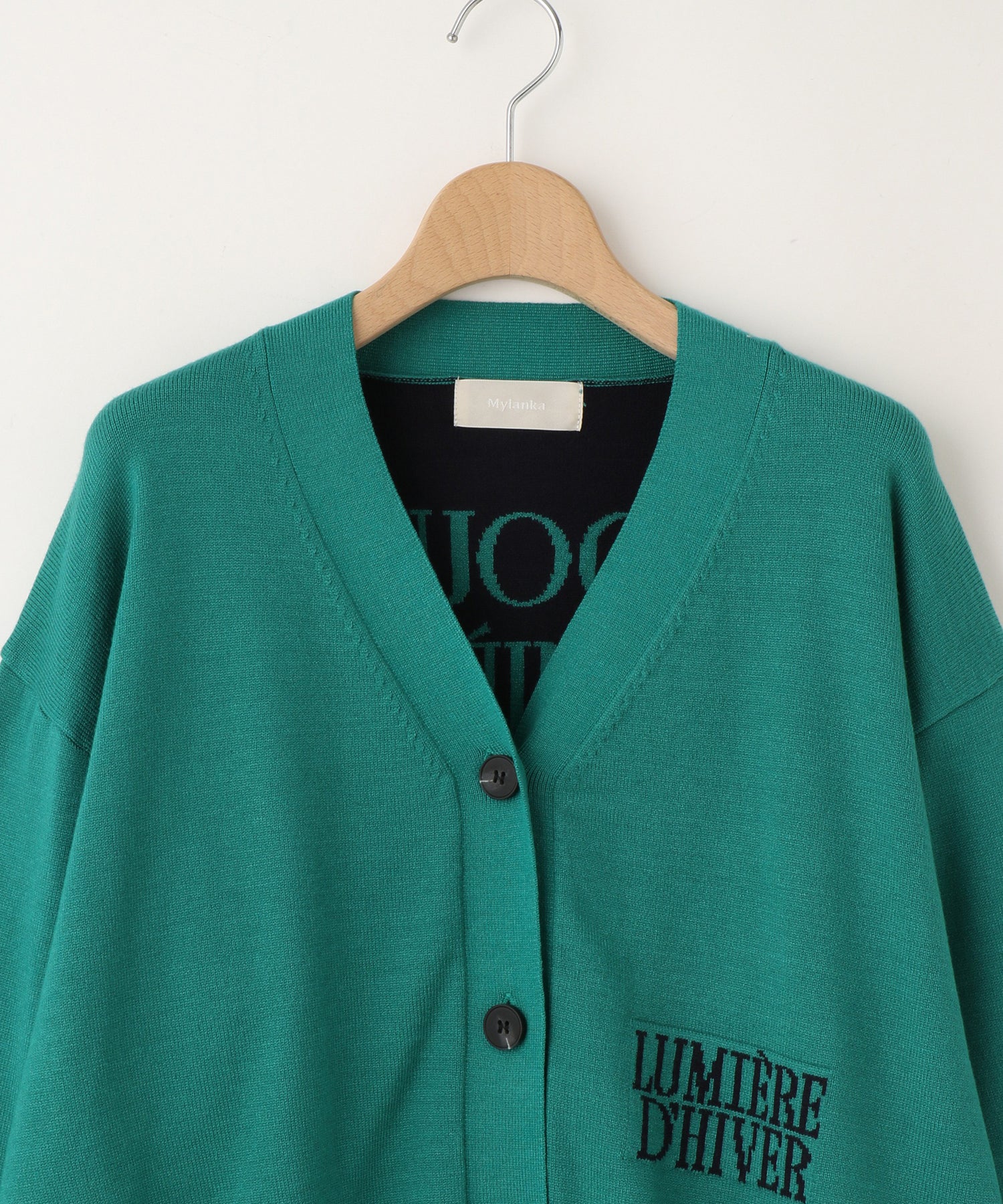 Mylanka定番のロゴジャガードカーディガン。