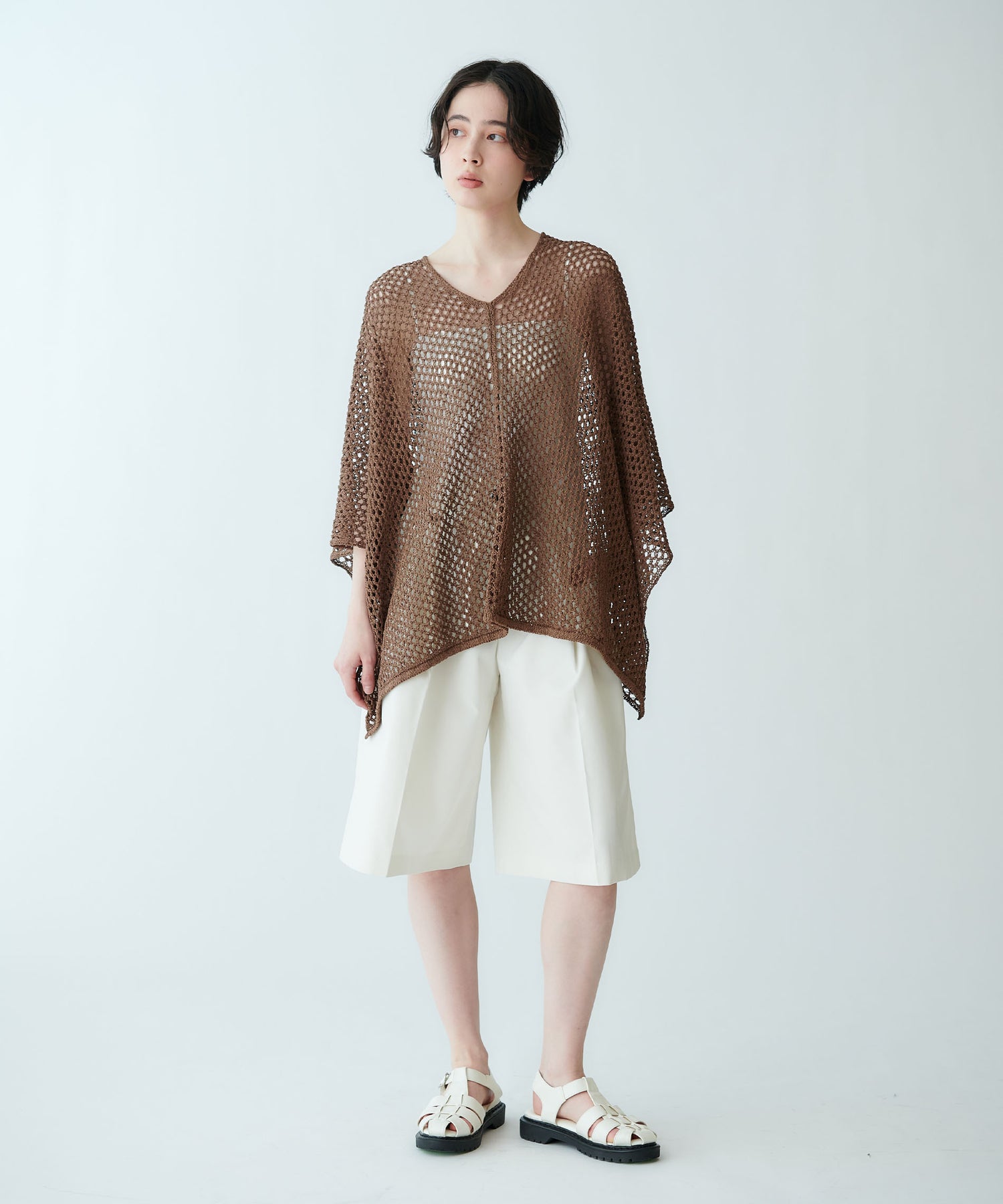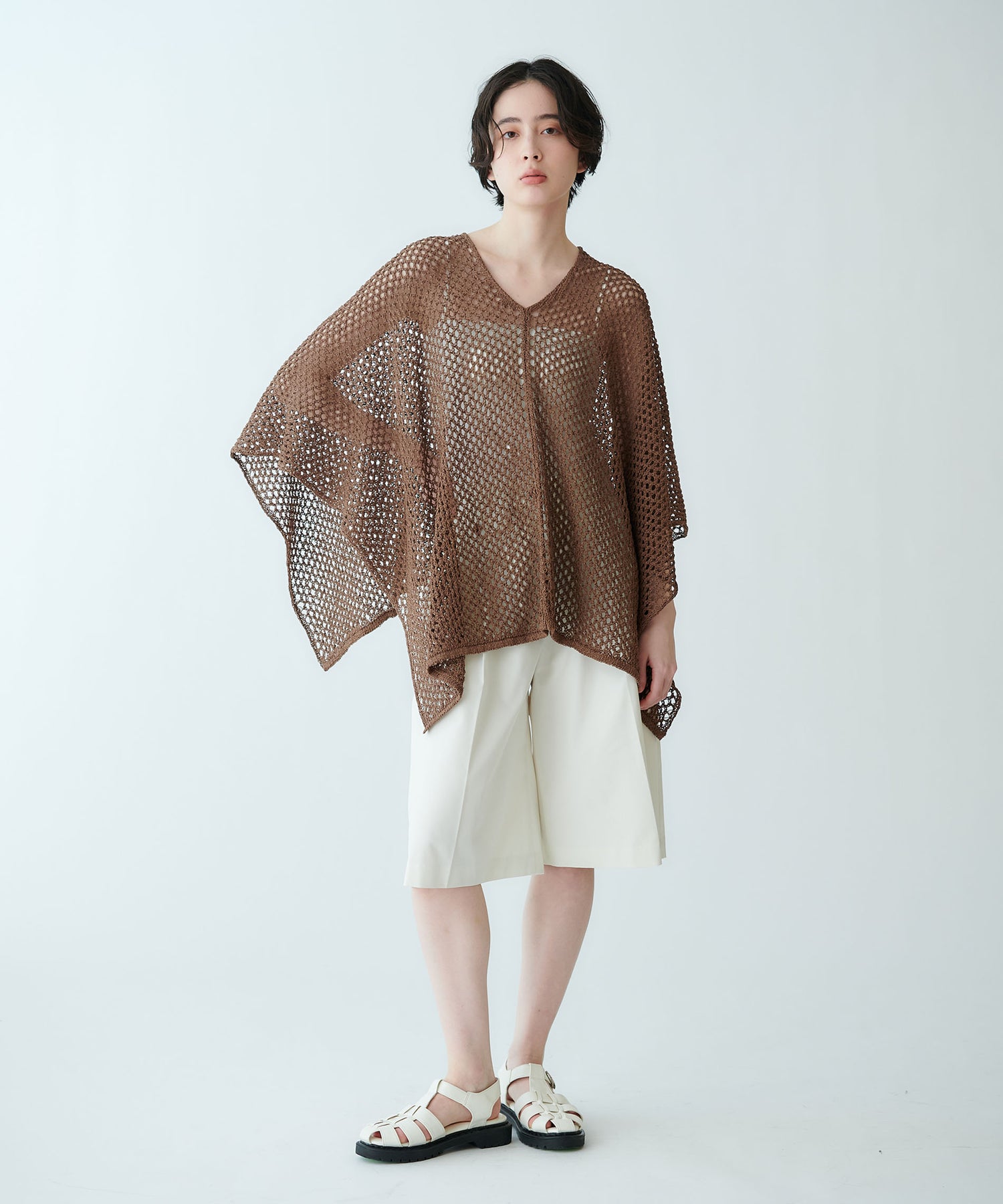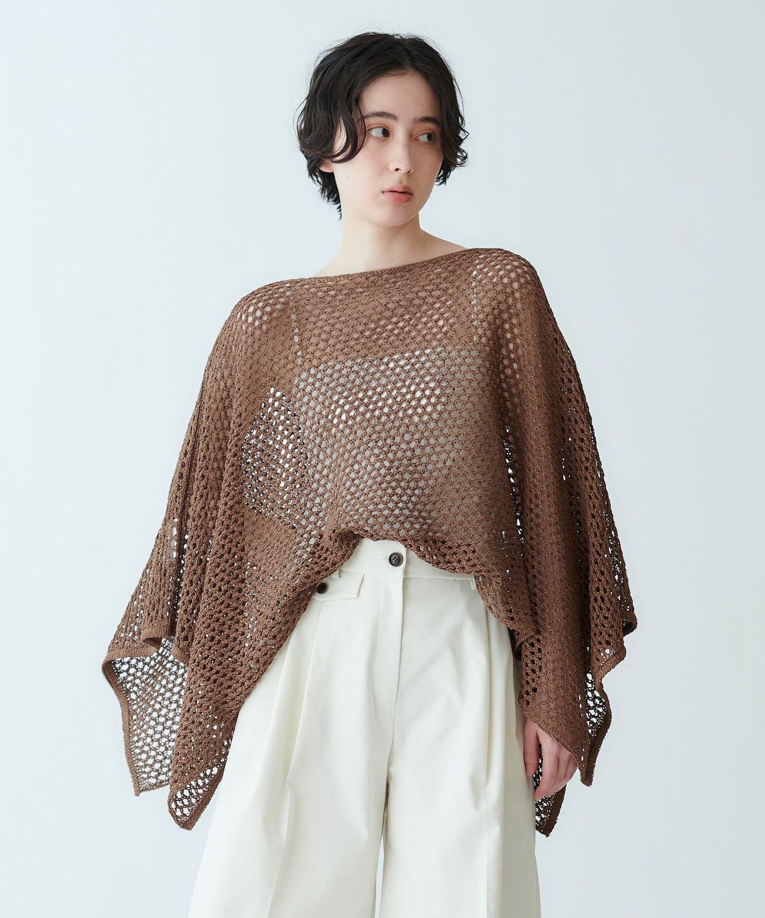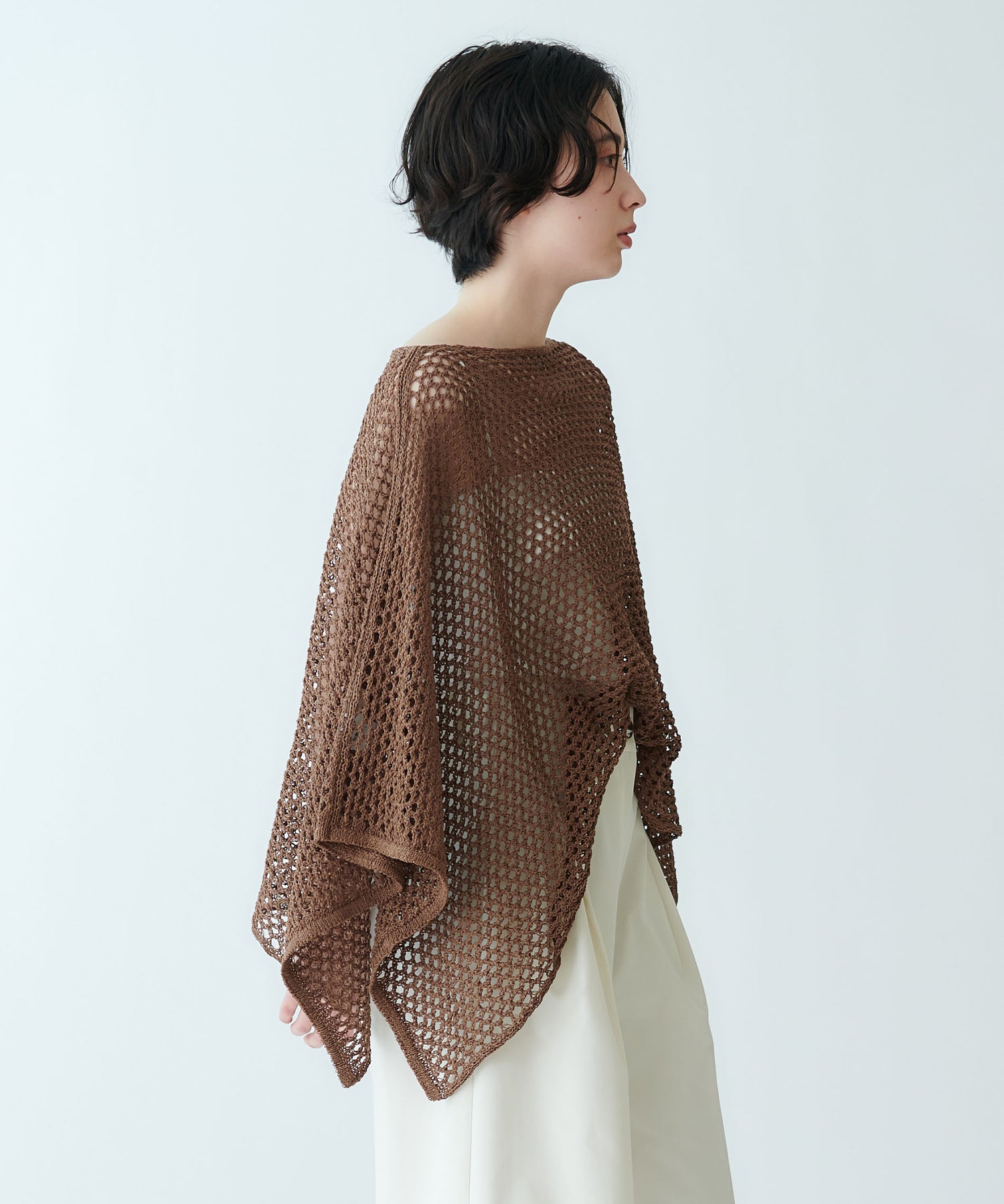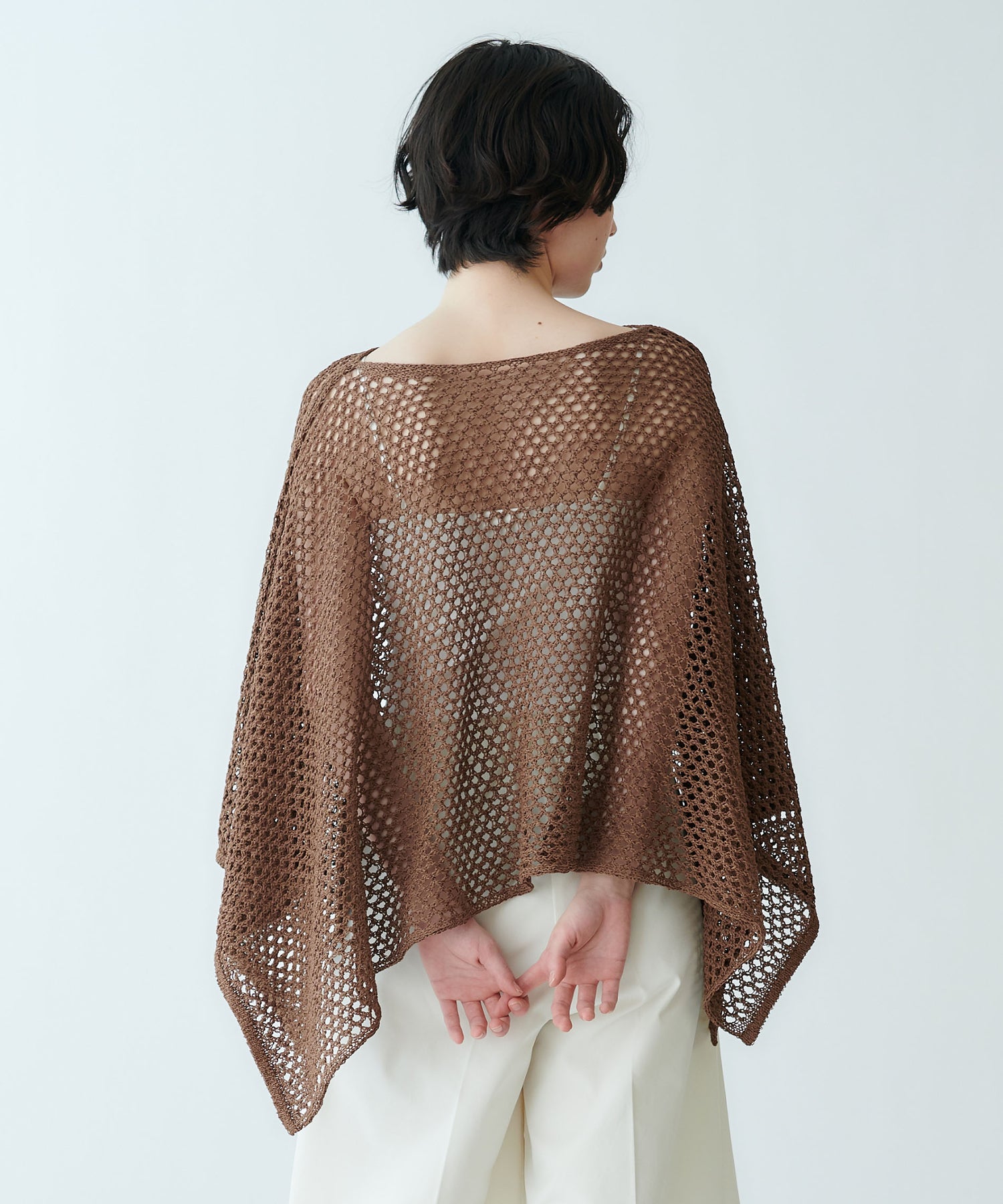 ポンチョ型メッシュニット