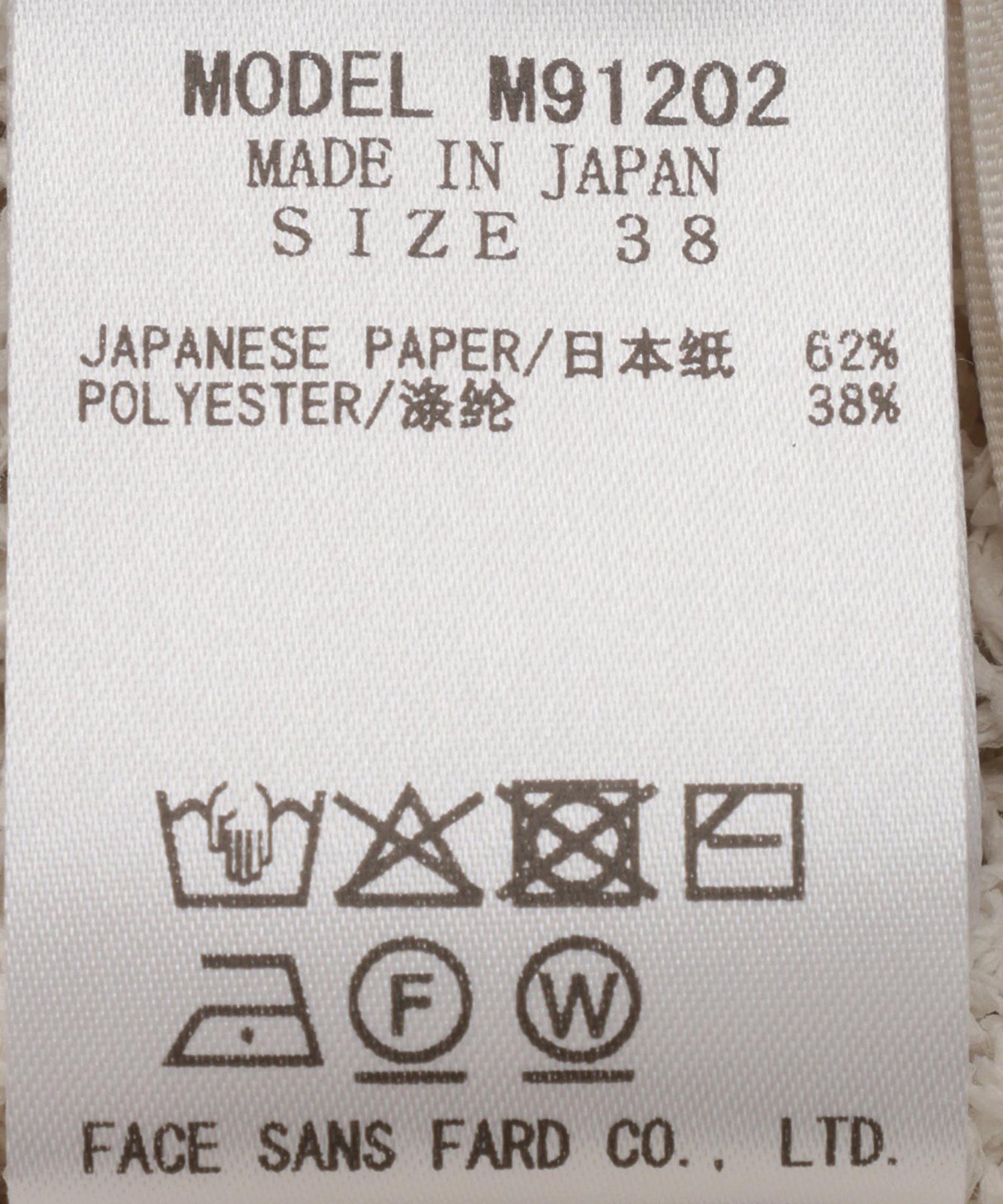 【素材】分類外繊維(和紙)62% ポリエステル38%