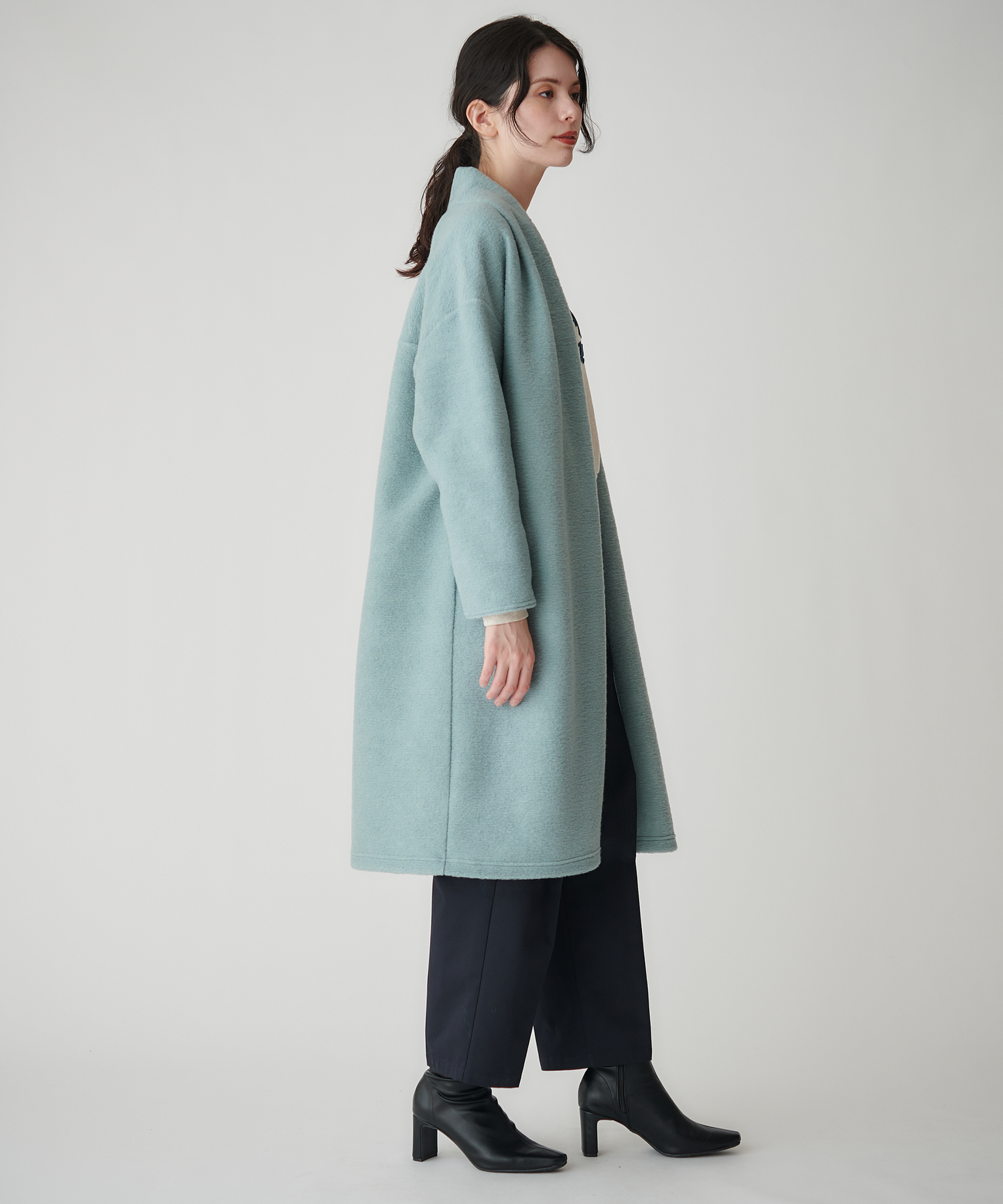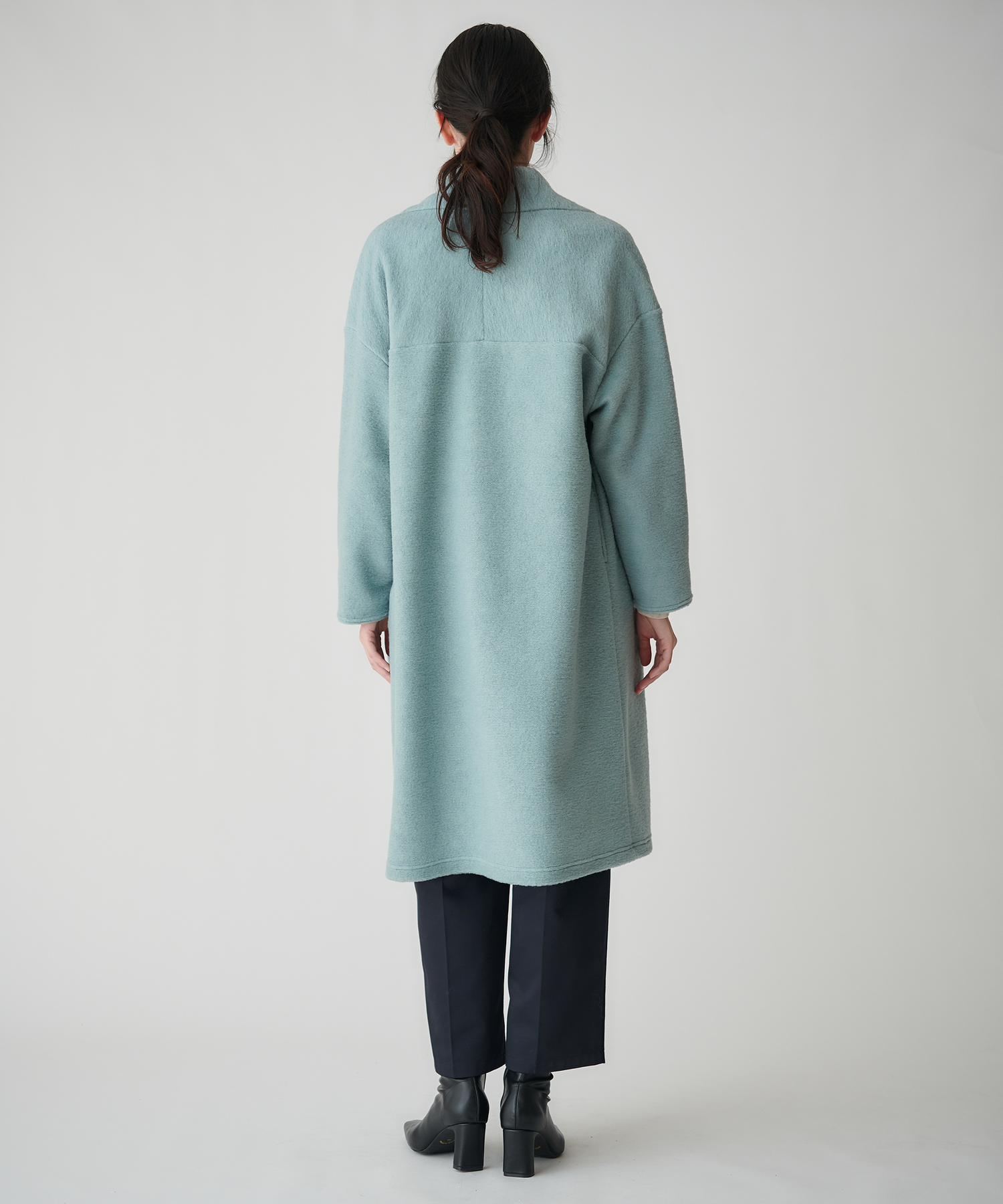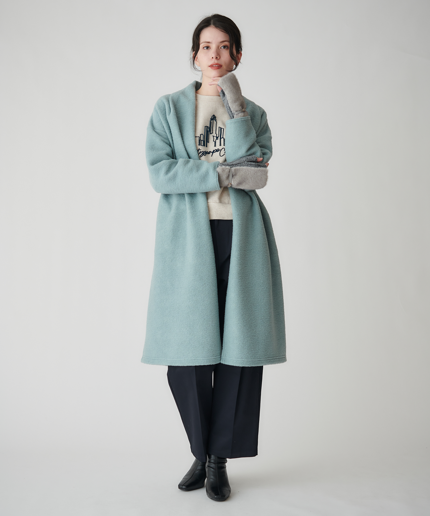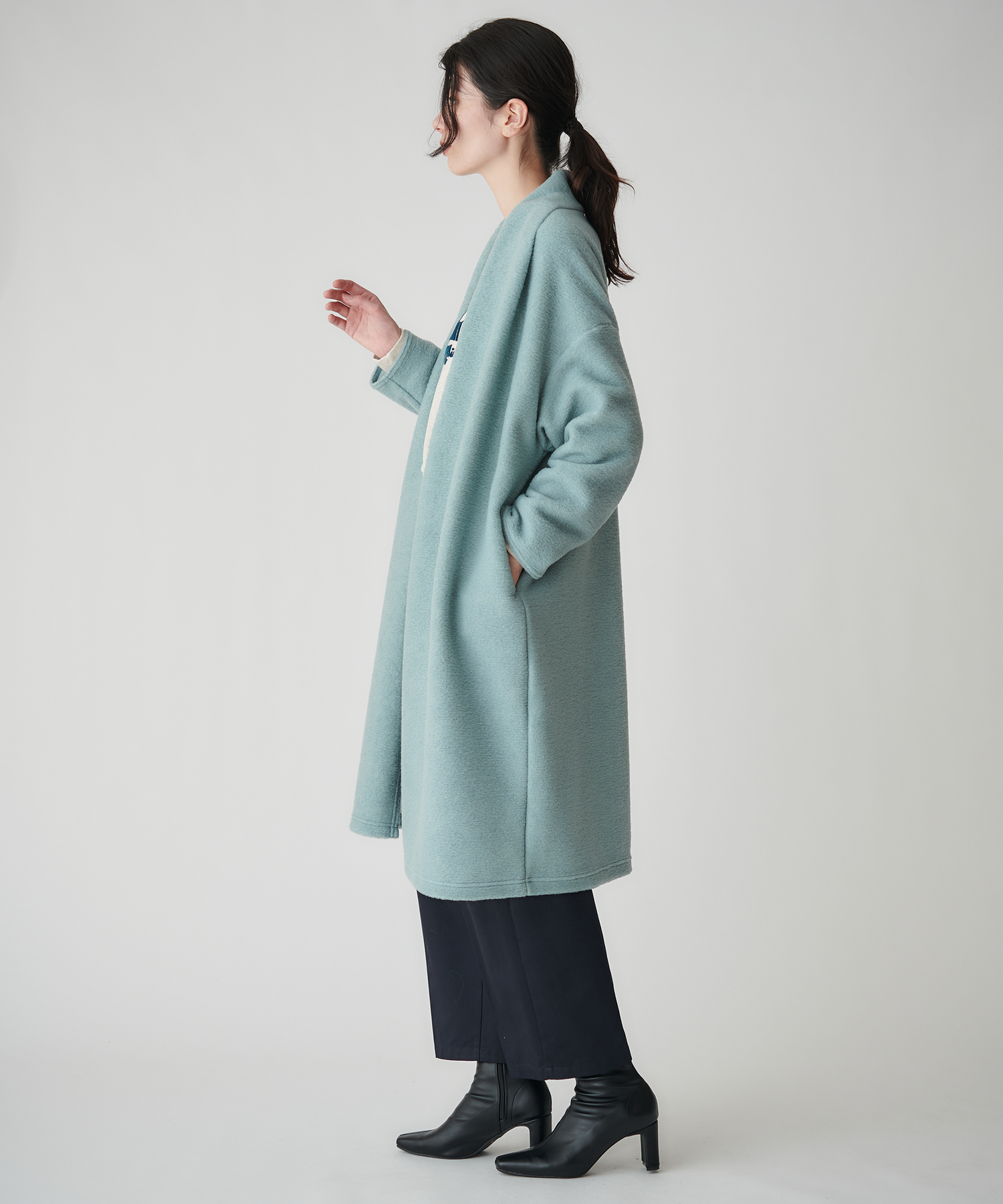 シンプルながらも上品なシルエットで、さっと羽織るだけで洗練された印象に仕上がります。季節の変わり目から真冬まで活躍する万能アイテムです。