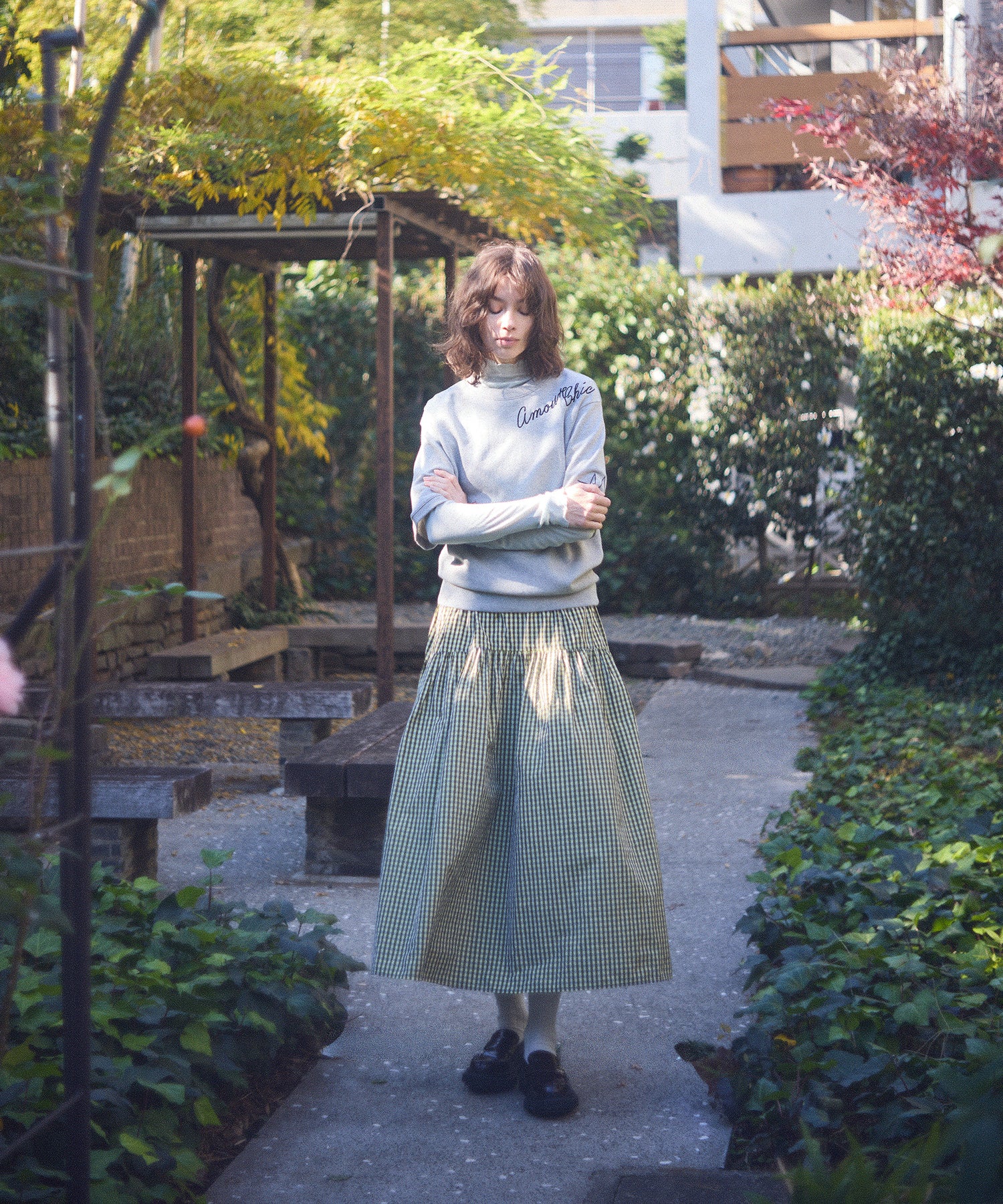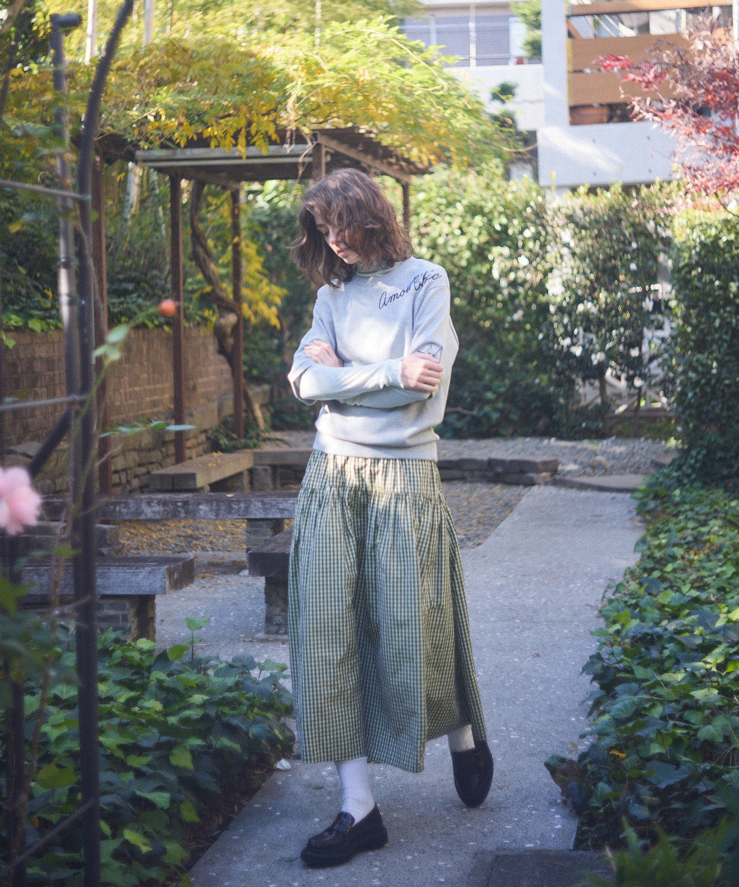 着丈はショート丈でハイウエストボトムなどにも合わせやすくなっています。
