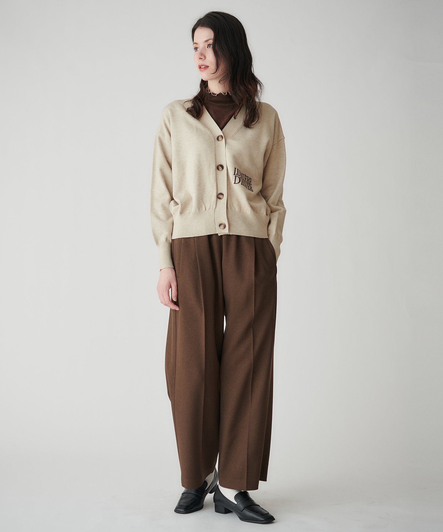 シンプルなインナーに羽織るだけでスタイリングが完成。デニムやスラックス、スカートとも相性がよく、カジュアルからきれいめまで幅広く着回せます。