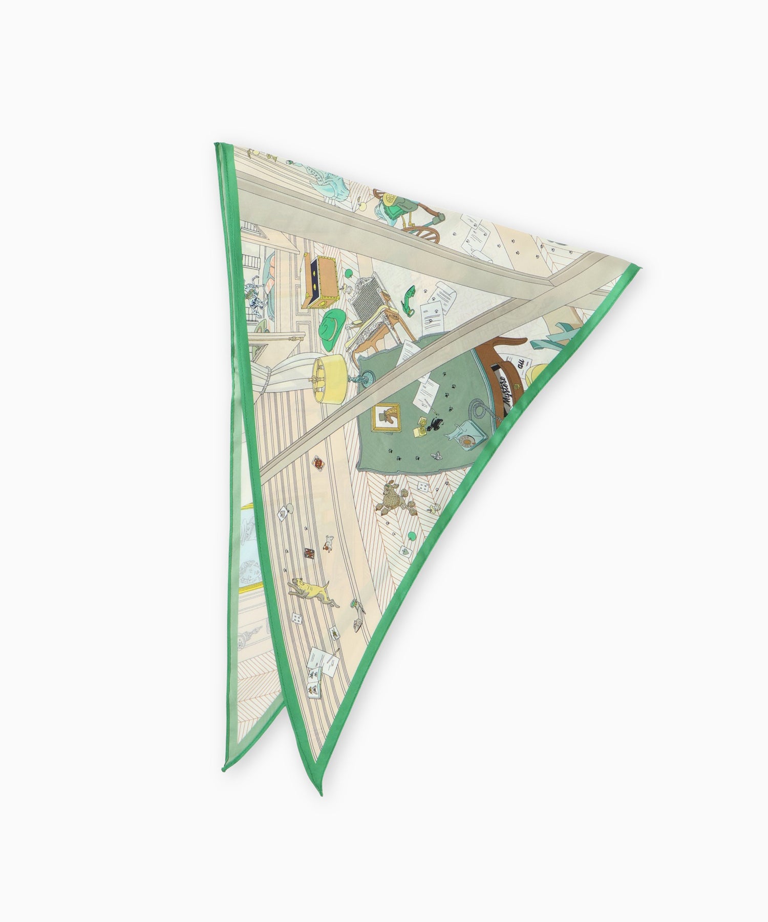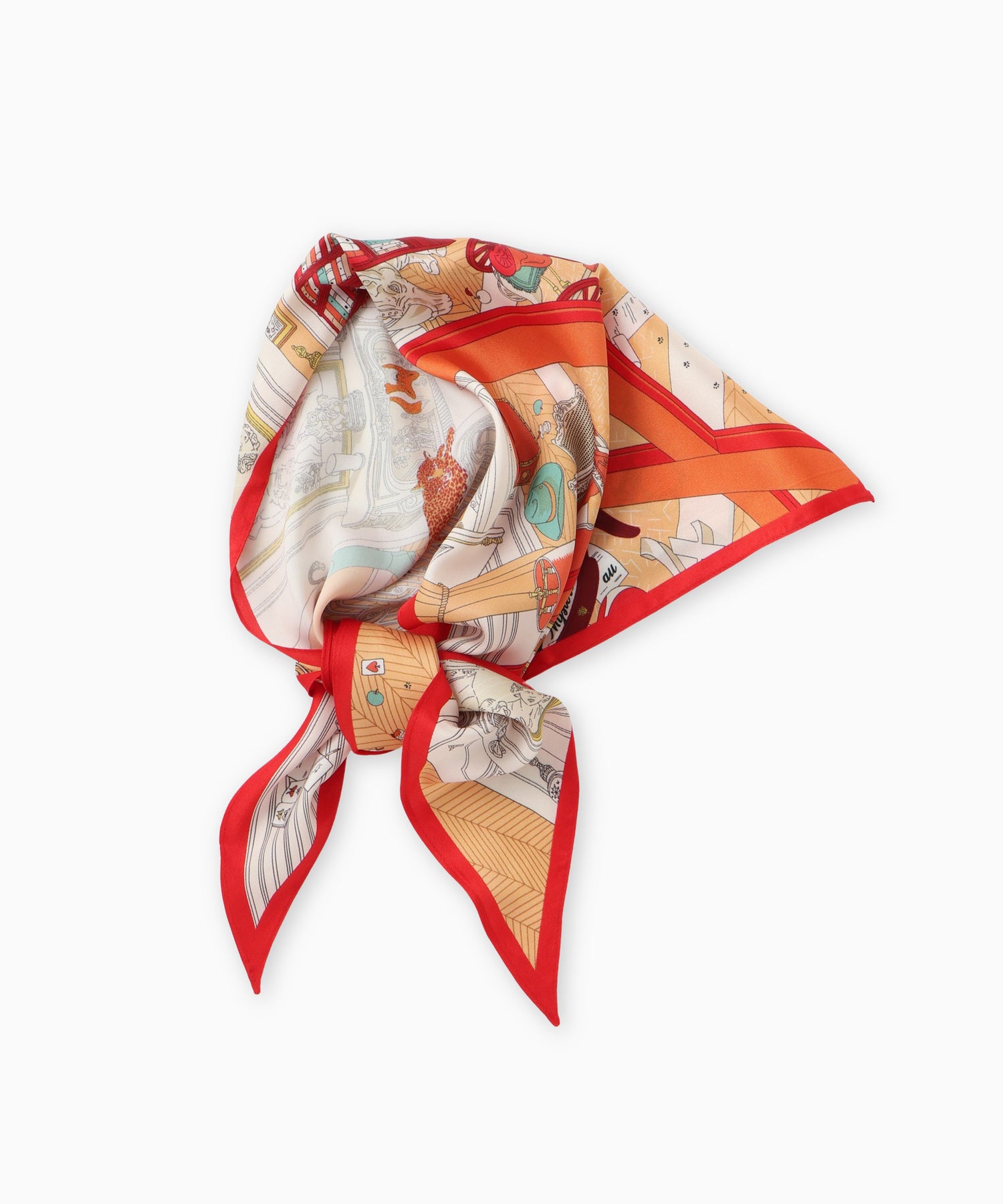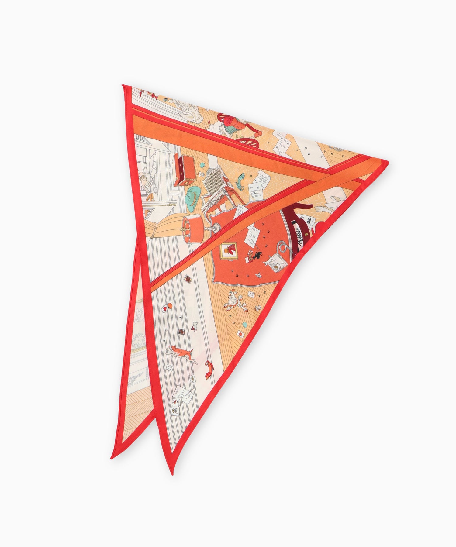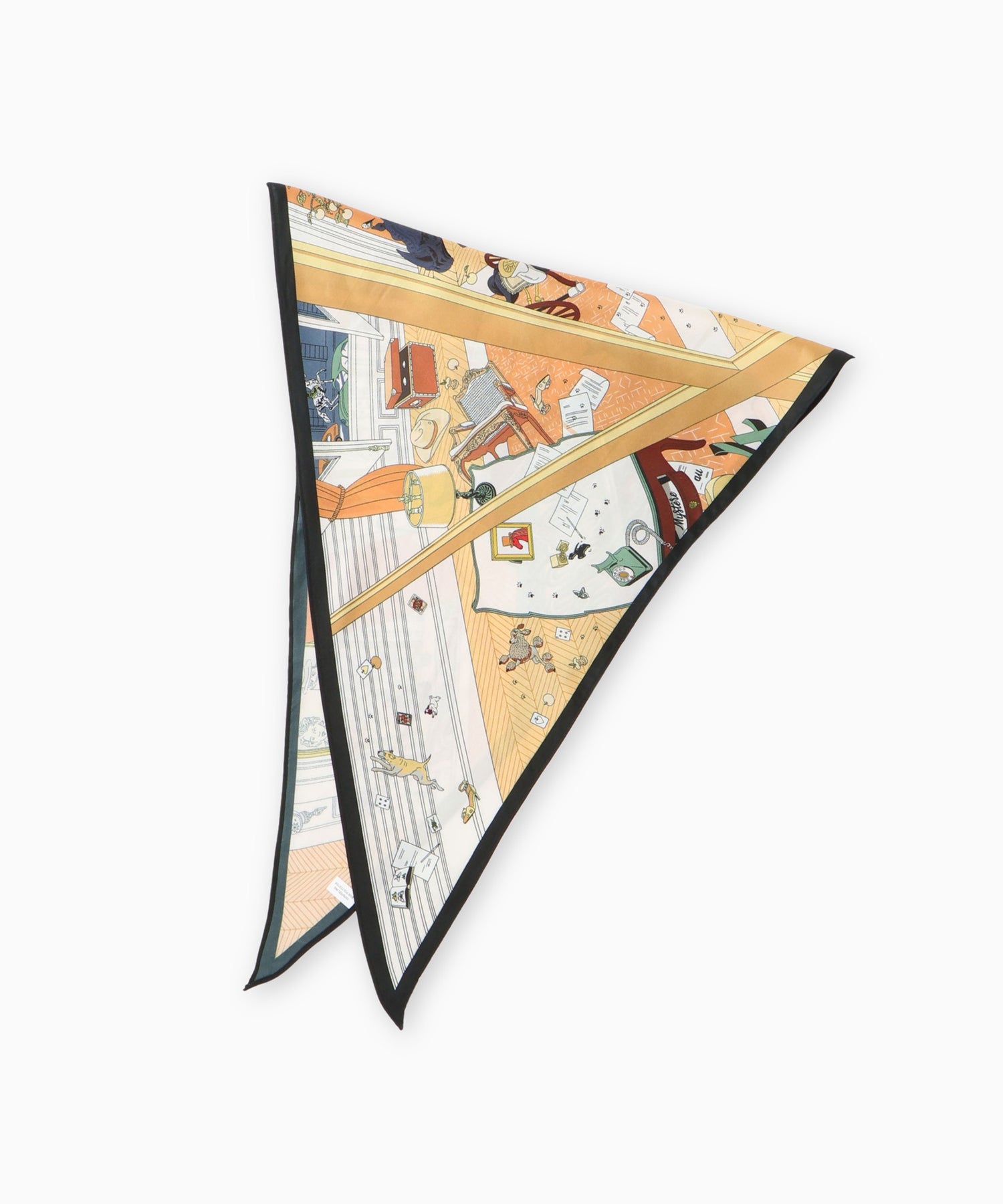 クラシカルなプリントが目を惹くダイヤ型スカーフ。