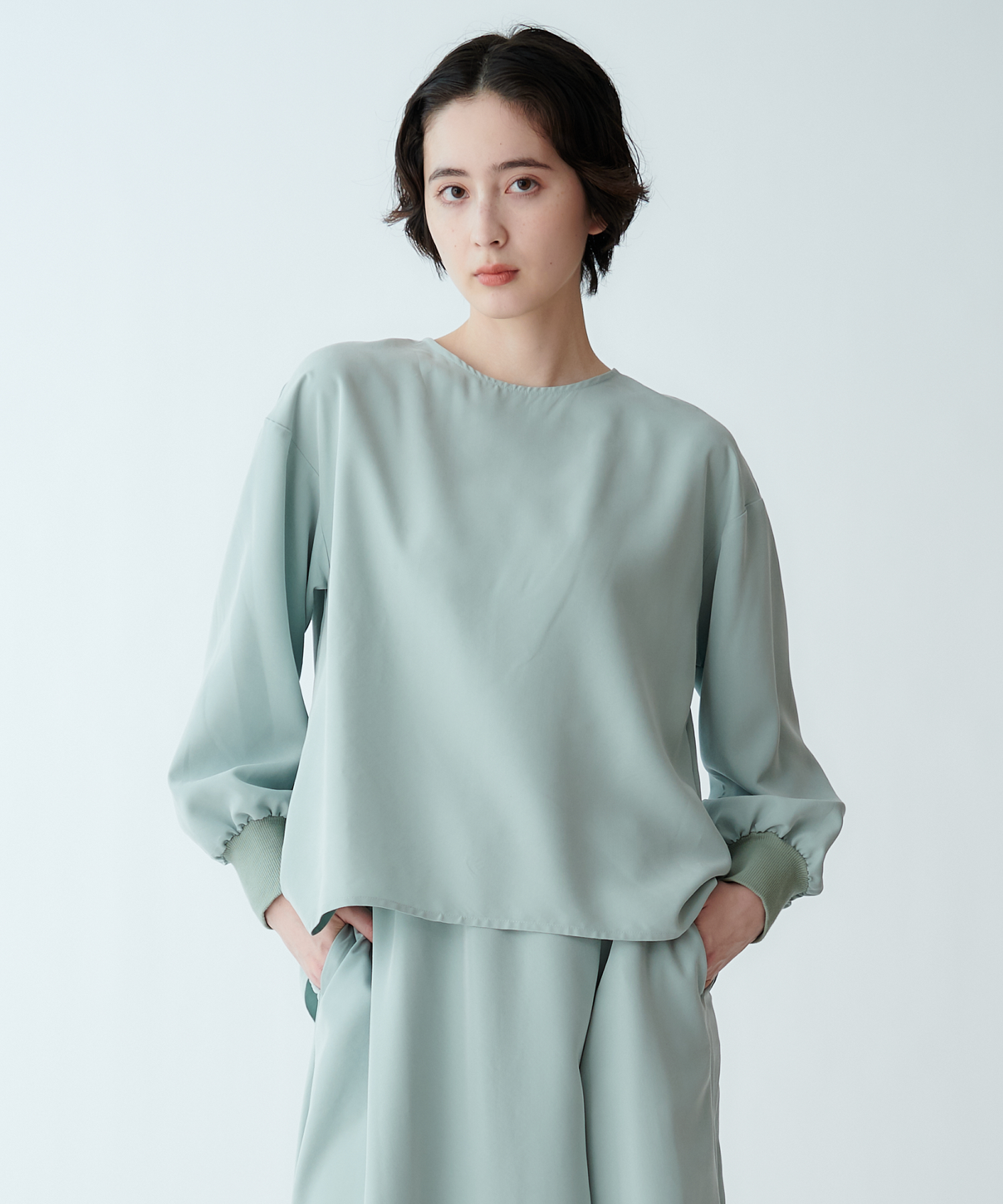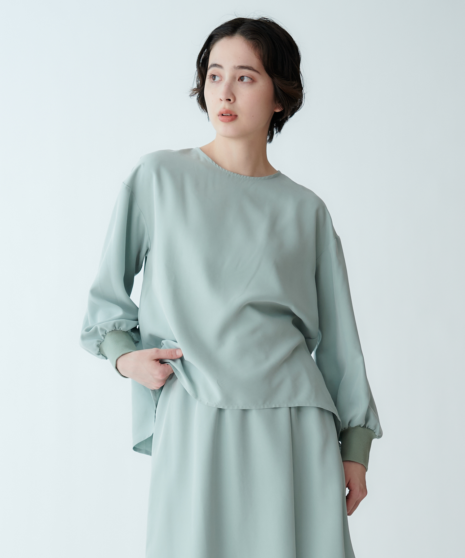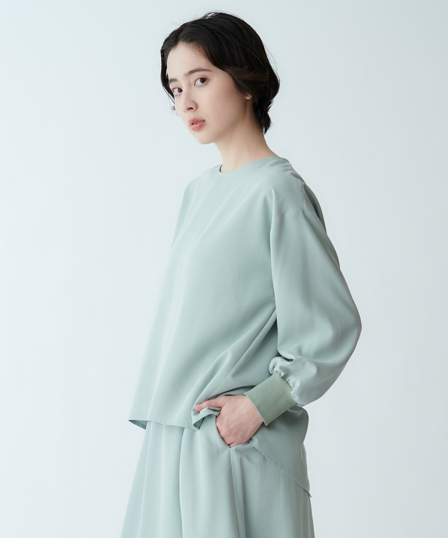 表面が微起毛し、なめらかで落ち感のあるフィブリル素材を使用。