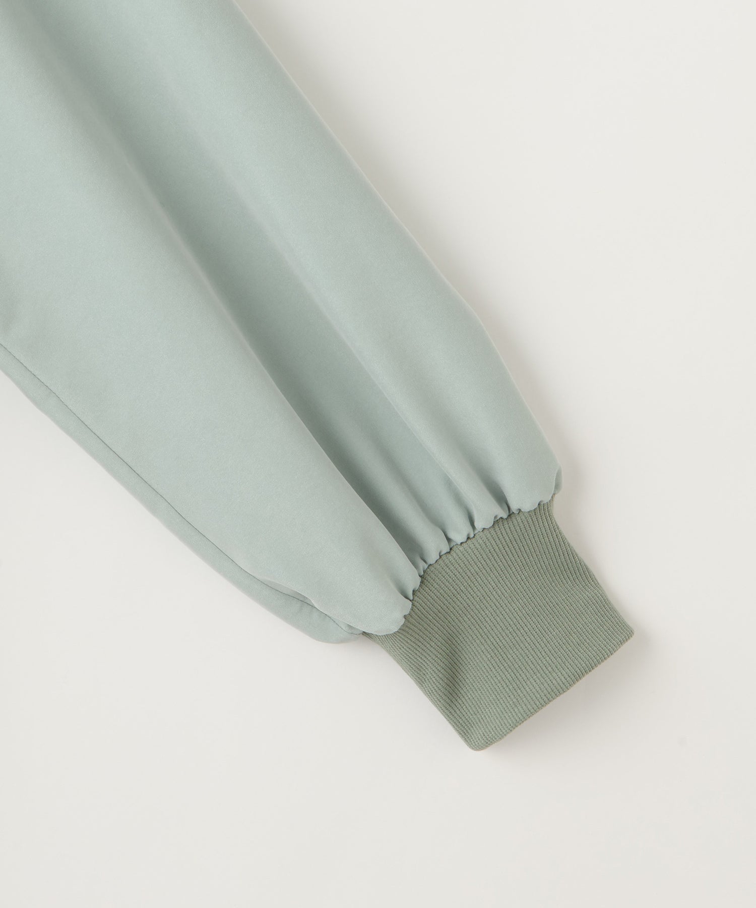 袖口リブや裾タック入りの配色コードや後裾のスリットがアクセント。