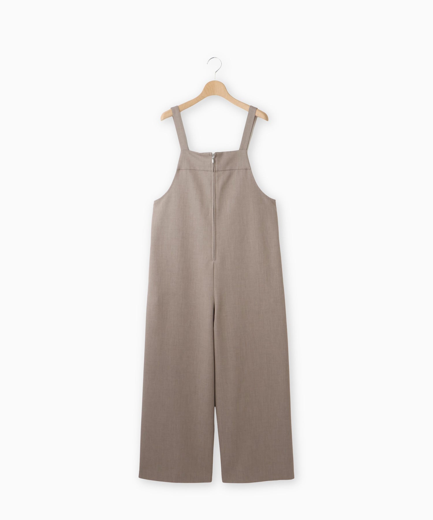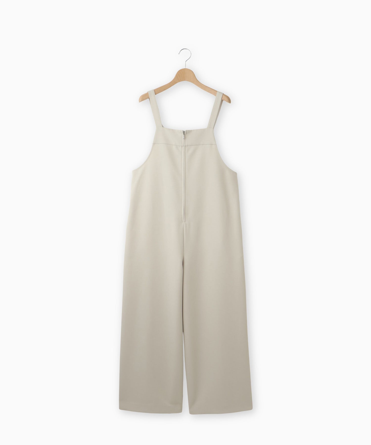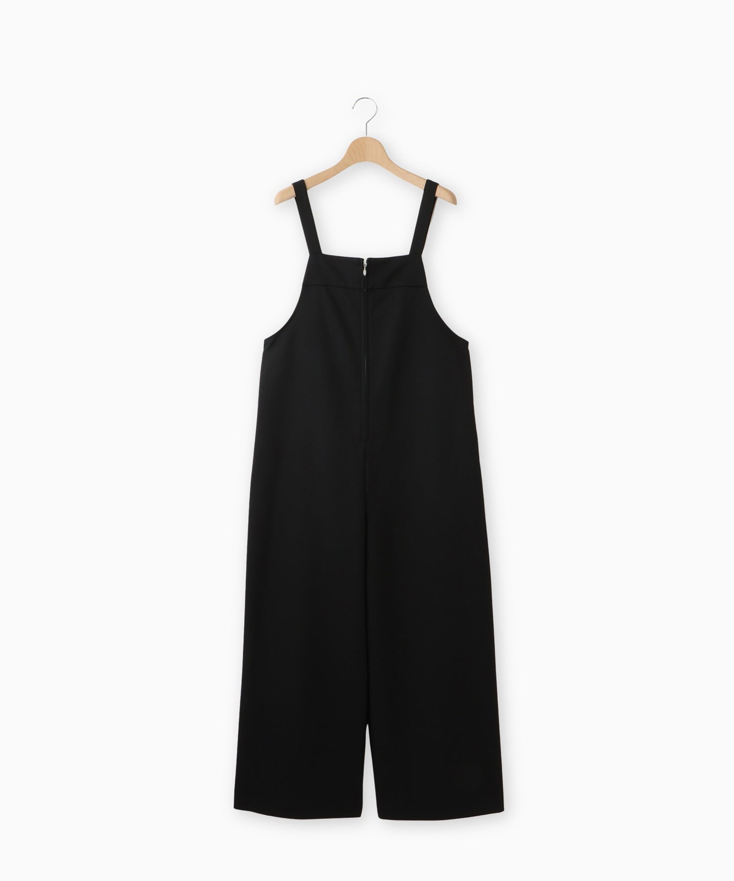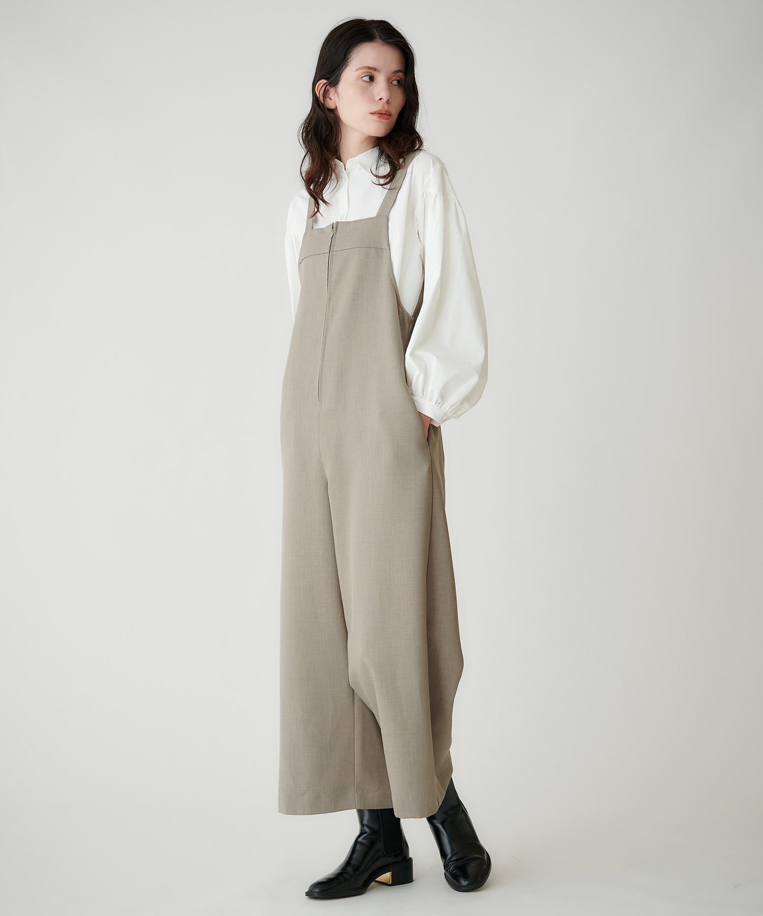 フロントジップ仕様で着脱しやすく、すっきりとした印象に仕上げたサロペット。