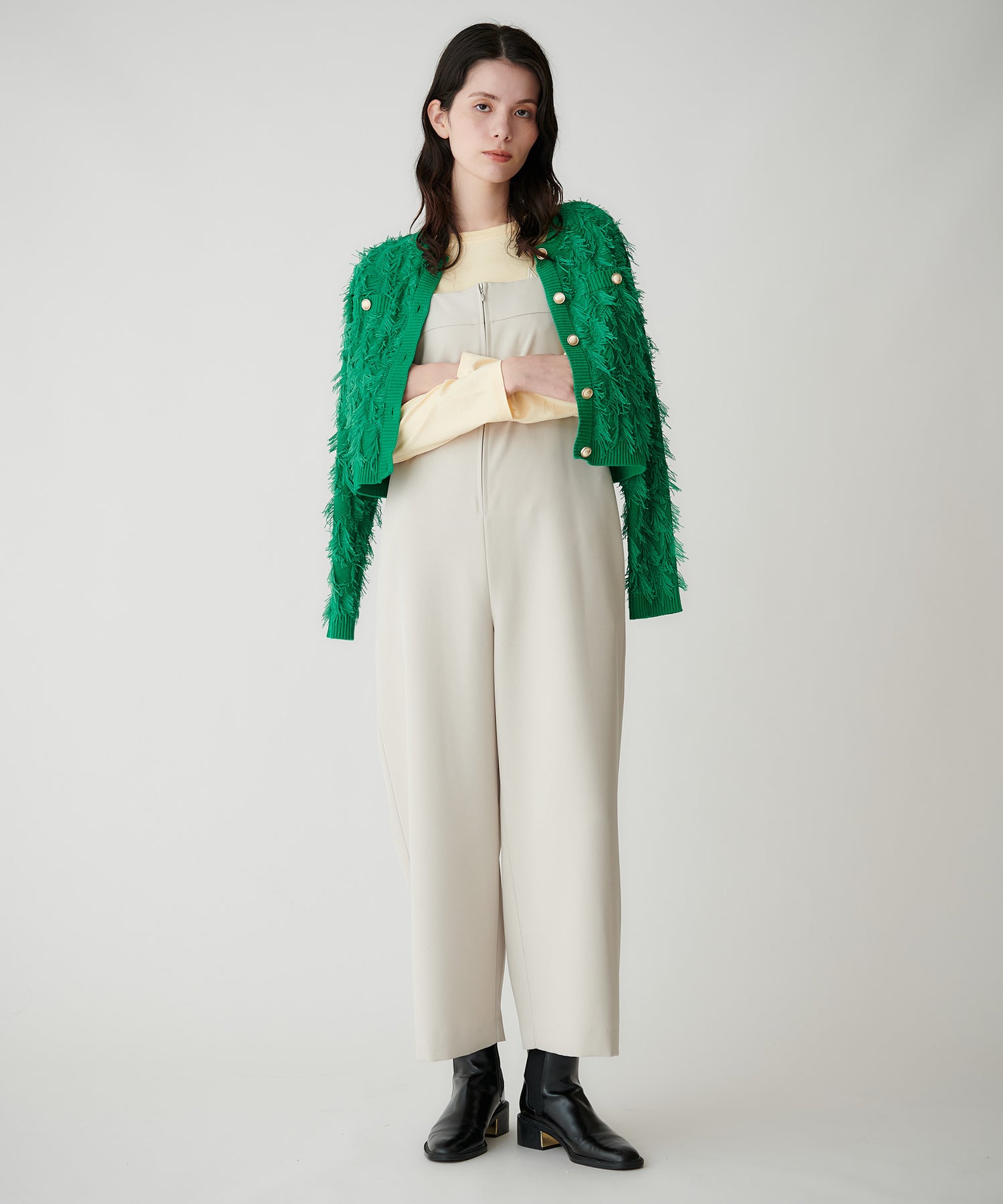 前開きデザインなのでスタイリングに程よいアクセントが生まれ、インナー次第でカジュアルにもきれいめにも着回せます。
