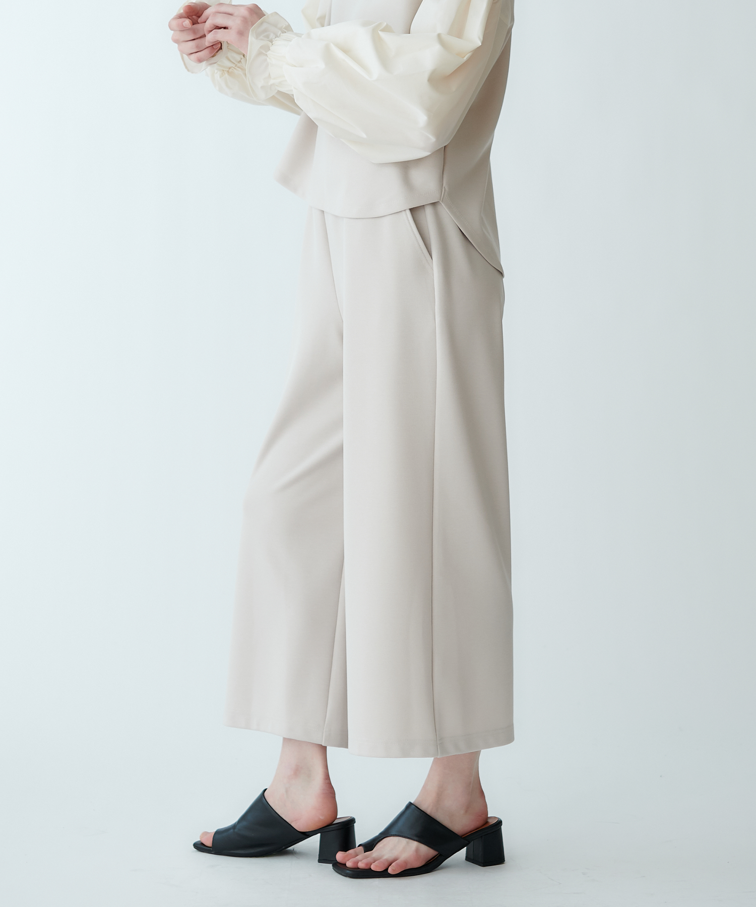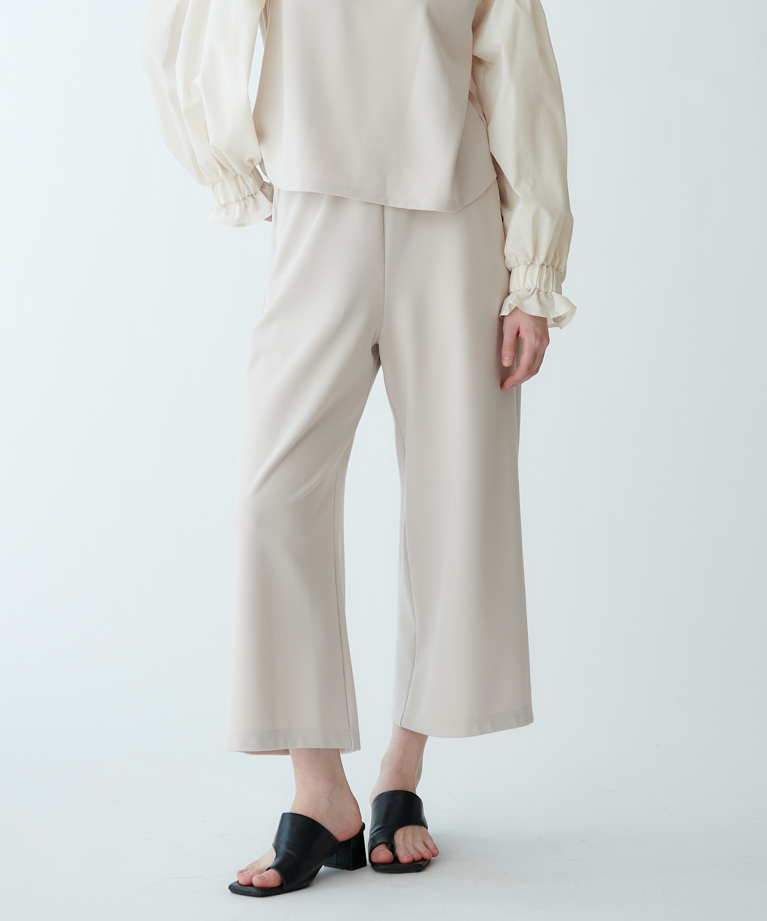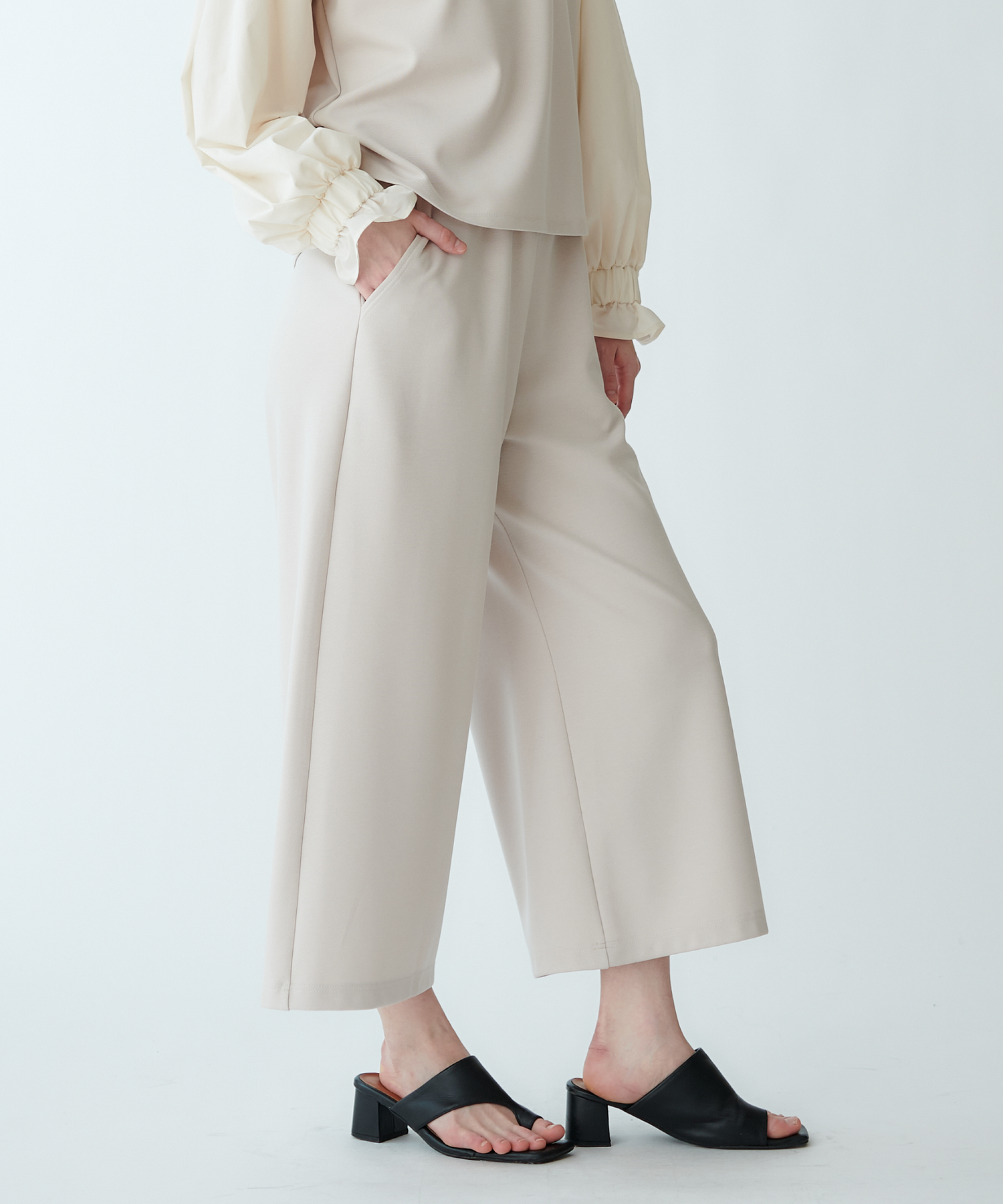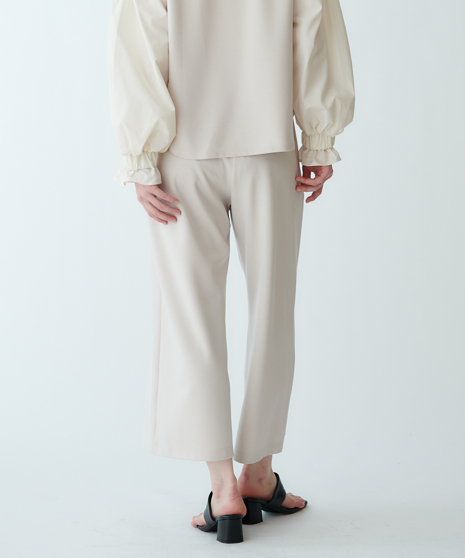 程よい着丈、裾幅、そしてウエストゴムで快適な着心地。